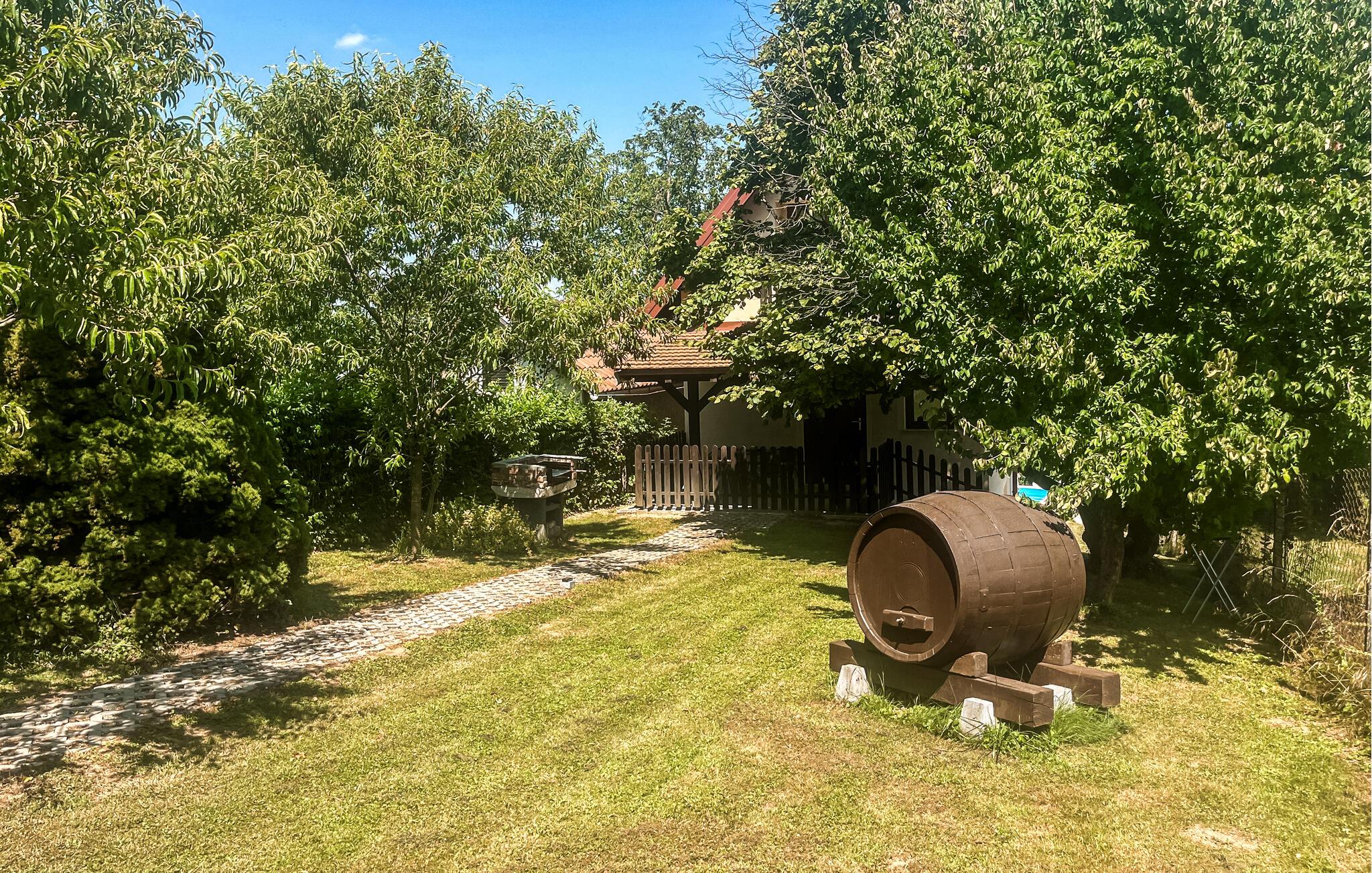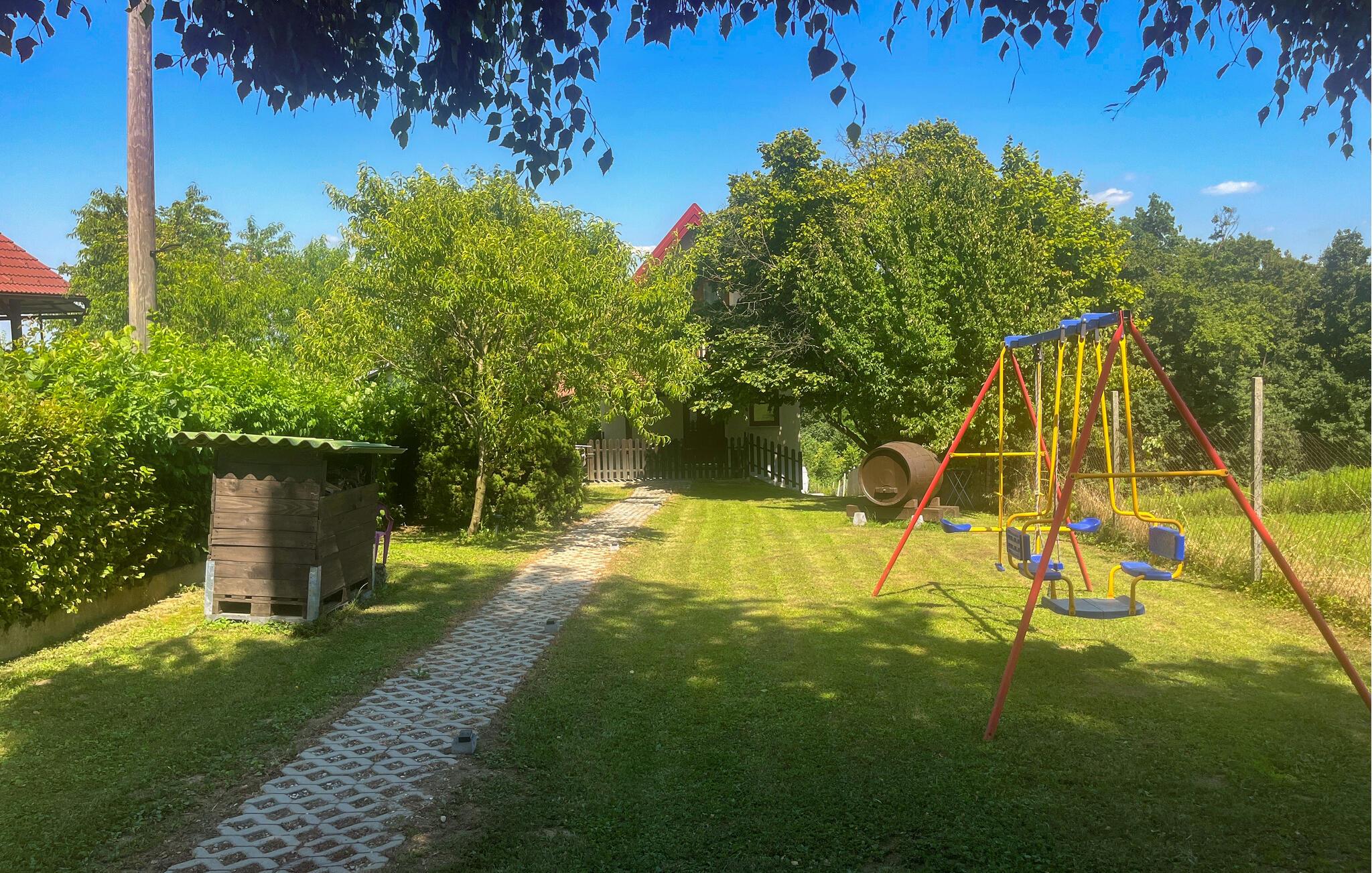 Ein modernes Ferienhaus ausgestattet mit allem was Sie für Ihren unbeschwerten Urlaub benötigen würden. Selbiges liegt in einer ruhigen Umgebung mit viel Grün und frischer Luft, um Ihren Urlaub noch schöner und entspannender zu gestalten. Darübe hinaus bietet Ihnen diese Unterkunft eine Menge Platz sich auszubreiten und schöne Stunden mit Ihren Liebsten zu verbringen. Im Außenbereich finden Sie einen Grill für laue Sommerabende, einen privaten Außenpool für heiße Sommertage, Spielanlagen mit u.a. Klettergerüst und Schaukel für die jungen Gäste und ein Badmintonnetz wie auch ein Volleyballnetz für die etwas aktiveren Urlauber. Sie sind recht nahe am Wald gelegen, sowie haben Sie auch eine wunderbare Aussicht auf die umliegende Landschaft.