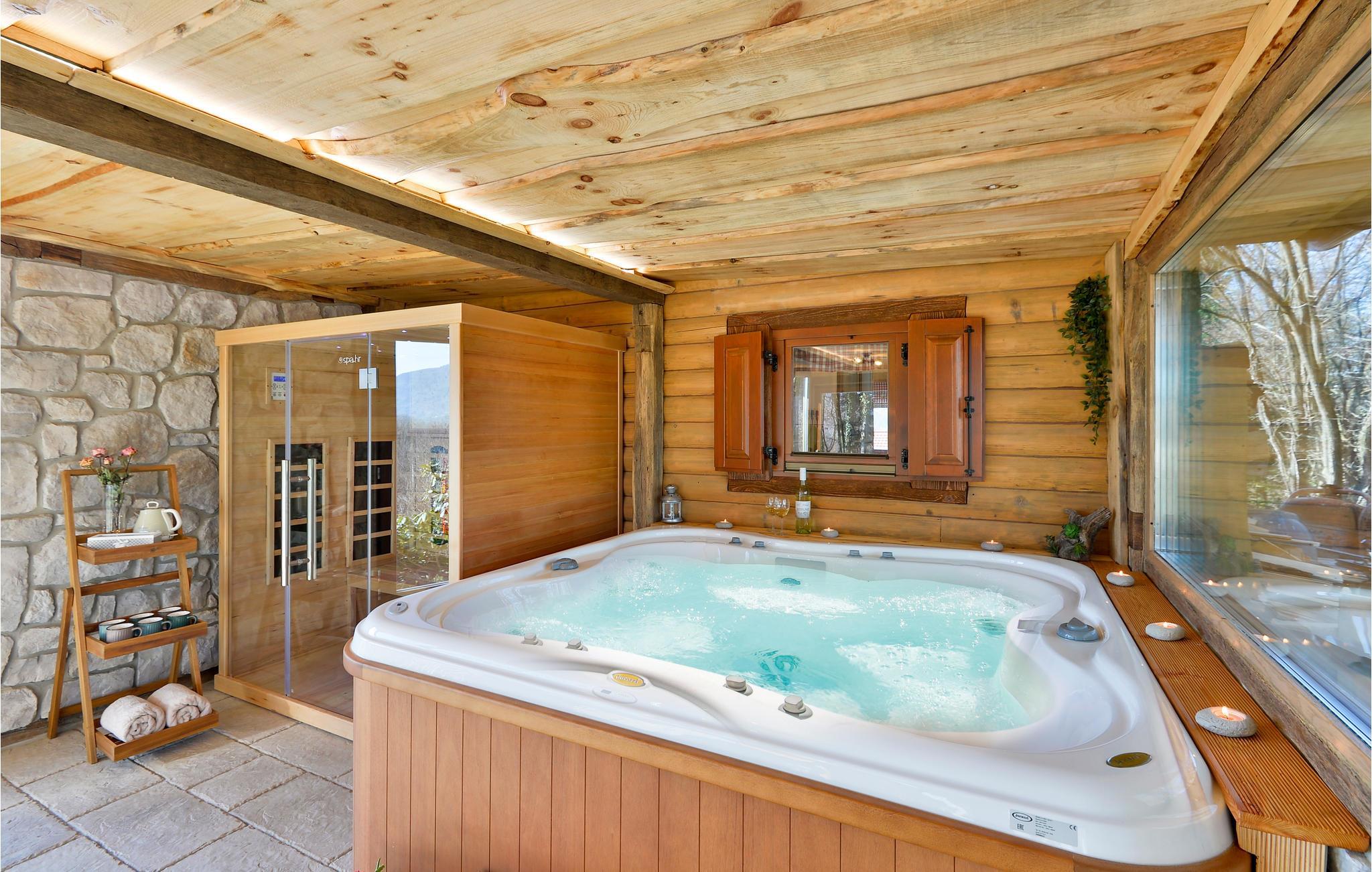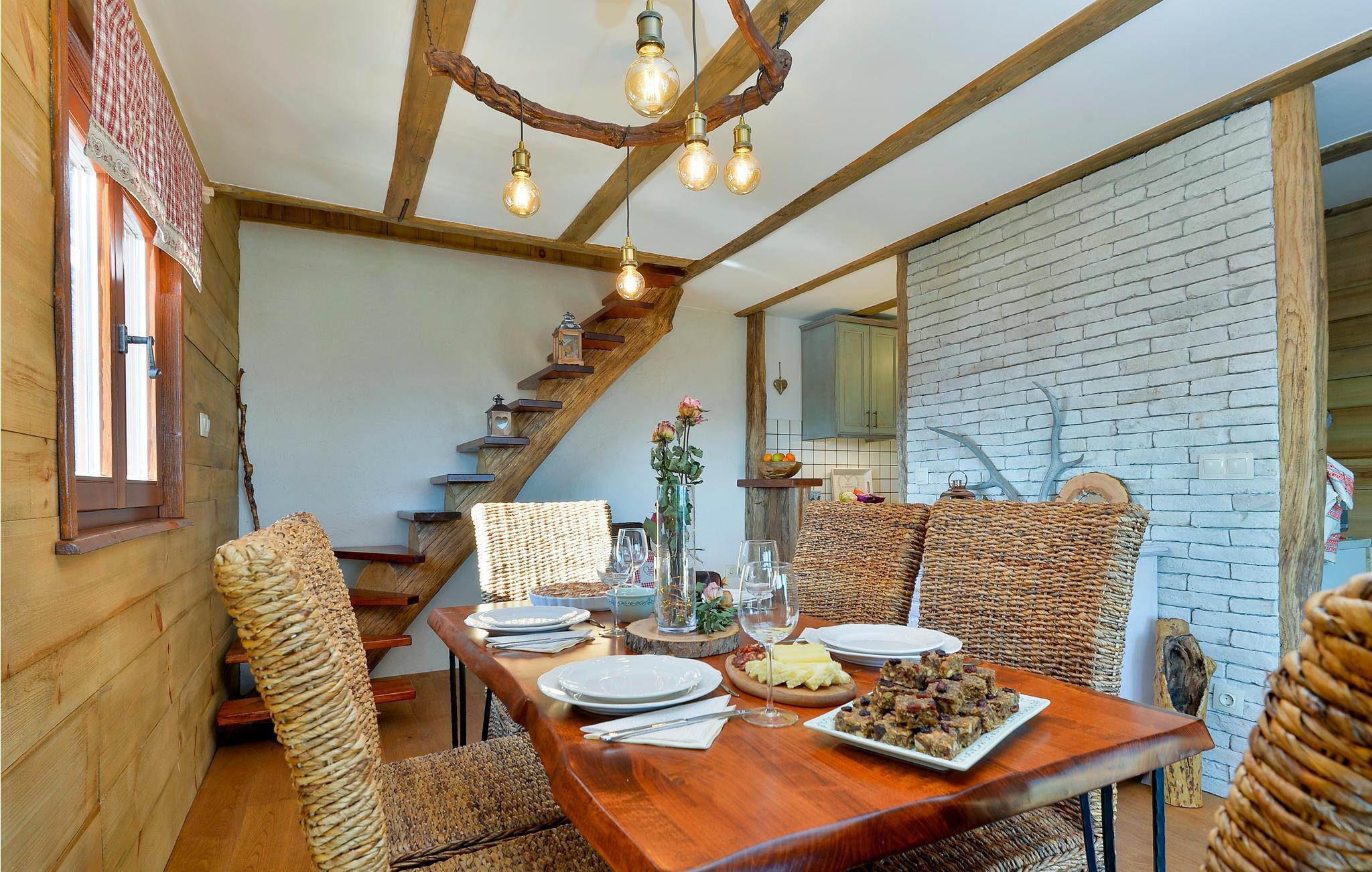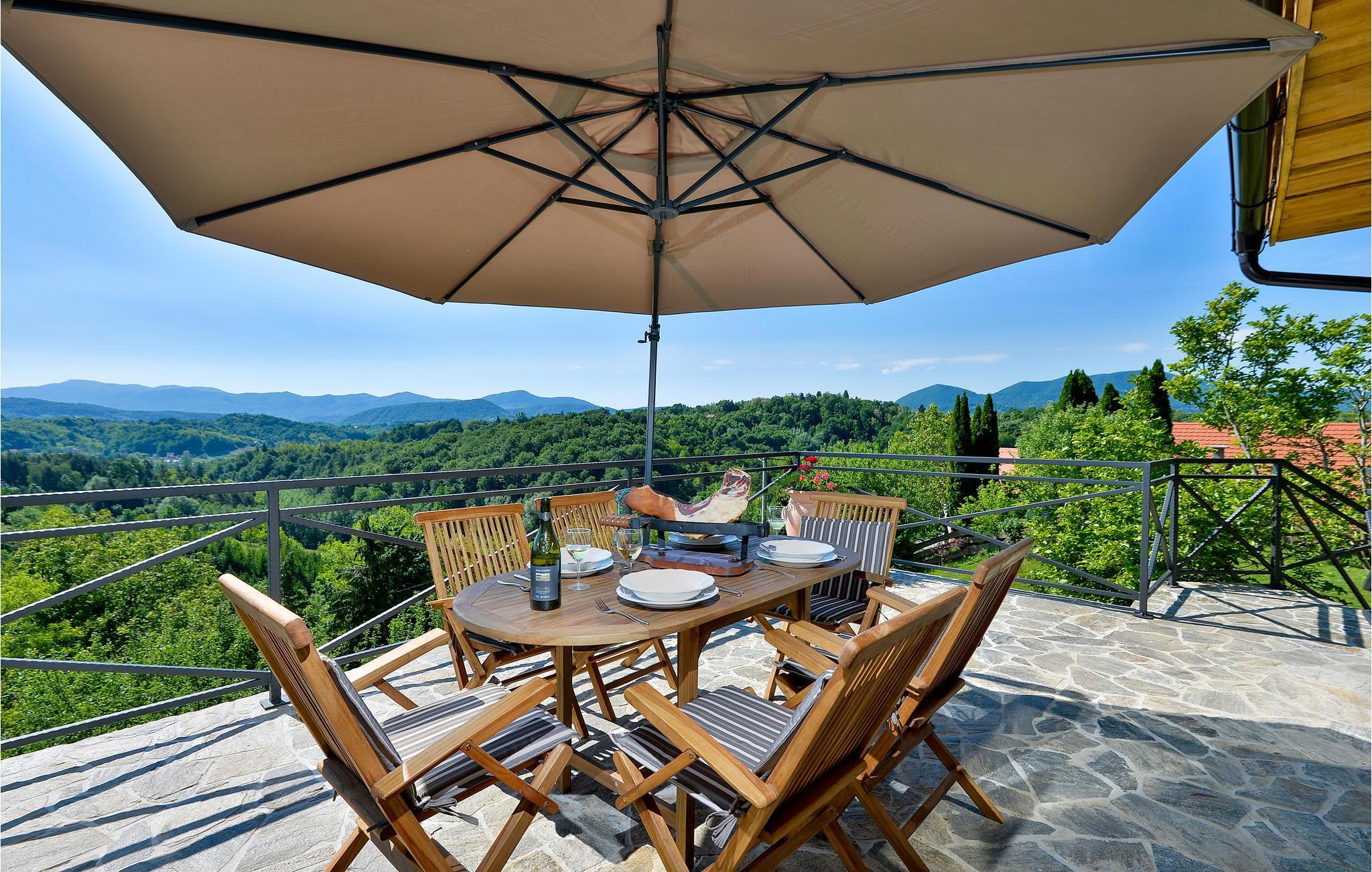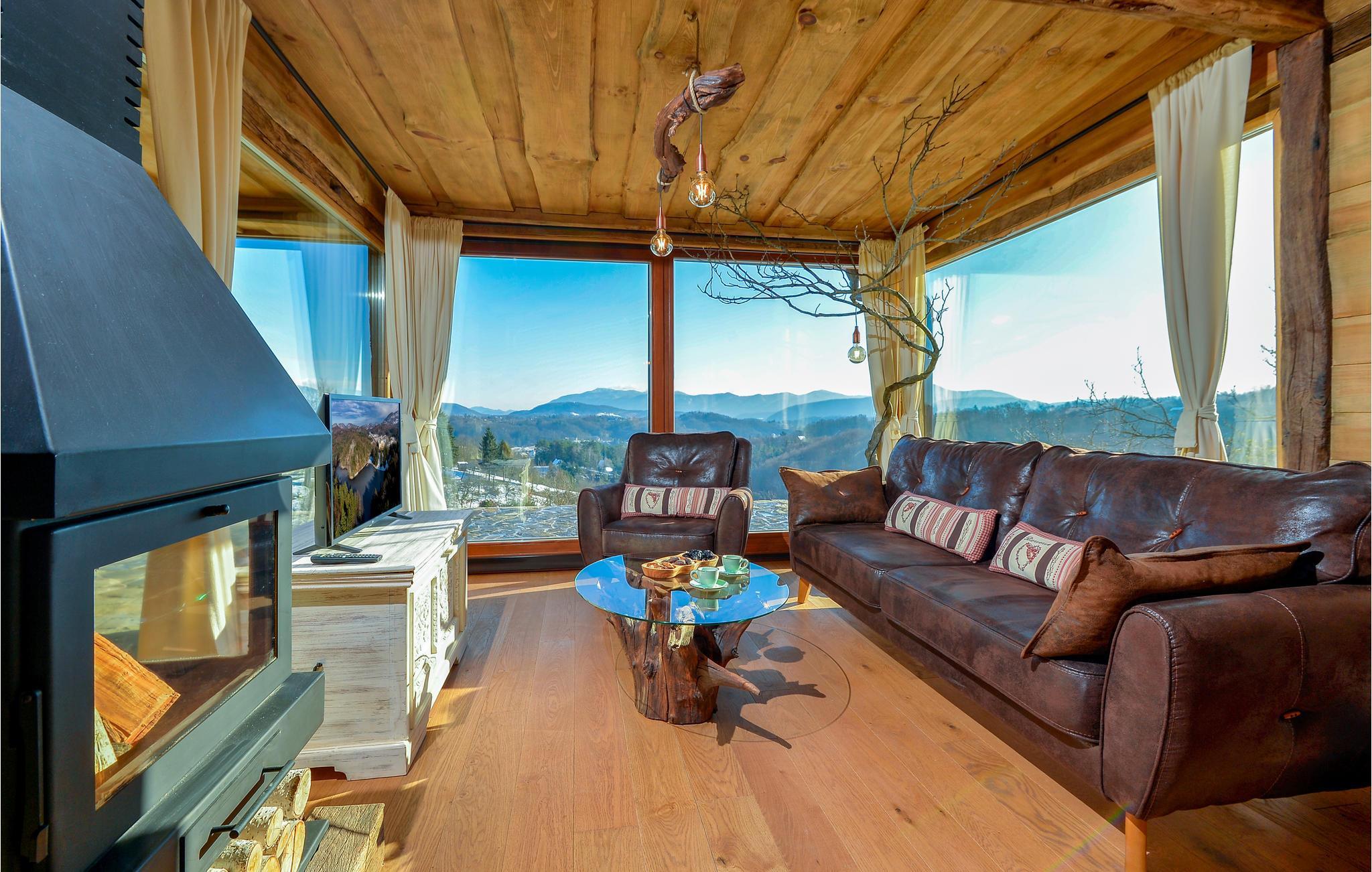 Auf einem Hügel neben dem Schloss Trakošcan erwartet Sie dieses schöne Ferienhaus mit Pool und Indoor-Wellnessbereich. Das Haus für 5 Personen besticht durch seine erhöhte Lage, von der sich eine herrliche Aussicht auf das nahe gelegene Schloss und den Waldpark bietet. Dadurch ist es ein ideales Reiseziel für naturliebende Familien. Der Wellnessbereich mit Whirlpool und Sauna befindet sich im Erdgeschoss, was dieses Haus auch im Winter interessant macht, während der Außenpool im Sommer für Erfrischung sorgt. Es gibt ein Wohnzimmer mit Küche und Essbereich sowie ein Badezimmer im Erdgeschoss. Zwei Schlafzimmer, eine Toilette und eine Terrasse mit Landschaftsblick erwarten Sie im Obergeschoss. Ein Schlafzimmer hat die Mindestdeckenhöhe von ca. 120 cm.
