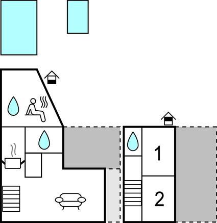 Badezimmer 4m2 (nr. 1) - WC. Warmes und kaltes Wasser. Dusche