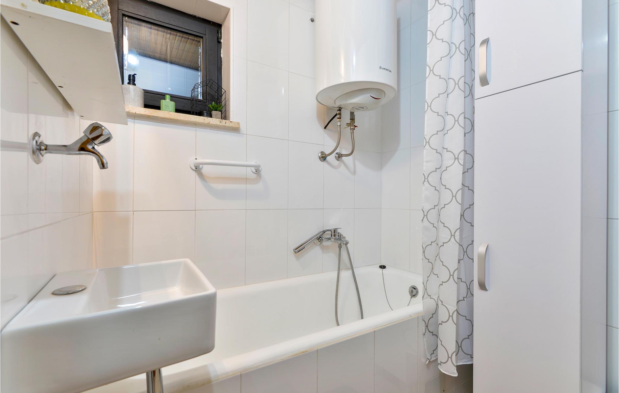 - WC mit warmem und kaltem Wasser, Badewanne