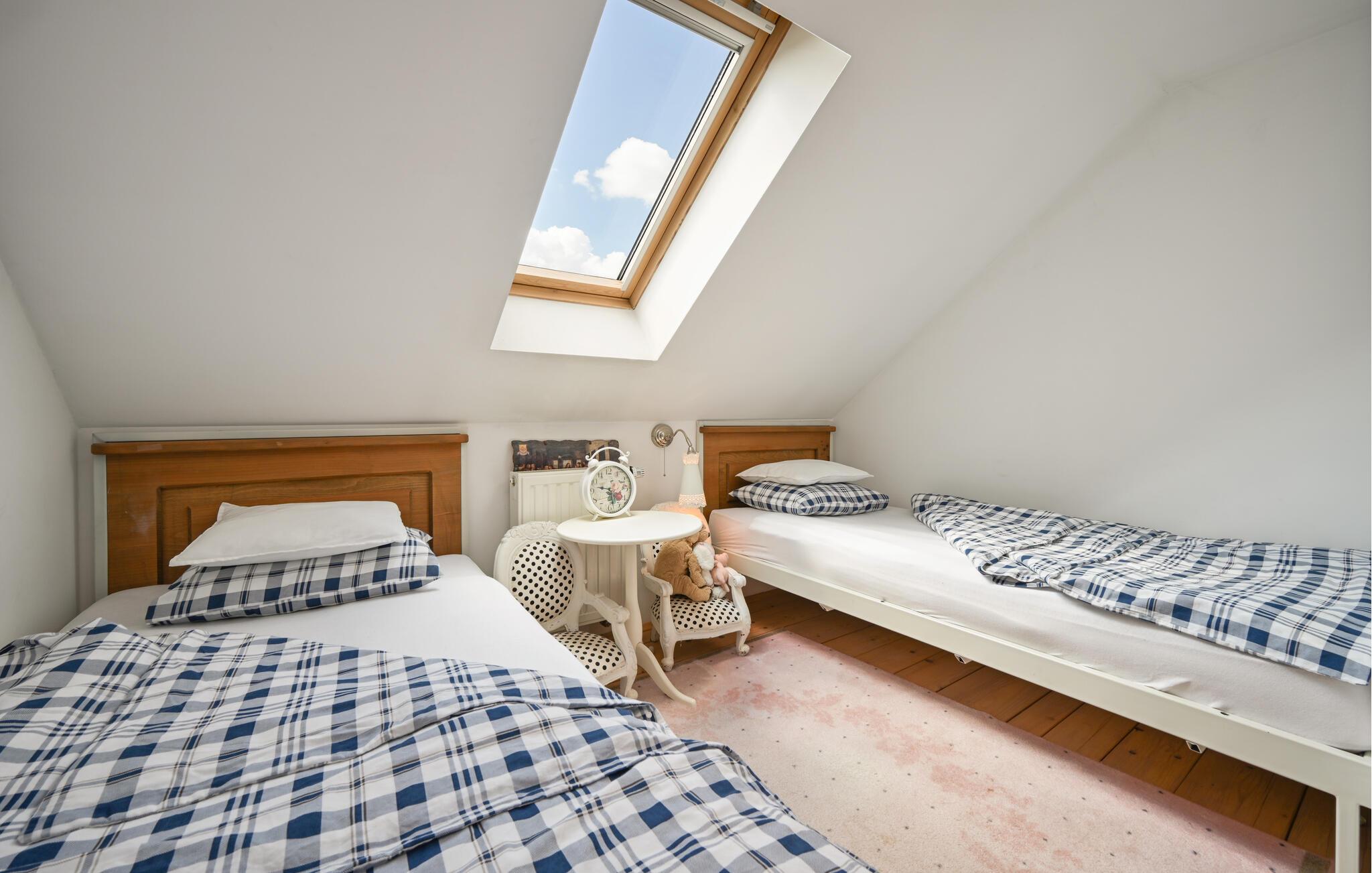 Rund um Ihr Ferienhaus laden sanfte Hügel, Weinberge und Wälder zu ausgedehnten Spaziergängen und Radtouren ein. Besuchen Sie die nahegelegene Therme Varaždinske Toplice mit ihrem antiken römischen Bad und modernen Wellness-Angeboten. Erkunden Sie das charmante Städtchen Varaždin mit barocker Altstadt, Märkten und Cafés. Oder genießen Sie einfach die Natur und lassen Sie bei regionaler Küche und einem Glas Wein die Seele baumeln.