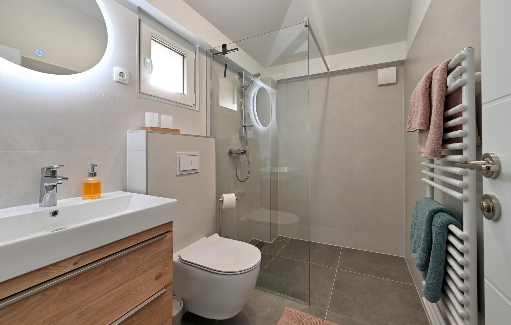 Badezimmer 5m2 (nr. 1) - WC. Warmes und kaltes Wasser. Dusche