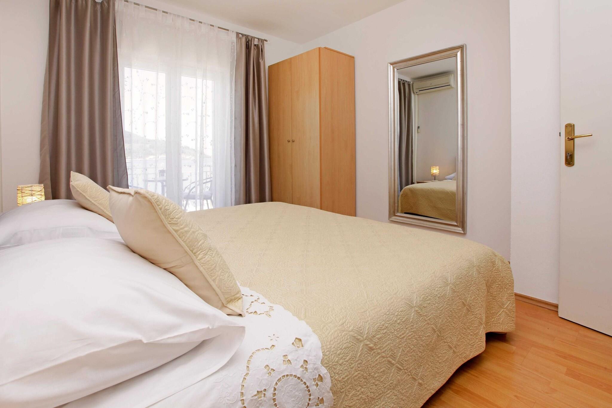Sunshine Apartment Doda is a beautiful apartment located on the seafront in the centre of Vela Luka, with an enchanting view of the sea and the deep bay of Vela Luka. The apartment is modernly designed with spacious sleeping rooms and a terrace in the flowers. On the ground floor there is a family restaurant with a long tradition and top-quality local specialties and products. The owner of the apartment is a professional host always at the guest's disposal. Breakfast, half-board or even full board options are possible to arrange upon arrival directly with hosts. Laundry service is also possible for additional charge. Luggage storage is possible prior to check in and after check out. Free private parking is available on site, reservation is not needed. This lovely three-bedroom apartment features free WiFi, air conditioning, and SAT TV, as well as kitchen fitted with refrigerator, stove, toaster, electric kettle, microwave and coffee machine. Apartment has two bathrooms, fitted with shower and hairdryer. Washing machine and ironing facilities are at guests' disposal. The apartment will also provide guests with lovely furnished balcony overlooking the sea. This apartment can comfortably accommodate up to 5 persons. Sunshine Apartment Doda is located on the island of Korcula, in a small town called Vela Luka. Korcula is a typical Mediterranean island famous by it's great history and cultural heritage, as well as its tradition, gastronomy, mild Mediterranean climate, untouched nature and beautiful beaches. The advantage of this apartment is the position in the center of the town and in the immediate vicinity there are all necessary facilities such as shops, restaurants, bars, beaches, pharmacy, grocery store, gas station, etc. Ferry port in Vela Luka is located 800 m away. Nearest airports are Split (approximately 100 km away) and Dubrovnik (approx. 170 km away).