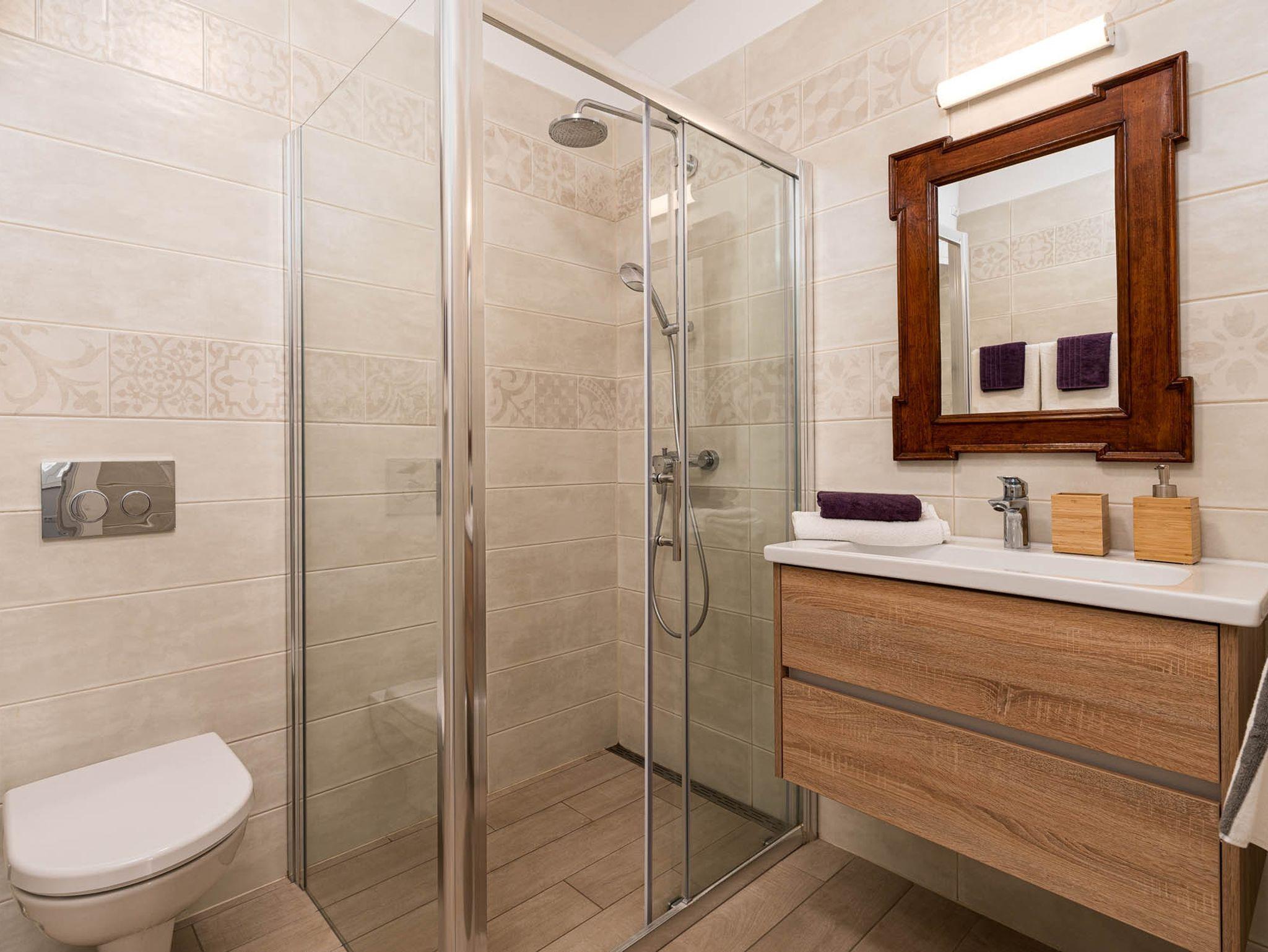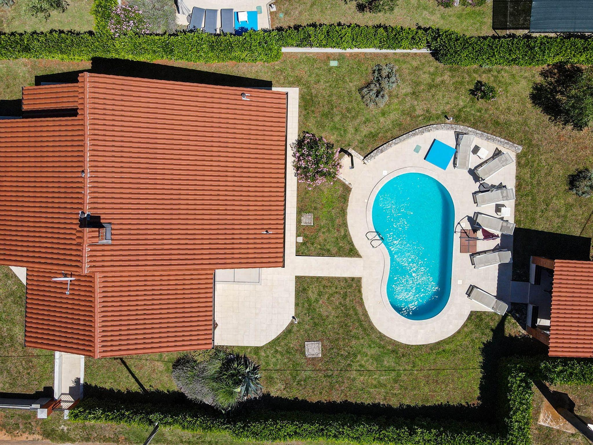Haus bietet Platz für 6 Gäste. Die Betten sind in Schlafzimmern, die es 2 gibt, und in Wohnzimmer, innerhalb einer Gesamtfläche von 110m2, angeordnet. Die Gäste haben eine eigene Terrasse zur Verfügung, auf der sie in warmen Sommernächten genießen können. Für vollen Genuss und Entspannung gibt es einen privaten Grill für Gäste dieser Unterkunft. Während ihres Aufenthalts können sich Gäste im privaten Schwimmbad entspannen. In der Unterkunftseinheit besteht die Möglichkeit des Mitbringens von Haustieren, und die Dienstleistung ist im Preis der Unterkunft enthalten. IM PREIS INBEGRIFFEN: Kurtaxe, Endreinigung, Klimatisierung, Pool, Parkplatz, Internet, Haustiere, Kinderbett, Bügeleisen, Bügelbrett, Föhn. Die Verfügbarkeit zusätzlicher Dienstleistungen in Ihrem reservierten Termin und die Preise derselben (falls nicht aufgeführt) müssen im Voraus überprüft werden. Zusätzliche Dienstleistungen die in der Zahlungsaufforderung nicht aufgeführt sind werden direkt beim Vermieter bezahlt, angenommen der Gast nutzt auch diese. Ermäßigung auf den Grundpreis: Gratistag 14=13 (bei einem Aufenthalt von 14 Tagen oder mehr erhalten Sie einen Gratistag für den Aufenthalt bis 31.12.26).