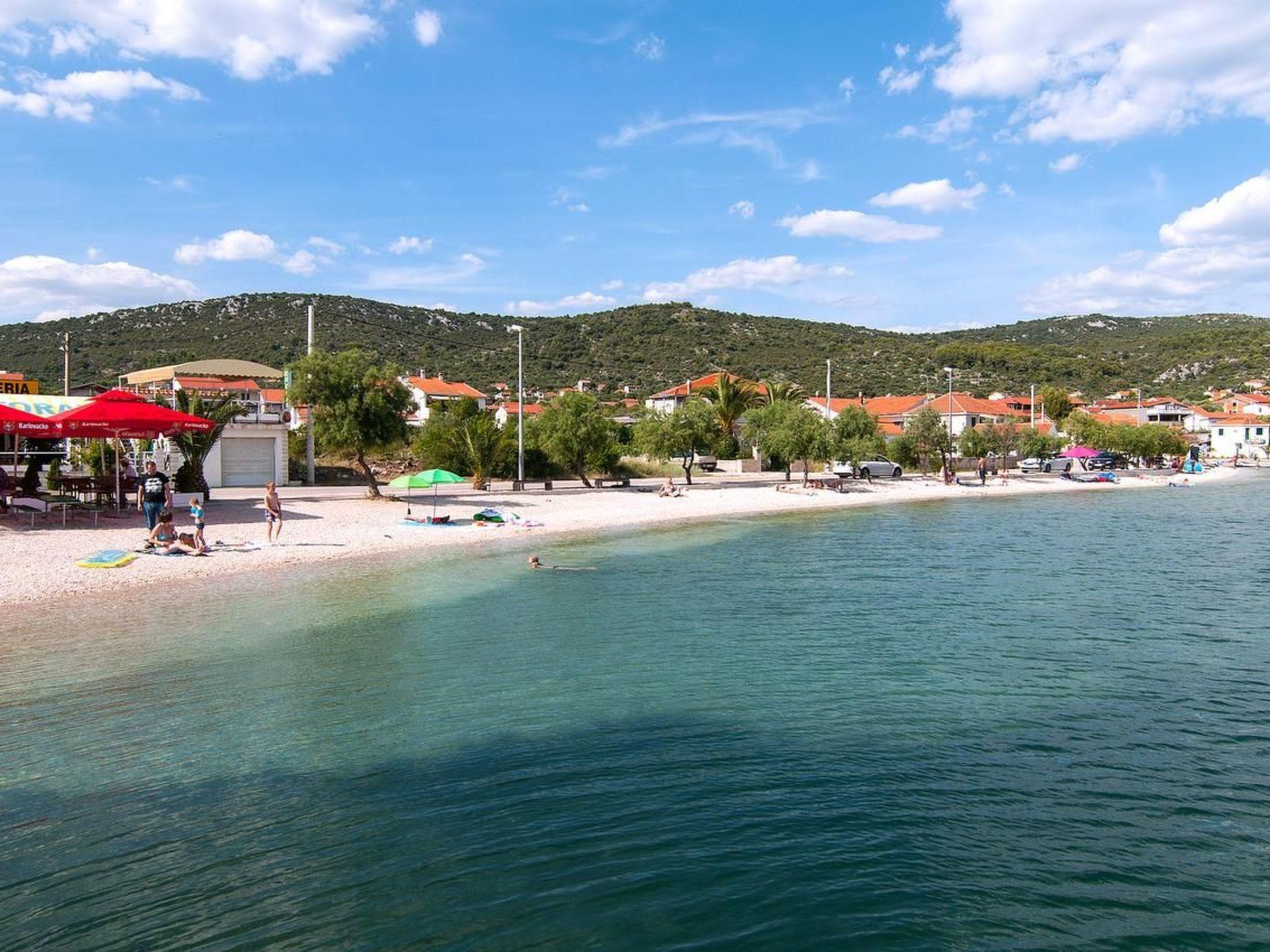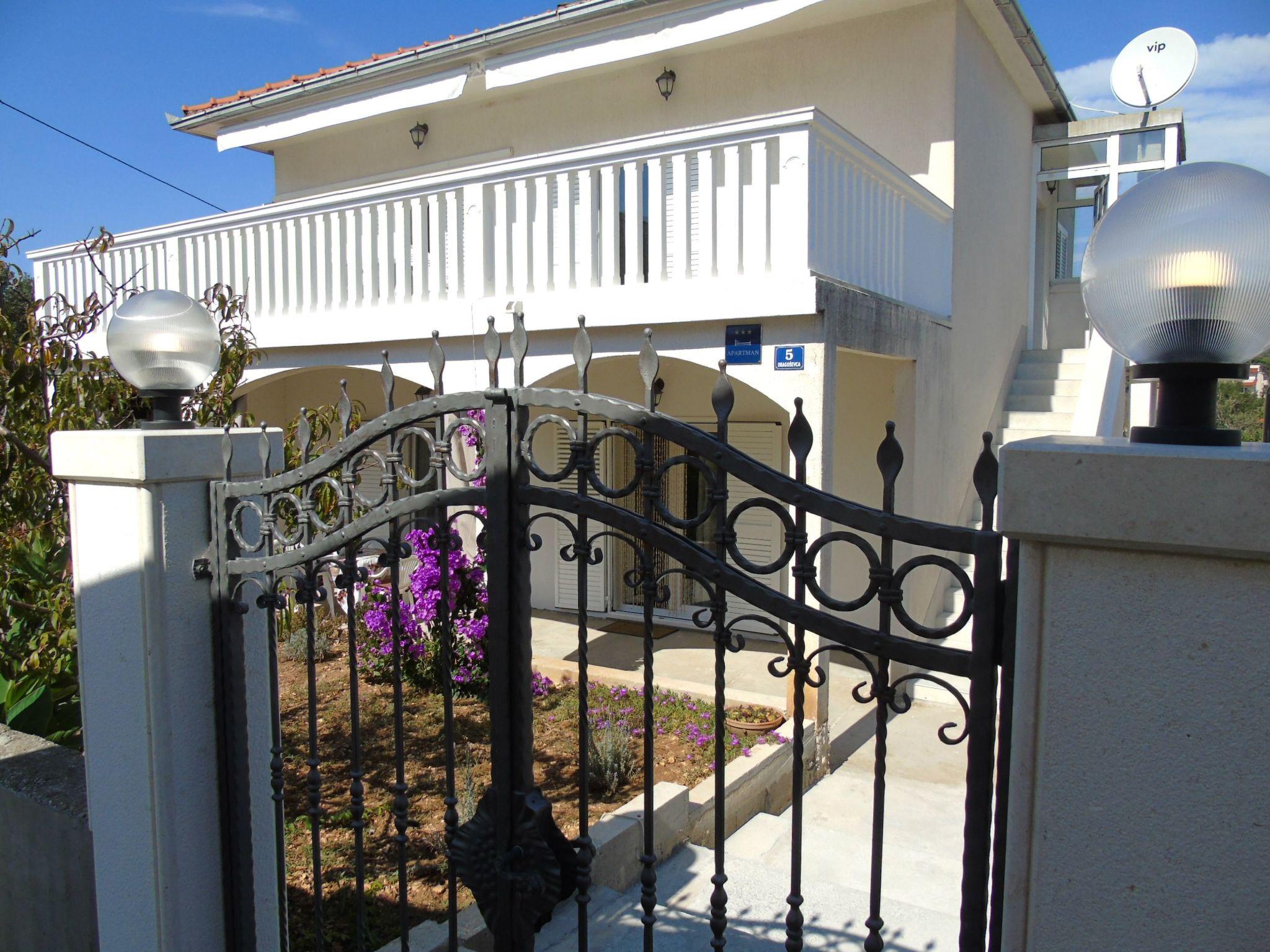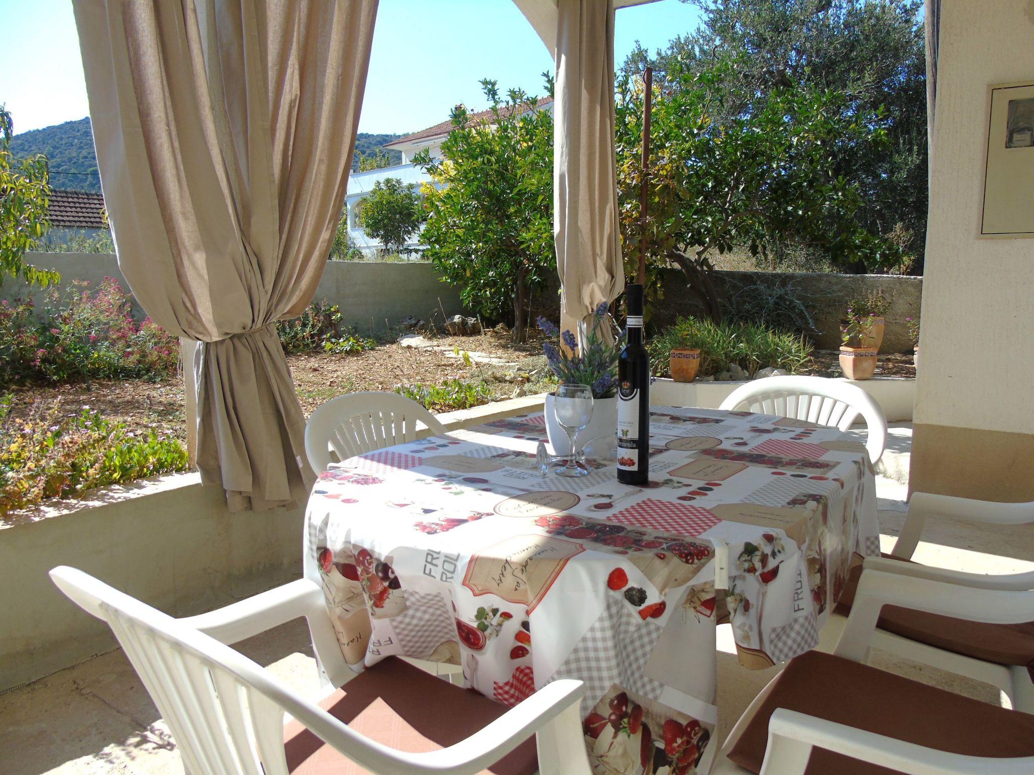 Auf der einladenden Terrasse lädt ein hölzernes, schattiges Essgeschirr dazu ein, im Freien zu speisen und die laue dalmatinische Luft zu genießen. Der Garten, der nur Ihnen zur Verfügung steht, lädt mit seiner Ruhe zum Entspannen oder Spielen ein. Zu den weiteren Annehmlichkeiten im Freien gehören eine Außendusche und ein Grill, ideal für gemütliche Abende unter dem Sternenhimmel.