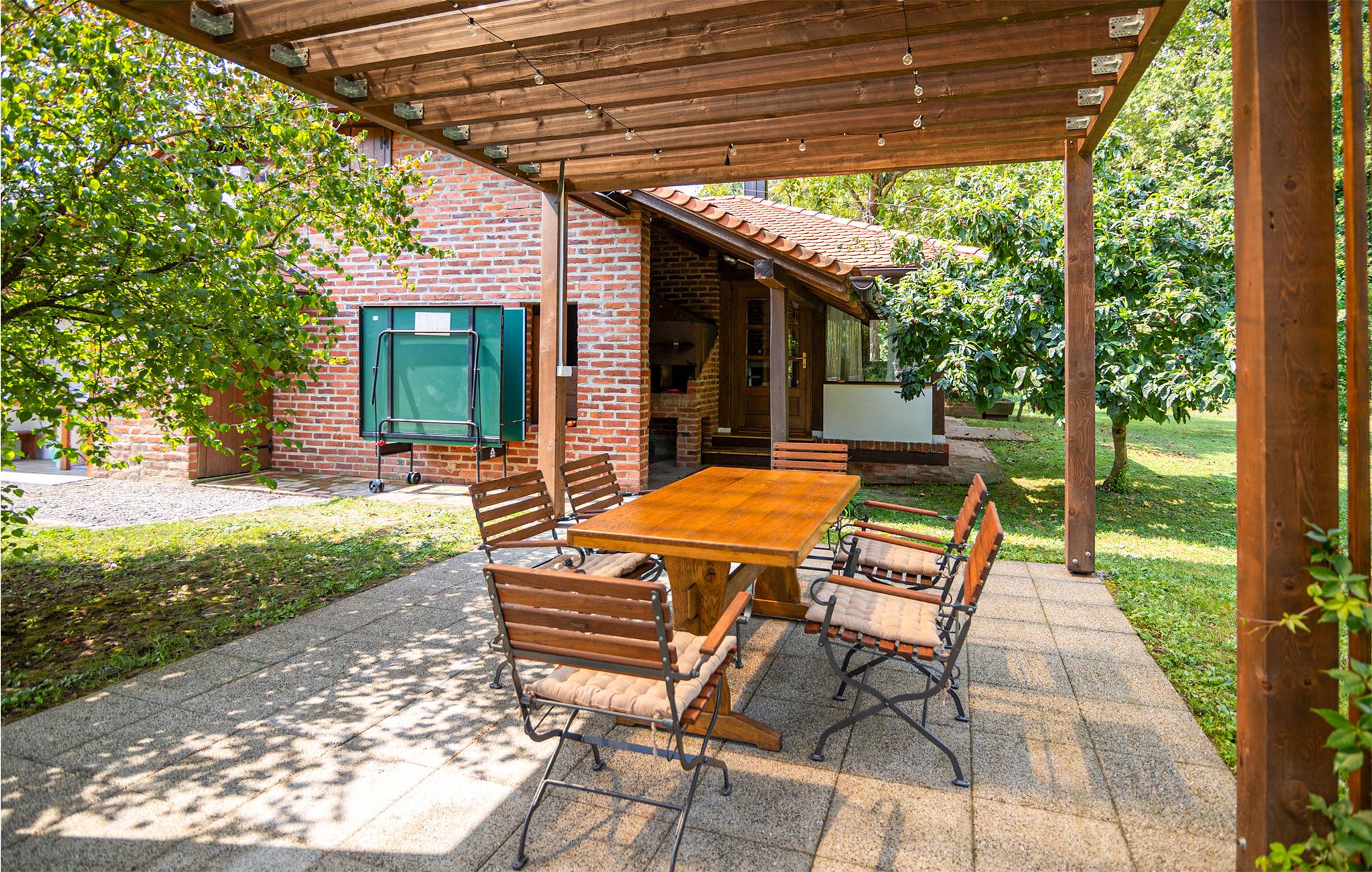 In naturschöner Umgebung finden Sie am Fluss Bosut dieses idyllisch gelegene Landhaus. Es bietet ein hochwertiges Interieur, das einen geschmackvollen Eindruck macht. In der rustikalen Atmosphäre des Hauses werden Sie erholsame Urlaubstage verbringen und können abends leckere Mahlzeiten genießen, Ihre Lieblingsserie schauen oder ein gutes Buch beim leisen Prasseln der Flammen im Kaminofen lesen.