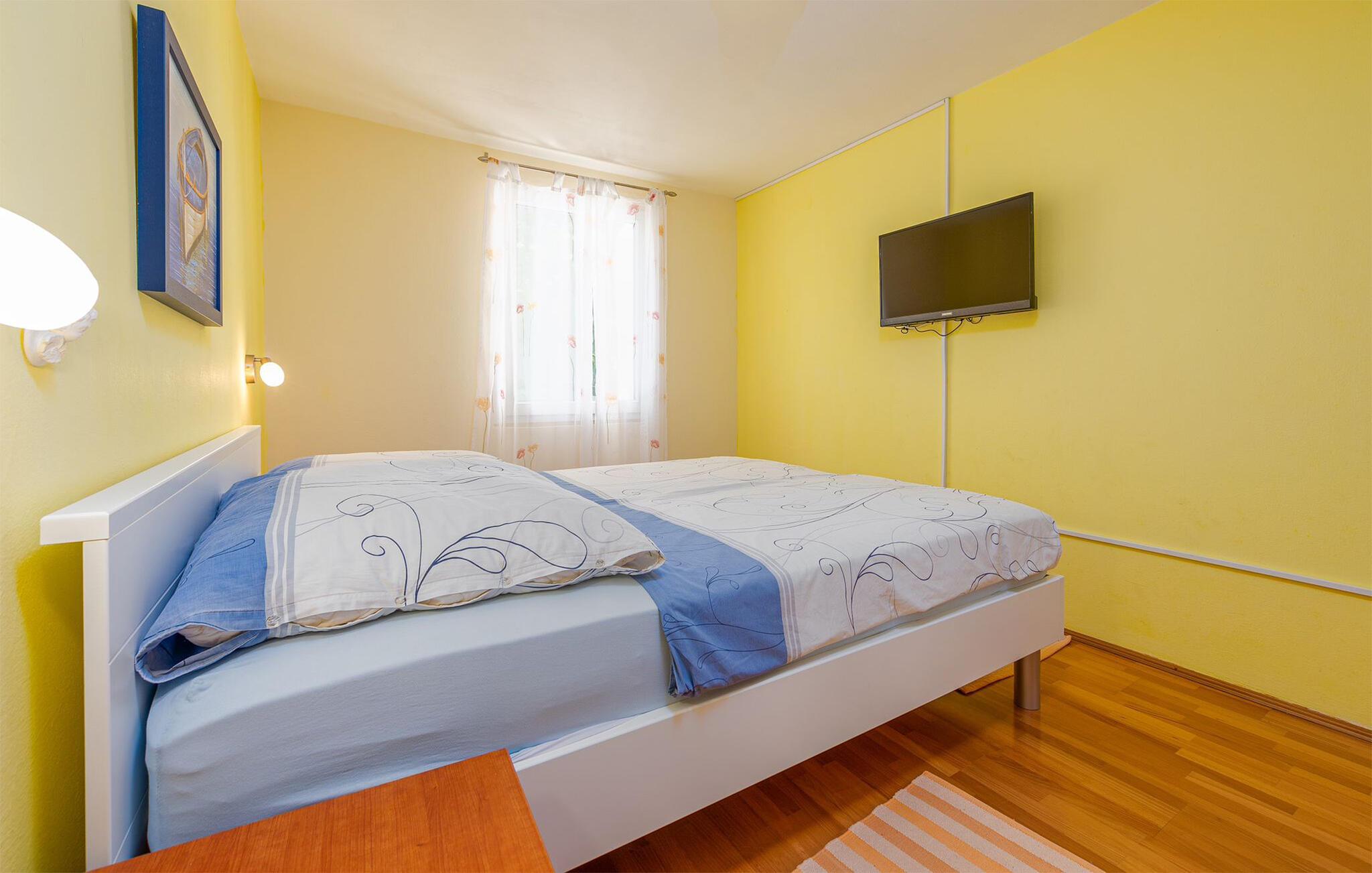 In dieser angenehmen Ferienwohnung auf Vir verweilen Sie in einer perfekten Mischung aus Modernität und klassischer Gemütlichkeit. Die ansprechende Einrichtung und das behagliche Ambiente schaffen eine entspannende Atmosphäre. Genießen Sie die Annehmlichkeiten wie die gut ausgestattete Küche und die geschmackvoll eingerichteten Zimmer. Besonders einladend ist die überdachte Terrasse, wo Sie bei jedem Wetter die frische Luft genießen können. Grillen Sie am Gemeinschaftsgrill und kommen mit den Gästen der zweiten Ferienwohnung im Haus ins Gespräch.
