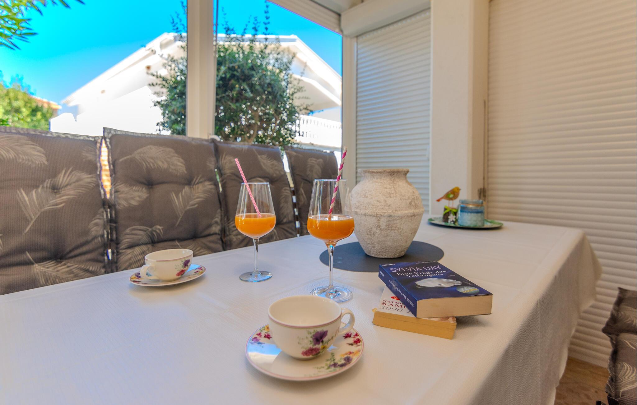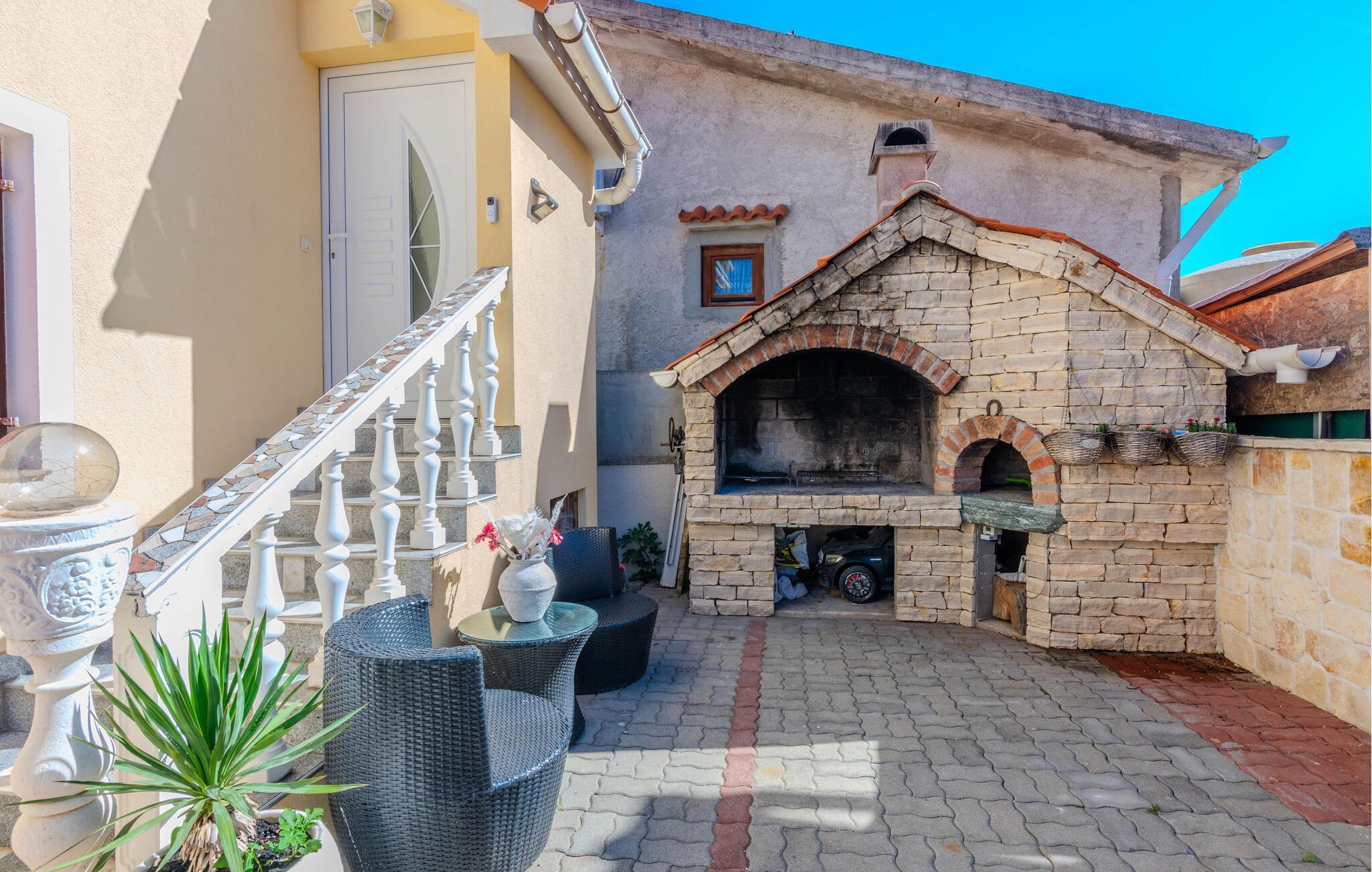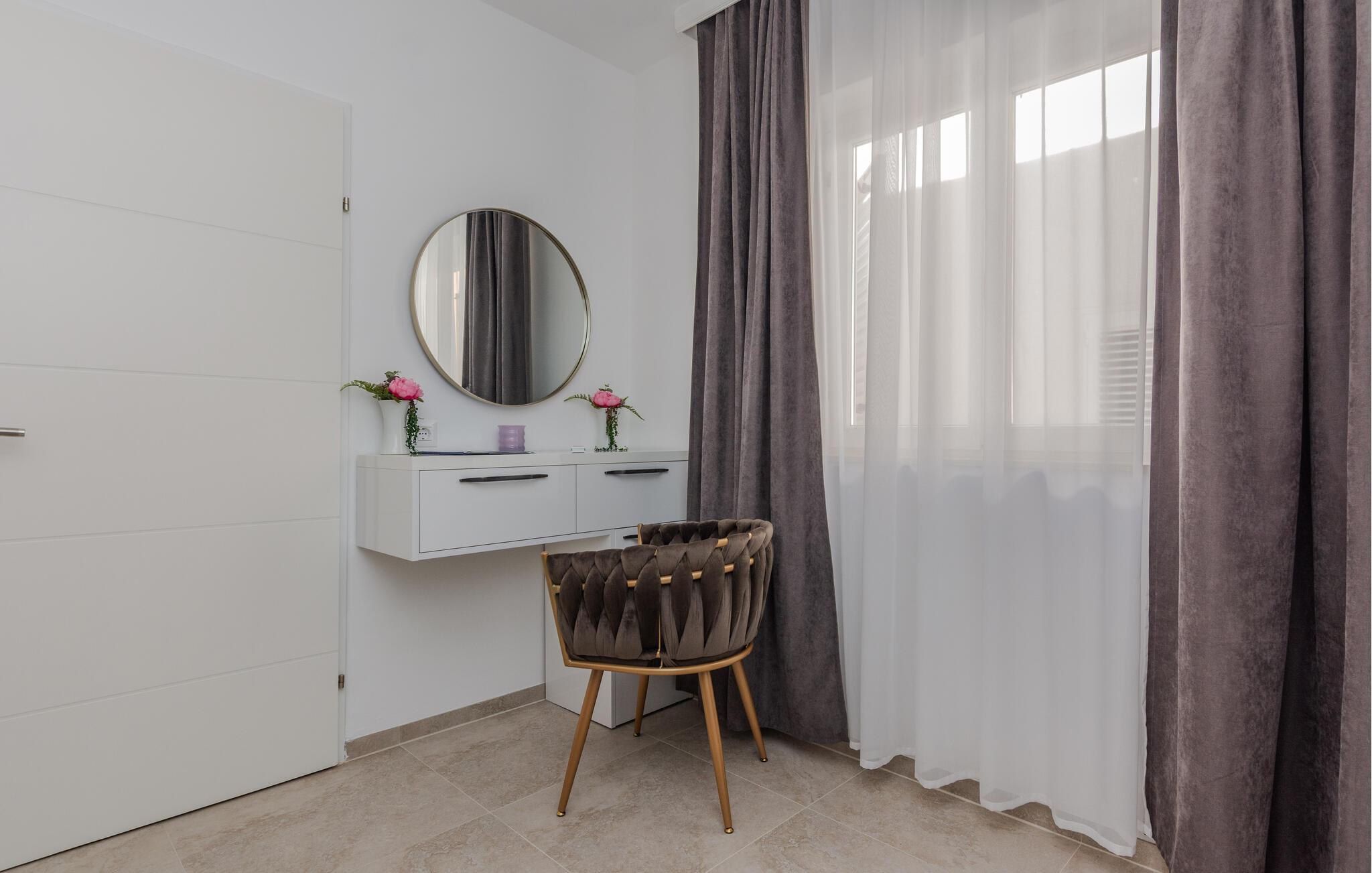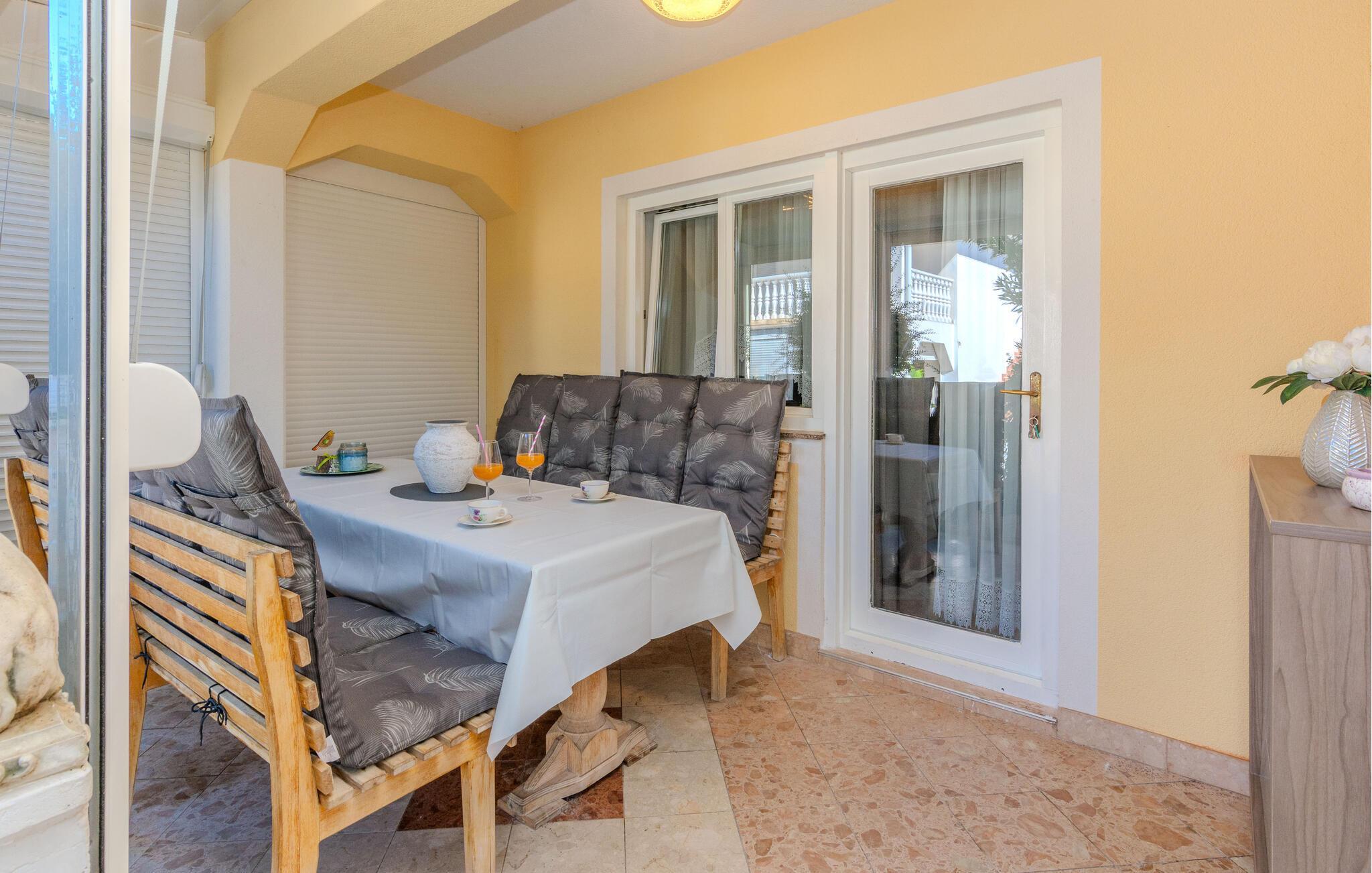 Willkommen in dieser einladenden Ferienwohnung in Vir, wo Sie ein entspanntes Urlaubserlebnis erwartet. Die Wohnung beeindruckt Sie mit einer geschmackvollen Einrichtung, die eine gemütliche und entspannte Atmosphäre schafft. Genießen Sie den offen gestalteten Wohnbereich, der fließend in eine gut ausgestattete Küche übergeht.