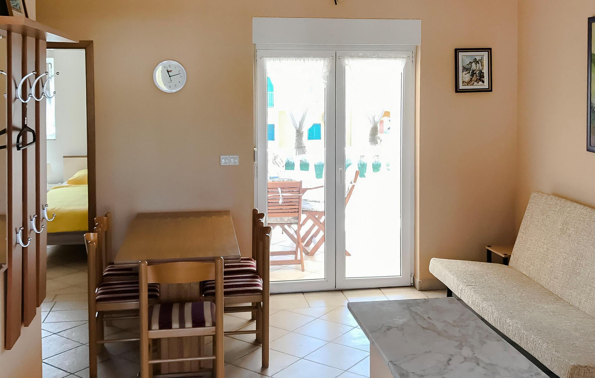 Diese auf der Insel Vir gelegene Wohnung ist wie geschaffen für entspannte Urlaubstage. Ein heller Wohnraum mit Sofa und direktem Zugang zur Terrasse und eine praktische Küche sorgen dafür, dass Sie sich schnell wie zuhause fühlen. Entspannen Sie hier beim Musikhören, verbringen Sie einen Nachmittag beim Kartenspielen oder probieren Sie beim gemeinsamen Kochen neue Rezepte aus.