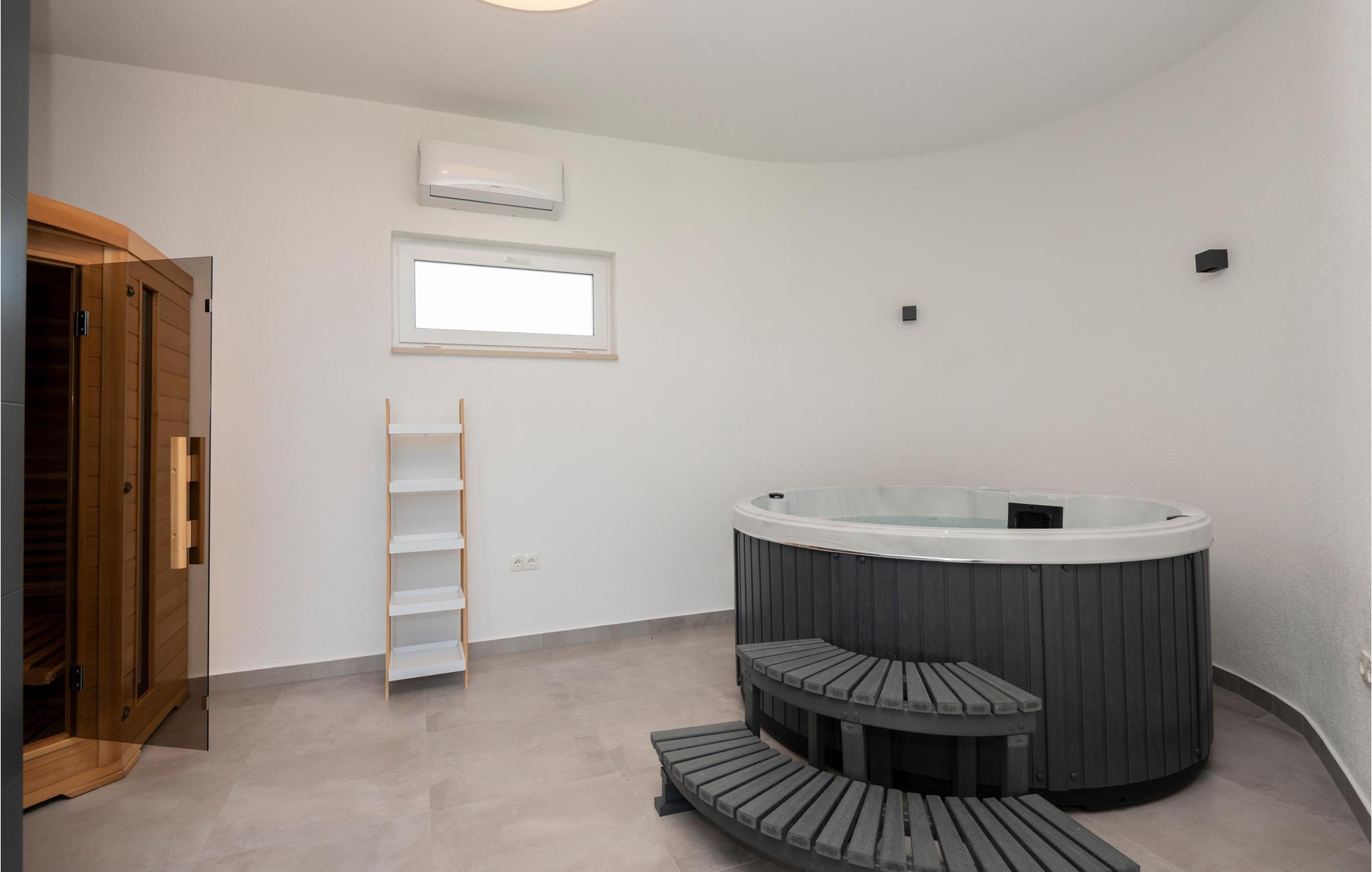 Modernes Ferienhaus mit Whirlpool und Sauna.