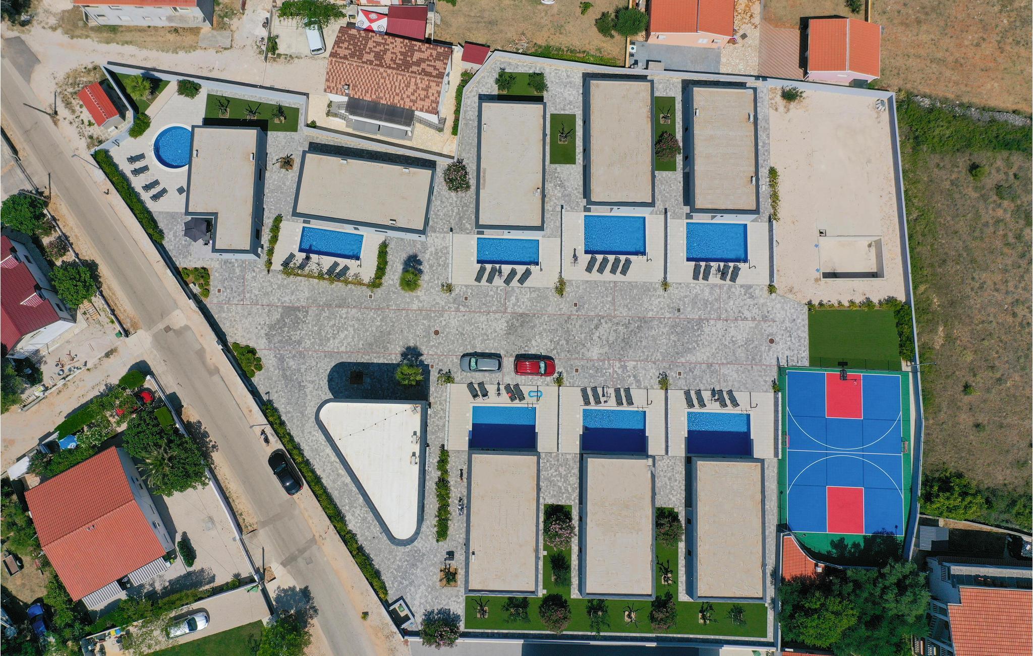 Es gibt einen multifunktionalen Spielplatz, Kindereinrichtungen und in einem separaten Gebäude gibt es eine gemeinsame Sauna und einen Whirlpool sowie einen Fitnessbereich.