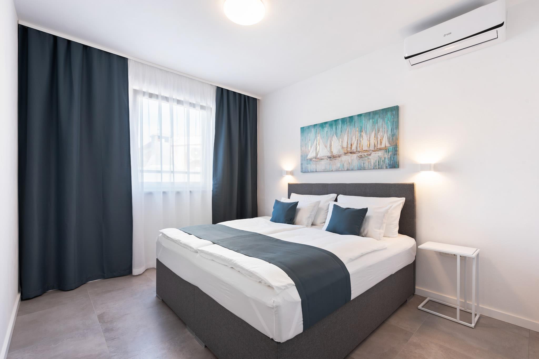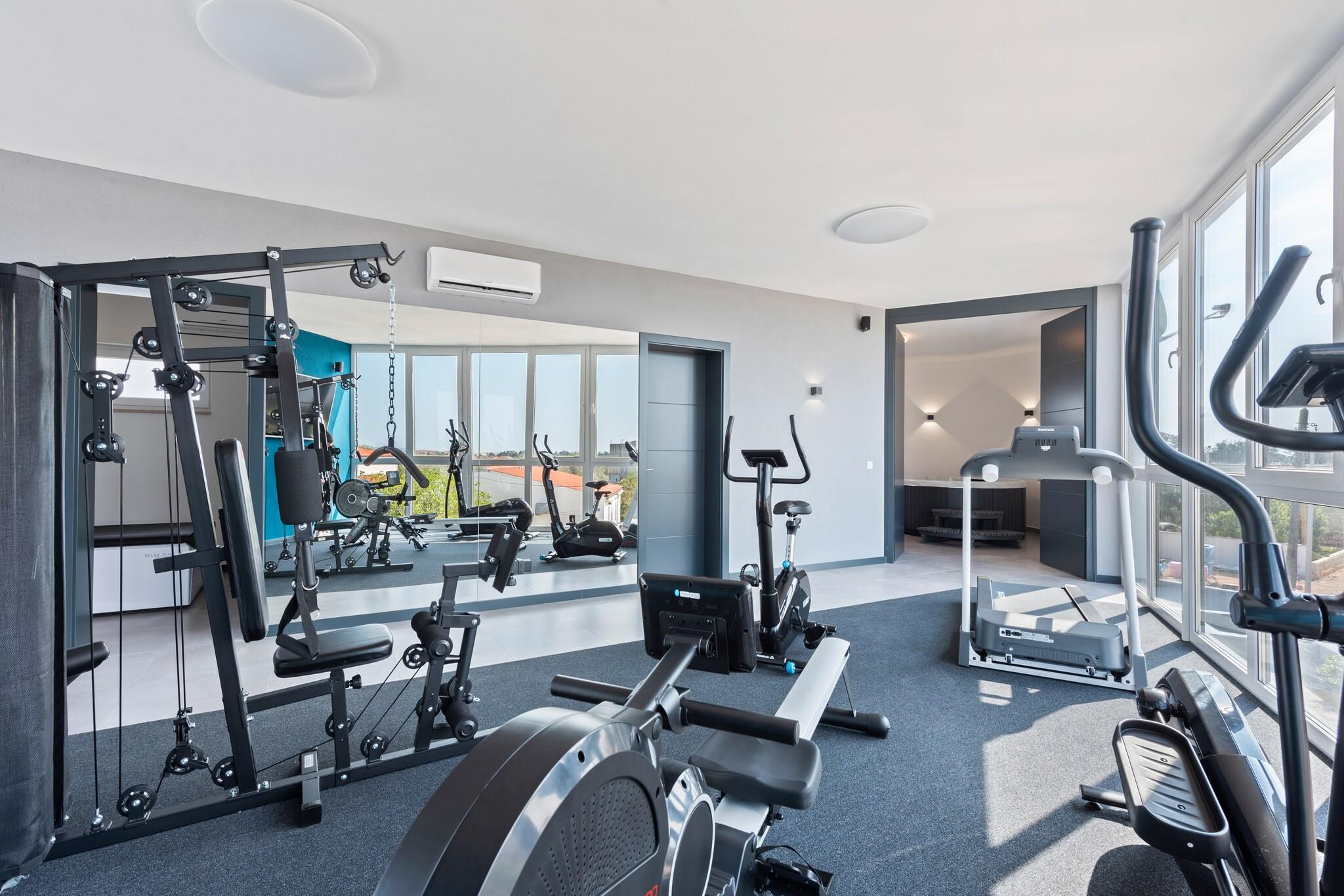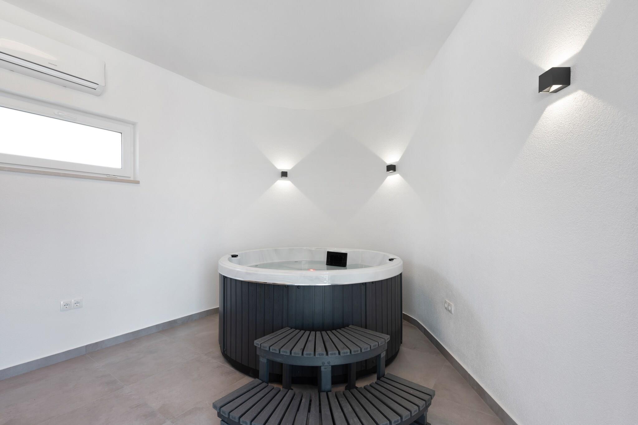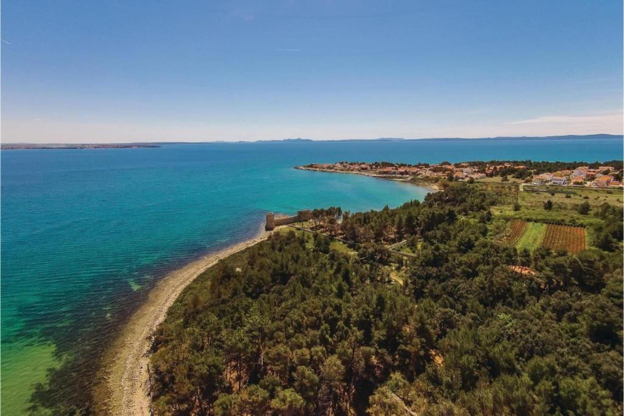 Komfort am Meer mit zentraler Lage Nur 400 Meter vom Strand und dem Zentrum von Vir entfernt, bietet dieses Ferienhaus für sechs Gäste einen ruhigen und komfortablen Rückzugsort an der Küste. Dank kostenlosem WLAN, moderner Ausstattung und der Nähe zu Restaurants (250 m) und Geschäften (150 m) ist alles bequem zu erreichen. Der Flughafen Zadar ist 37 km entfernt, sodass Sie bequem und unkompliziert reisen können. Modernes Wohnen & Entspannung Im Inneren erwartet Sie ein heller Wohnbereich mit Klimaanlage und Fernseher sowie eine voll ausgestattete offene Küche. Zwei gut ausgestattete Schlafzimmer verfügen jeweils über ein eigenes Bad, Klimaanlage und Haartrockner für zusätzlichen Komfort. Entspannen Sie im Whirlpool oder im Freien mit privatem Pool, Sauna, Grillplatz, Trampolin und Kinderspielgeräten. Für aktive Tage stehen Ihnen Fitnessgeräte und Fahrräder zur Verfügung. Inselabenteuer & lokale Küche Entspannen Sie am malerischen Strand Jadro oder erkunden Sie die jahrhundertealte Heilig-Kreuz-Kirche im nahegelegenen Nin. Probieren Sie beim Essen den frischen Fang im Viranka oder genießen Sie traditionelle Gerichte in der Konoba Punta Duba. Ob Sie zum Entspannen, Erkunden oder beides hier sind – dieses Inselhaus bietet die ideale Kombination aus Komfort und Lage.