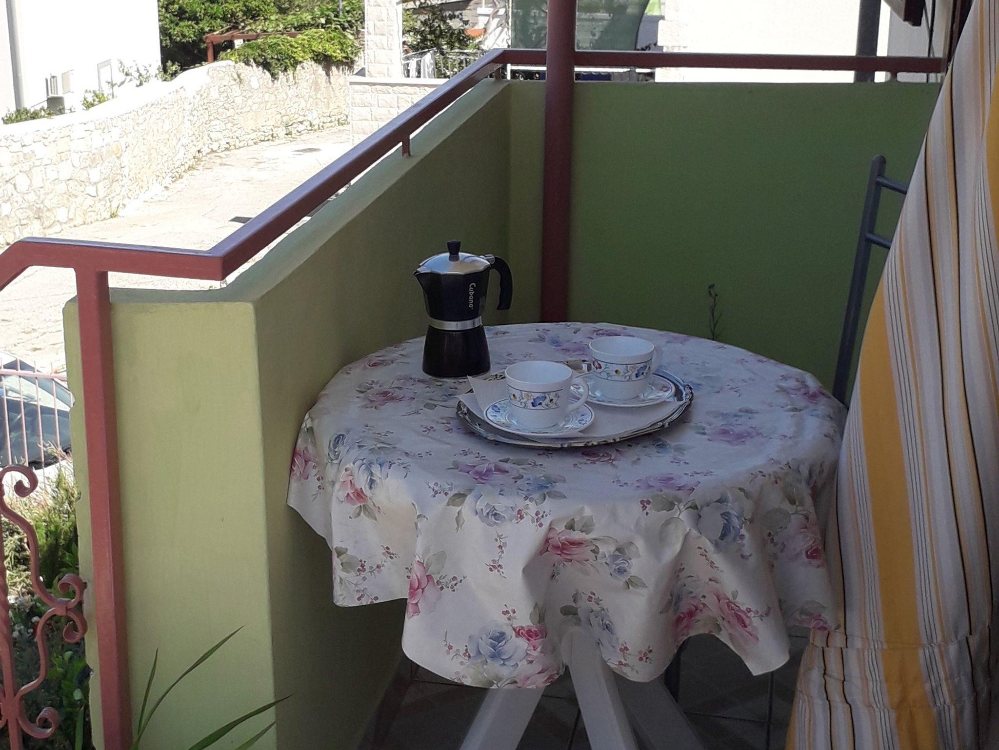 Ferienwohnung bietet Platz für 2 Gäste. Die Betten sind in Schlafzimmern, die es 1 gibt, innerhalb einer Gesamtfläche von 27m2, angeordnet. Die Gäste haben einen eigenen Balkon zur Verfügung, auf der sie in warmen Sommernächten genießen können. Das Apartment bietet Meerblick. Es ist erlaubt, Speisen auf dem Gemeinschafts-Grill vorzubereiten. Über den Balkon der gebuchten UNterkunftseinheit gehen auch andere Gäste oder Vermieter. IM PREIS INBEGRIFFEN: Kurtaxe, Endreinigung, Klimatisierung, Parkplatz, Internet, Wäschewaschen, Föhn, tragbarer Grill. VERBINDLICHE ZUSÄTZLICHE KOSTEN: Aufzahlung für Kurzaufenthalte (prozentualer Zuschlag pro Nächtigungsanzahl: 30% - 1, 20% - 2, 10% - 3). Die Verfügbarkeit zusätzlicher Dienstleistungen in Ihrem reservierten Termin und die Preise derselben (falls nicht aufgeführt) müssen im Voraus überprüft werden. Zusätzliche Dienstleistungen die in der Zahlungsaufforderung nicht aufgeführt sind werden direkt beim Vermieter bezahlt, angenommen der Gast nutzt auch diese.