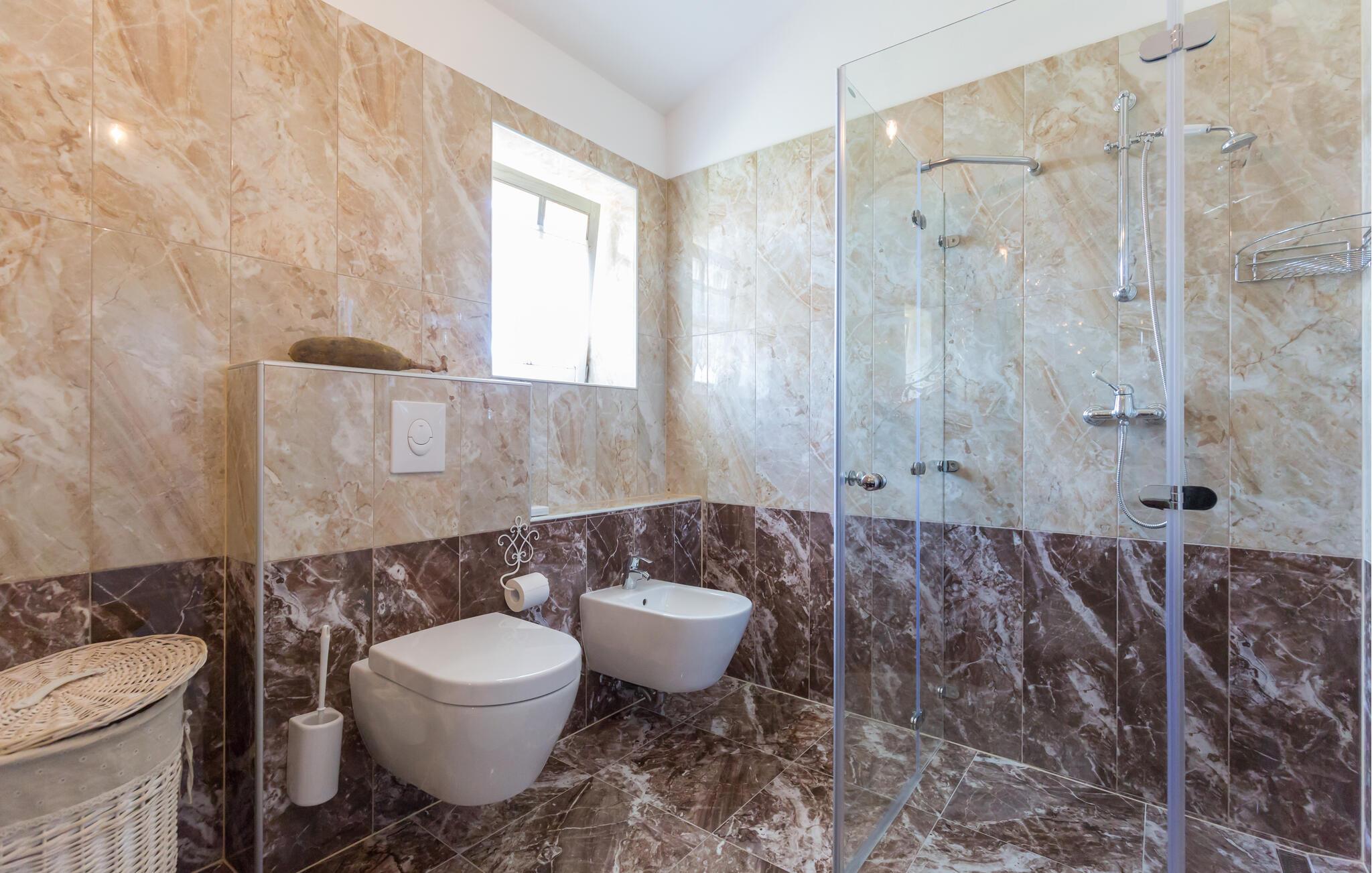- WC mit warmem und kaltem Wasser, Dusche