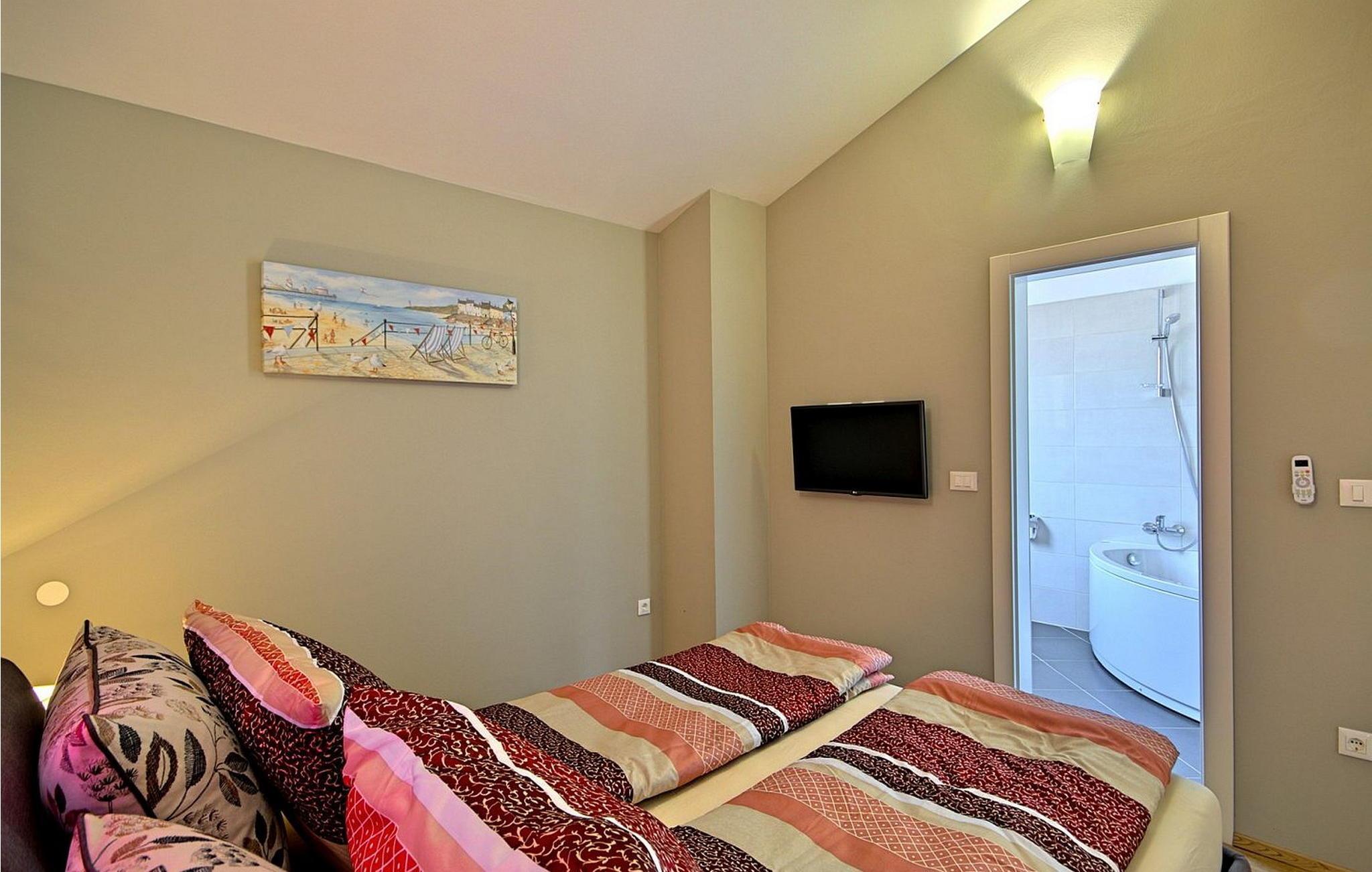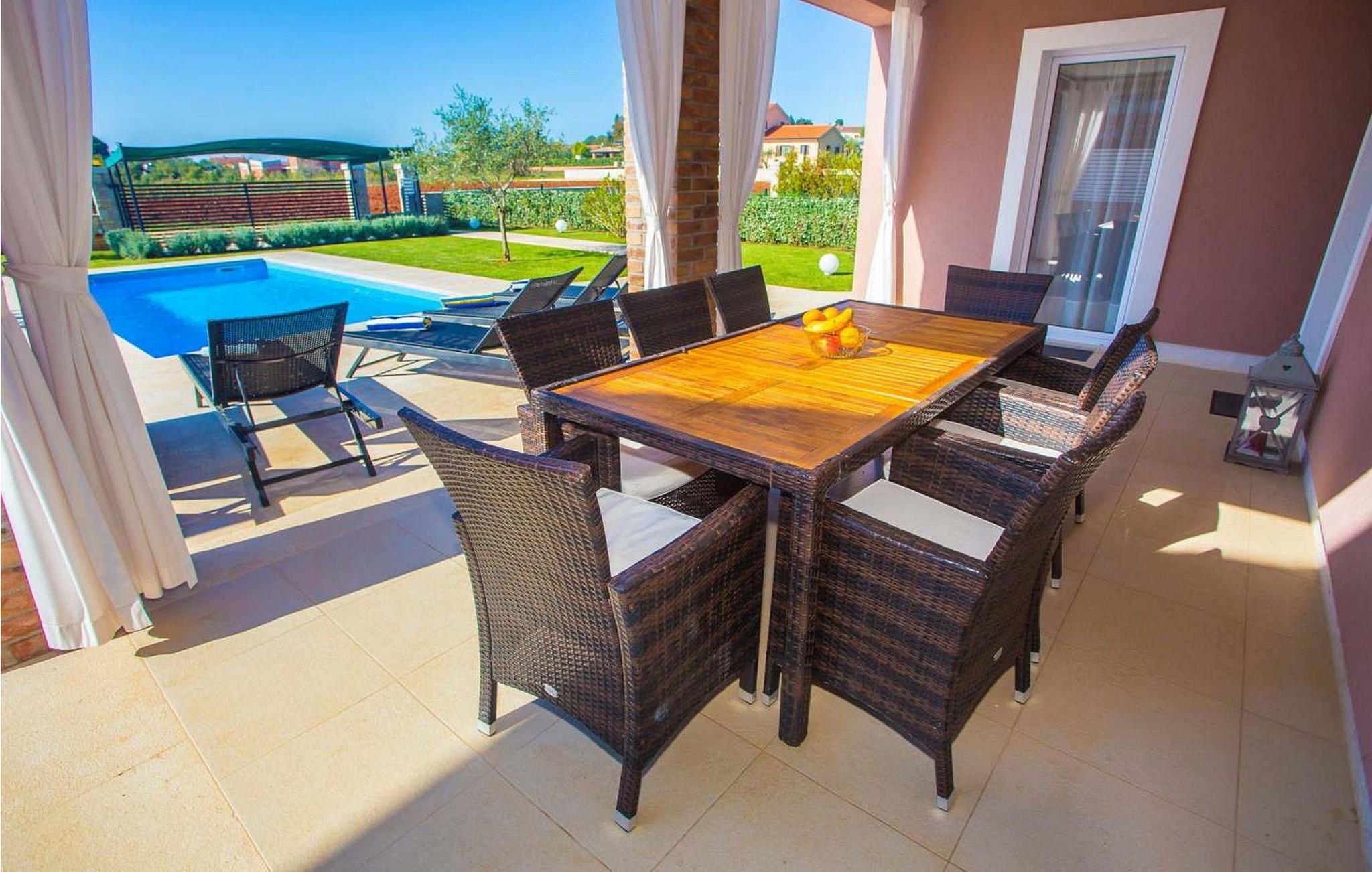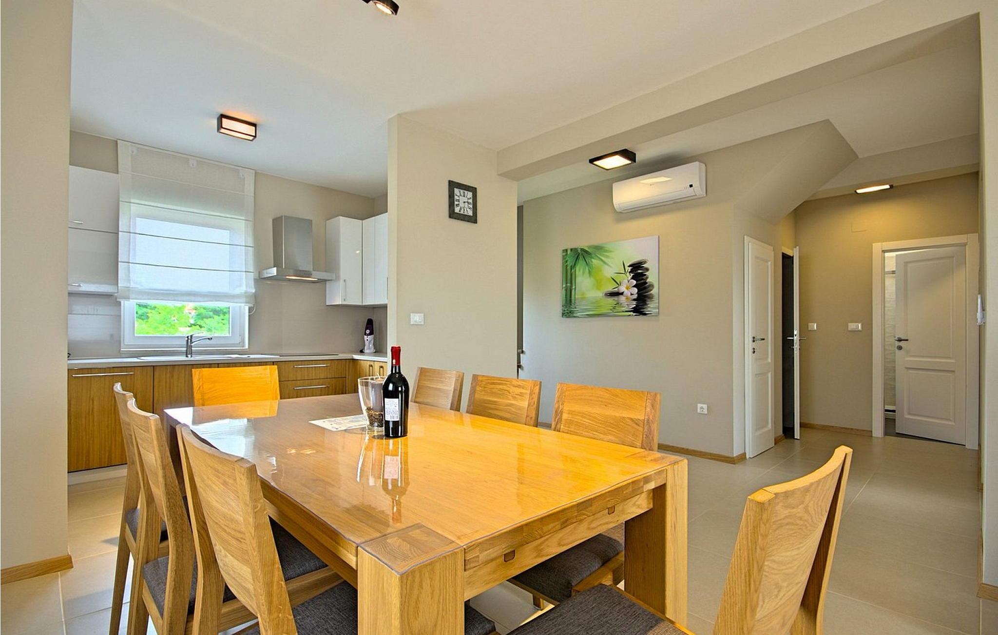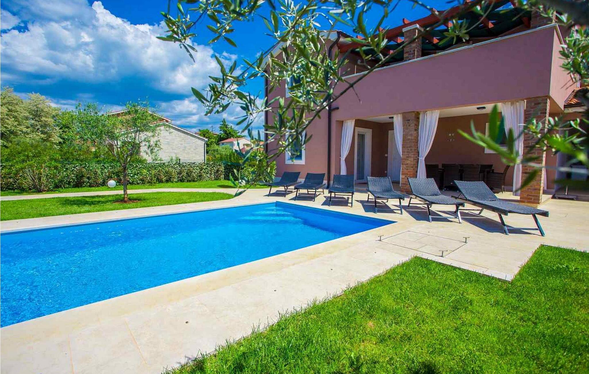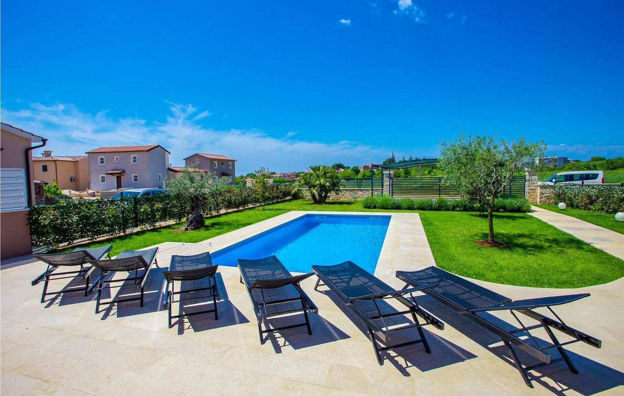Willkommen in der Villa Mariella, einem neu erbauten Feriendomizil mit glitzerndem Swimmingpool am ruhigen Rande der charmanten Stadt Kaštelir. Nur 11 Kilometer von der lebhaften Stadt Porec und 10 Kilometer von den wunderschönen Stränden des Ferienortes Lanterna entfernt, ist diese Villa perfekt gelegen für alle, die das Beste von Istrien erkunden möchten. Die 2016 erbaute Villa Mariella bietet eine wunderbare Mischung aus modernem Komfort und Outdoor-Vergnügen. Auf dem umzäunten 800 m² großen Grundstück können die Gäste auf der überdachten Terrasse mit einem Esstisch für 8 Personen entspannen, auf dem Grill zubereitete Mahlzeiten genießen und am Pool abschalten. Familien werden den Kinderspielplatz zu schätzen wissen und es gibt zwei überdachte Parkplätze für Ihren Komfort. Kaštelir ist bekannt für seine ausgezeichneten Restaurants, Pizzerien, Bars und Geschäfte und ist somit ein wunderbarer Ausgangspunkt für Ihren Urlaub. Die malerische Lage und die herzliche Gastfreundschaft der Stadt tragen zu ihrem Charme bei und bieten die perfekte Kulisse für einen unvergesslichen Aufenthalt. Die Villa Mariella ist voll klimatisiert und so gestaltet, dass sie ein komfortables und entspannendes Erlebnis bietet und dafür sorgt, dass Ihr Urlaub in Istrien wirklich etwas Besonderes wird. Bitte beachten Sie, dass diese Unterkunft keine Jugendgruppen oder Junggesellenabschiede akzeptiert. Eine Jugendgruppe in dieser Unterkunft besteht aus Personen im Alter von 26 Jahren oder darunter.