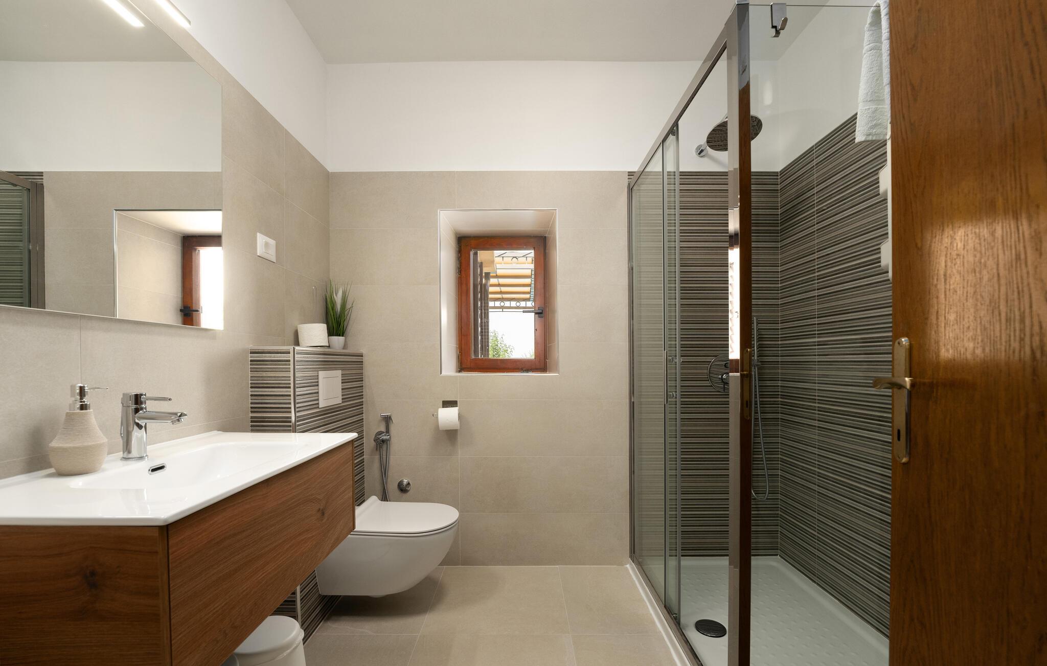 - WC mit warmem und kaltem Wasser, Dusche und Badewanne