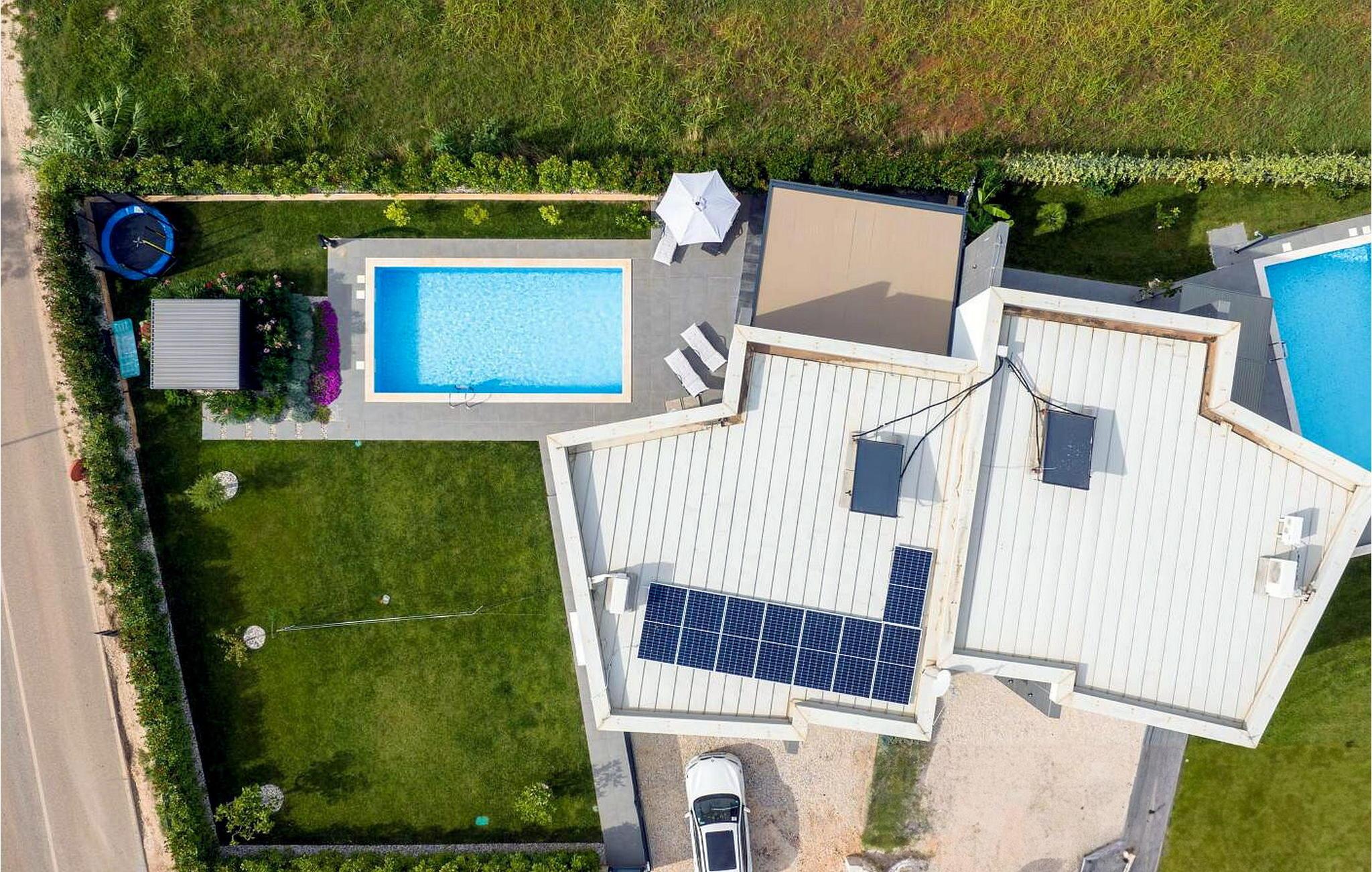 Villa mit Pool und Versorgung mit Solarenergie für 8 Personen von 160 qm erstreckt sich auf zwei Etagen. Im Erdgeschoss gibt es ein Wohnraum mit Sitzpolster und Schaukel, geräumige Küche mit Esszimmer und Sage Barista Pro Kaffeemaschine, ein kleineres Zimmer mit Doppelbett und eine Dusche/WC. Auf dem ersten Stock sind insgesamt drei klimatisierte Schlafzimmer, ein komfortabler Arbeitsplatz mit Monitor und Tastatur, ideal für digitale Nomaden und Balkon mit Meerblick. Jedes Schlafzimmer verfügt über SAT-TV und großen Doppelbett der sich in zwei Einzelbette teilen kann. Eines der Zimmer hat eine private Dusche/WC und es gibt noch eine Dusche/WC im Flur. Bitte beachten Sie, dass diese Unterkunft auf Anfrage möglicherweise Jugendgruppen akzeptiert. Bitte kontaktieren Sie uns, um dies zu überprüfen. Eine Jugendgruppe in dieser Unterkunft besteht aus Personen im Alter von 26 Jahren oder jünger. Wenn Sie eine Jugendgruppe sind [oder einen Junggesellenabschied planen], werden Sie möglicherweise bei der Ankunft um die Zahlung einer zusätzlichen Kaution gebeten. Etwaige Beträge, die zur Behebung von Schäden an der Immobilie erforderlich sind, werden von der Kaution abgezogen.