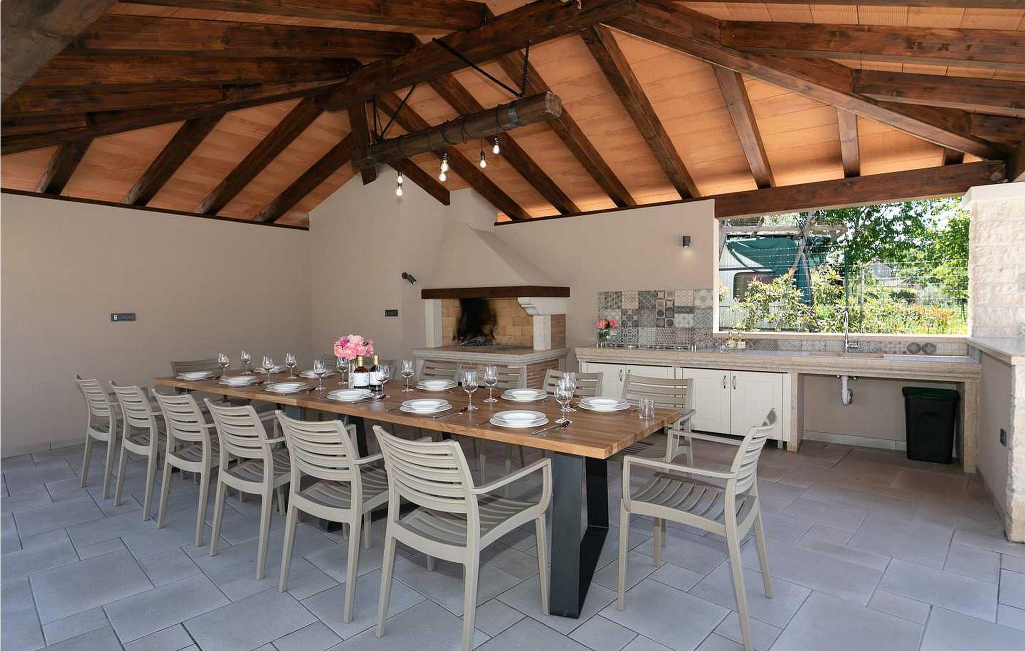 Villa Denis ist ein komfortables und reich ausgestattetes Ferienhaus mit Pool in der Nähe von Kaštelir, ideal für drei Familien oder Gruppen von Freunden.