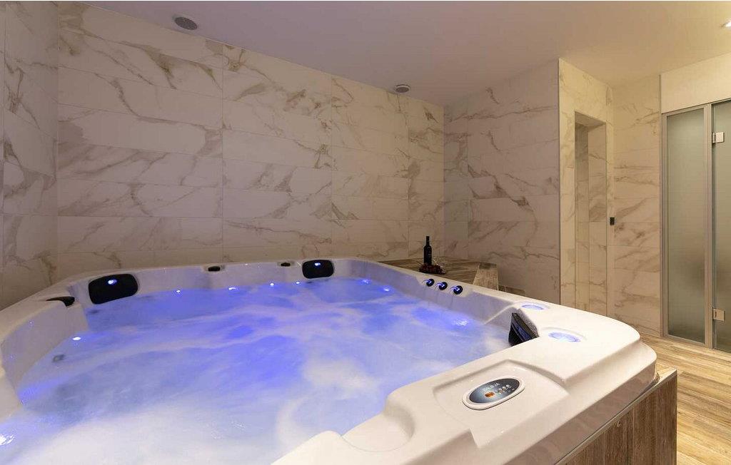 Das Ferienhaus verfügt über Pool von 50 qm mit Jacuzzi, überdachter Terrasse mit ausgestatteter Außenküche, Spielzimmer mit Billardtisch und vier Parkplätze.