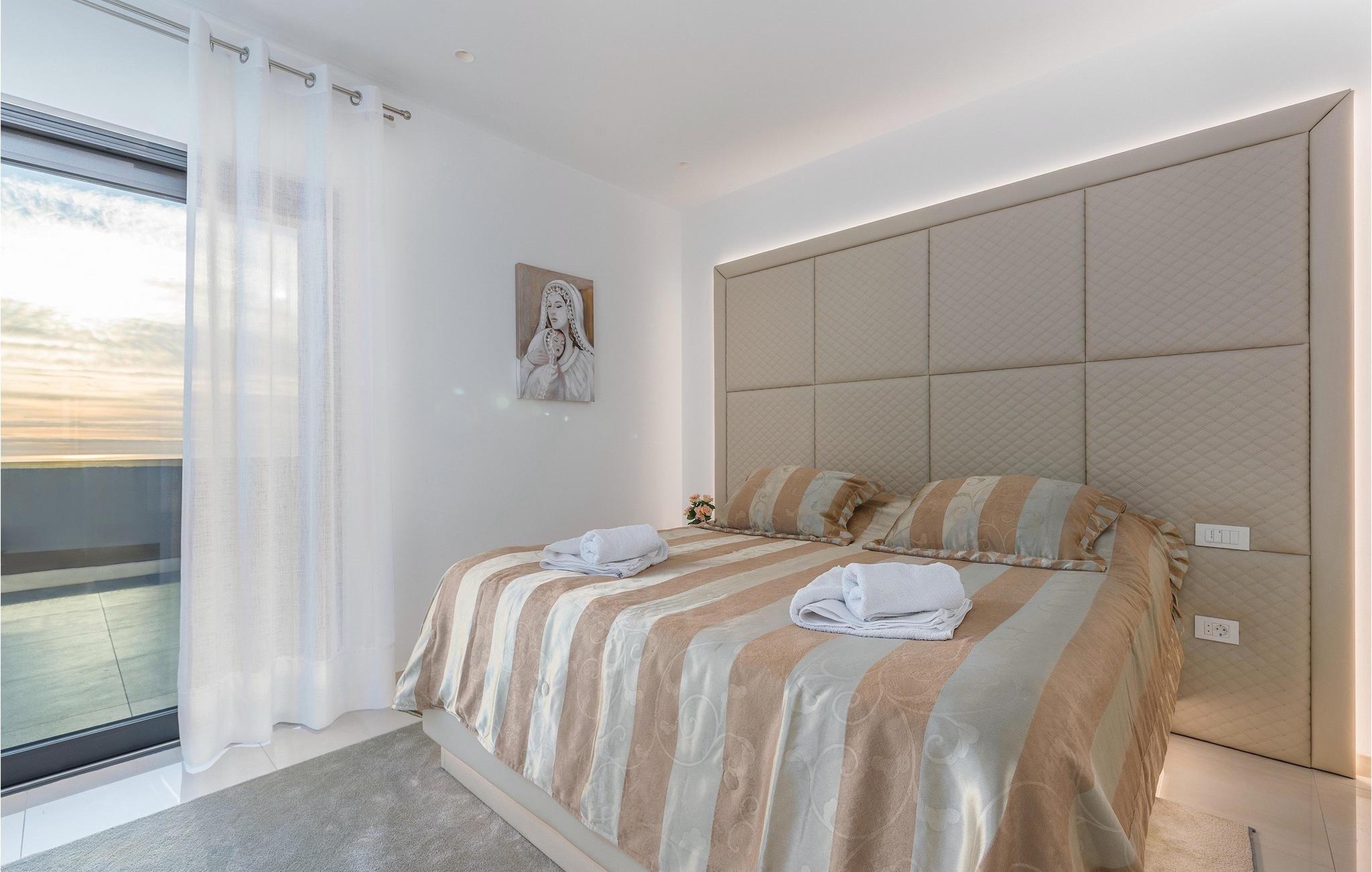 Betreten Sie die Villa über die Terrasse, so treten Sie ein in den modernen, lichtdurchfluteten Wohnraum mit Essbereich und voll ausgestatteter Küche. Mit vielen interessanten Details ausgestattet und dekoriert, ist auch das Interieur ein einziger Wow-Effekt! Im Erdgeschoss befinden sich zwei große, komfortable Schlafzimmer mit Doppelbetten. Drei weitere schicke Schlafzimmer auf der ersten Etage versprechen erholsamen Schlaf und schöne Träume. Jedes Schlafzimmer ist individuell und geschmackvoll eingerichtet und verfügt über ein eigenes wunderschönes Badezimmer, sowie TV und Klimaanlage.
