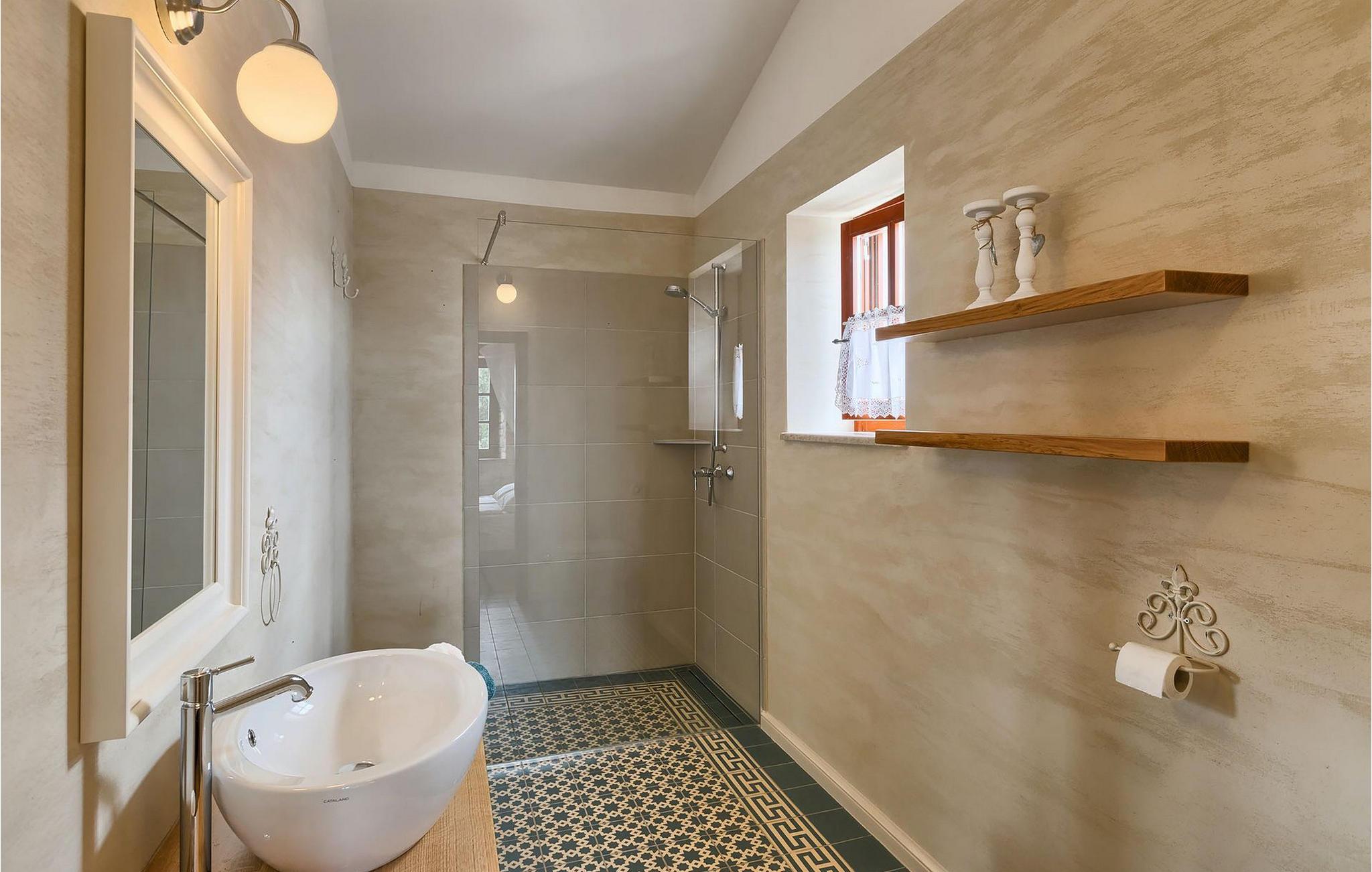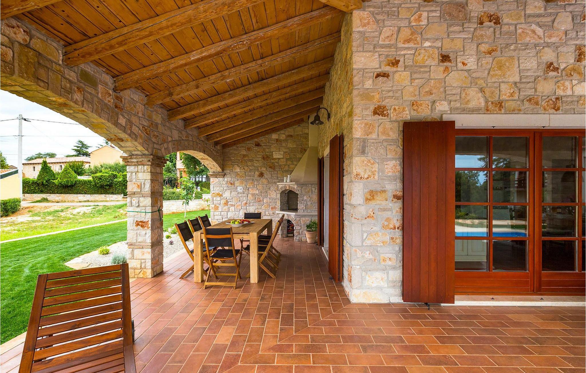 Villa Angelika ist ein wunderschönes modernes Steinhaus mit Pool, welches sich nur eine kurze Autofahrt von Porec befindet. Im schön eingerichteten Interieur mit rustikalen Details kann Villa Angelika 6+2 Gäste beherbergen. Villa Angelika besteht aus 3 Schlafzimmern mit eigenen Badezimmern, einer komplett ausgestatteten Küche mit Esstisch und Wohnzimmer. Die oberen Zimmer sind mit Fliegengittern ausgestattet. Vom Erdgeschoss aus hat man direkten Zugang zum Garten mit Privatpool. Für noch genießbarere Momente in dieser Villa mit Pool steht eine Terrasse mit Essbereich im Freien und Holzkohlegrill zur Verfügung. Villa Angelika ist klimatisiert und verfügt über WLAN Internetzugang und bietet alles für einen entspannten Urlaub. Frisches Gemüse und Obst aus dem Garten stehen Ihnen kostenlos zur Verfügung.