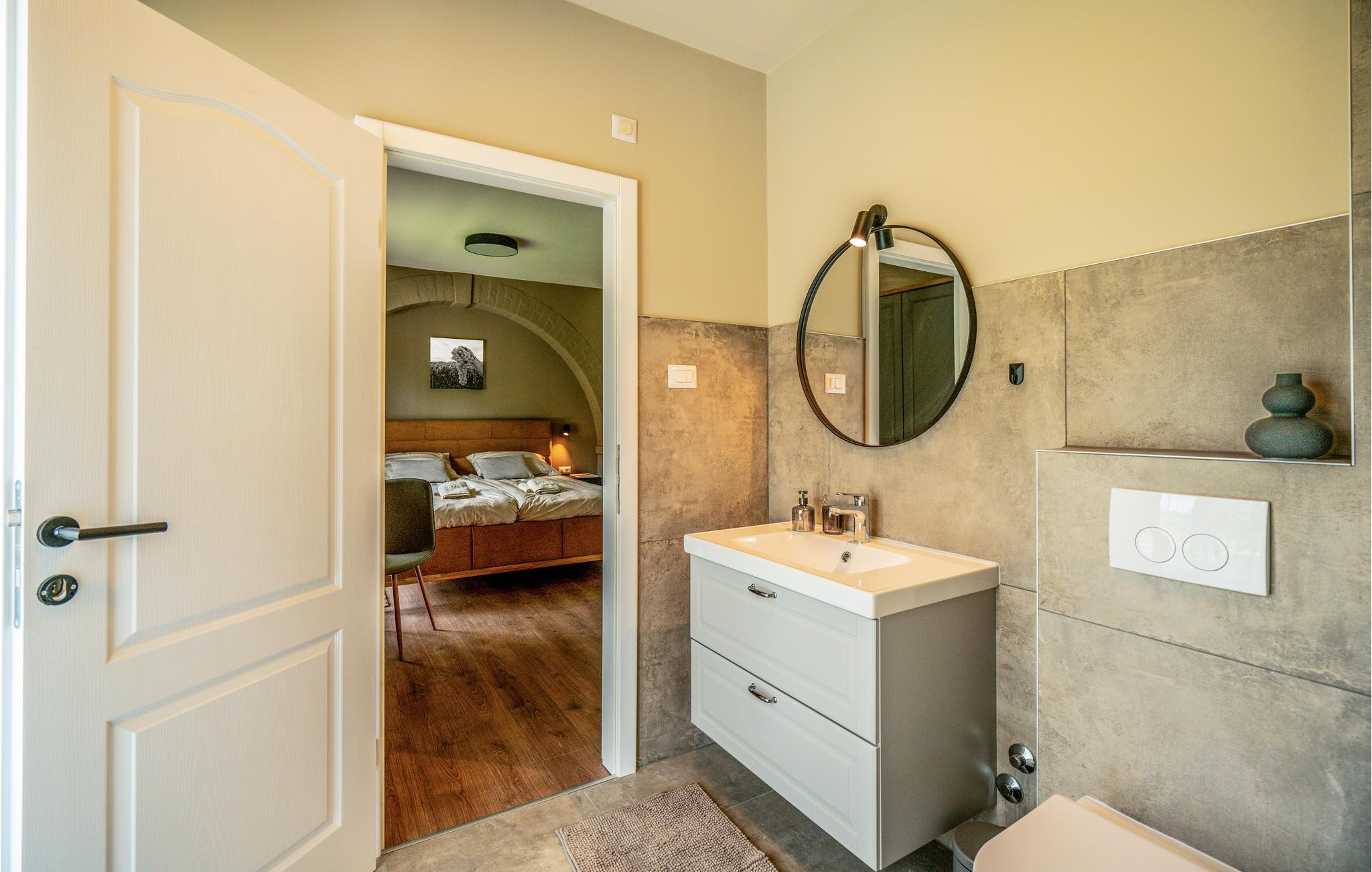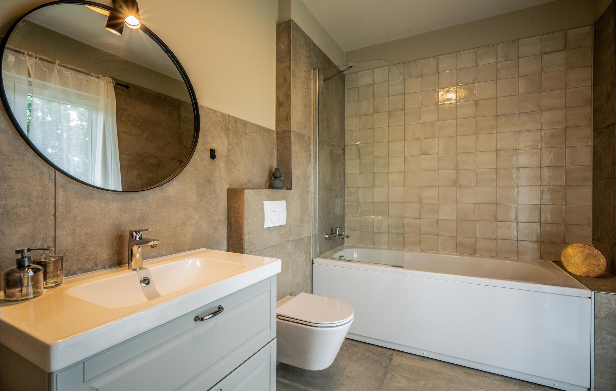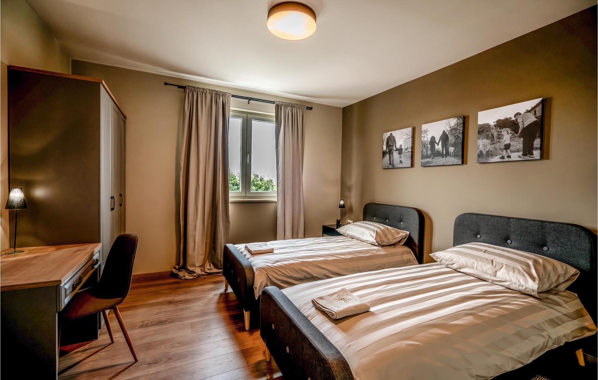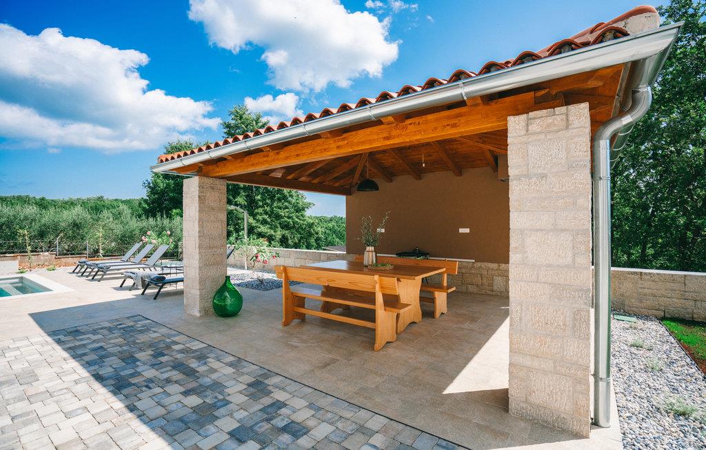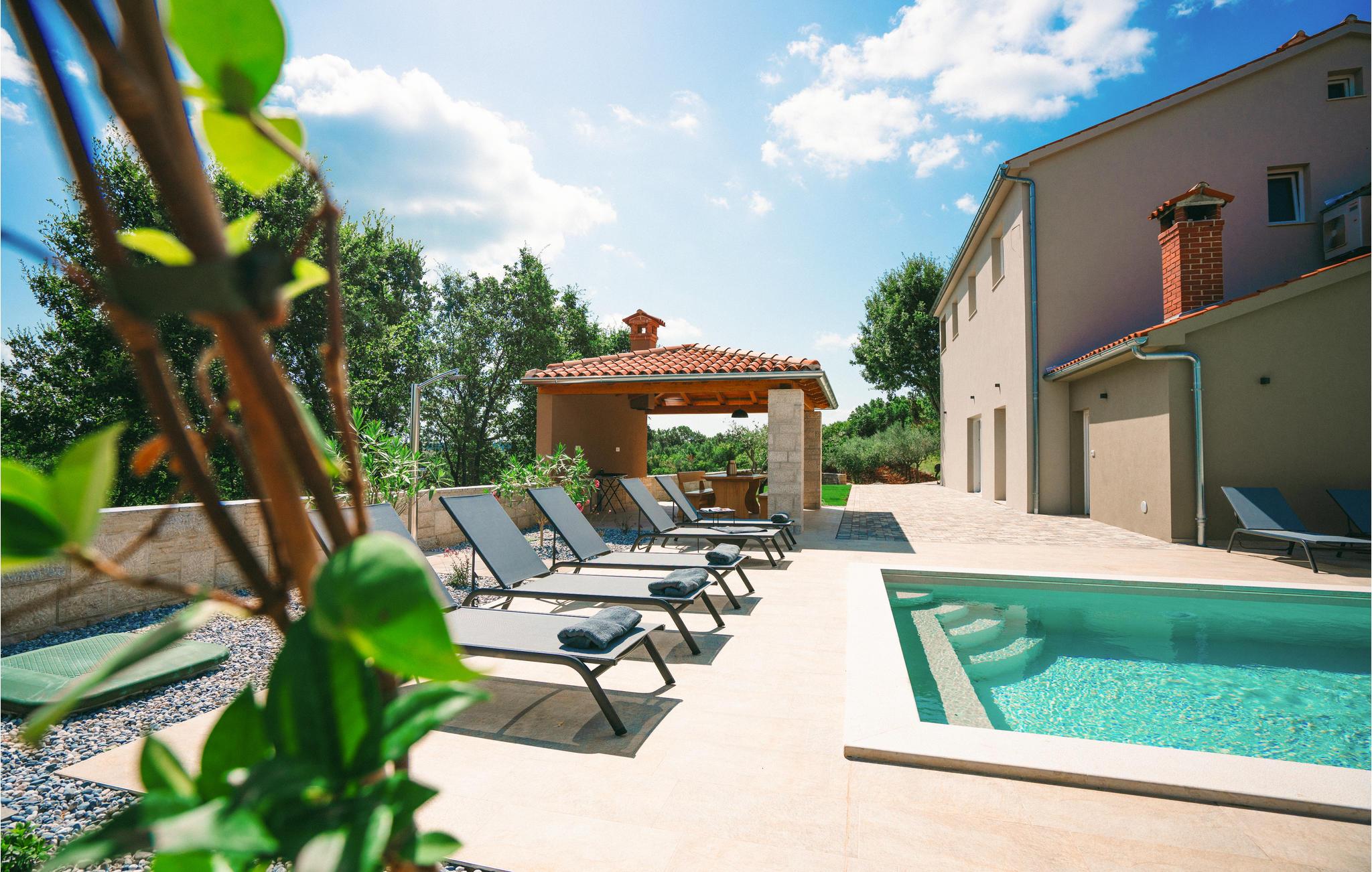 Entfliehen Sie dem Stadtleben und den hektischen Touristenhotspots an der Küste und genießen Ruhe und Entspannung in diesem schönen Ferienhaus in Brig. Umgeben von istrischer Natur bietet Ihnen das geschmackvolle Haus eine herrliche Unterkunft. Bestaunen Sie den großen Wohnraum, der mit seinen hohen Decken, stilvollen Einrichtung und sanften Farben eine großartige Wohlfühlatmosphäre schafft. Hier können Sie sich als Familie versammeln und nach erholsamen Nächten im oberen Stockwerk das gemeinsame Frühstück genießen. Auch die überdachte Terrasse ist ein schöner Ort zum Speisen oder Verweilen, während Ihre Kinder im Pool plantschen.