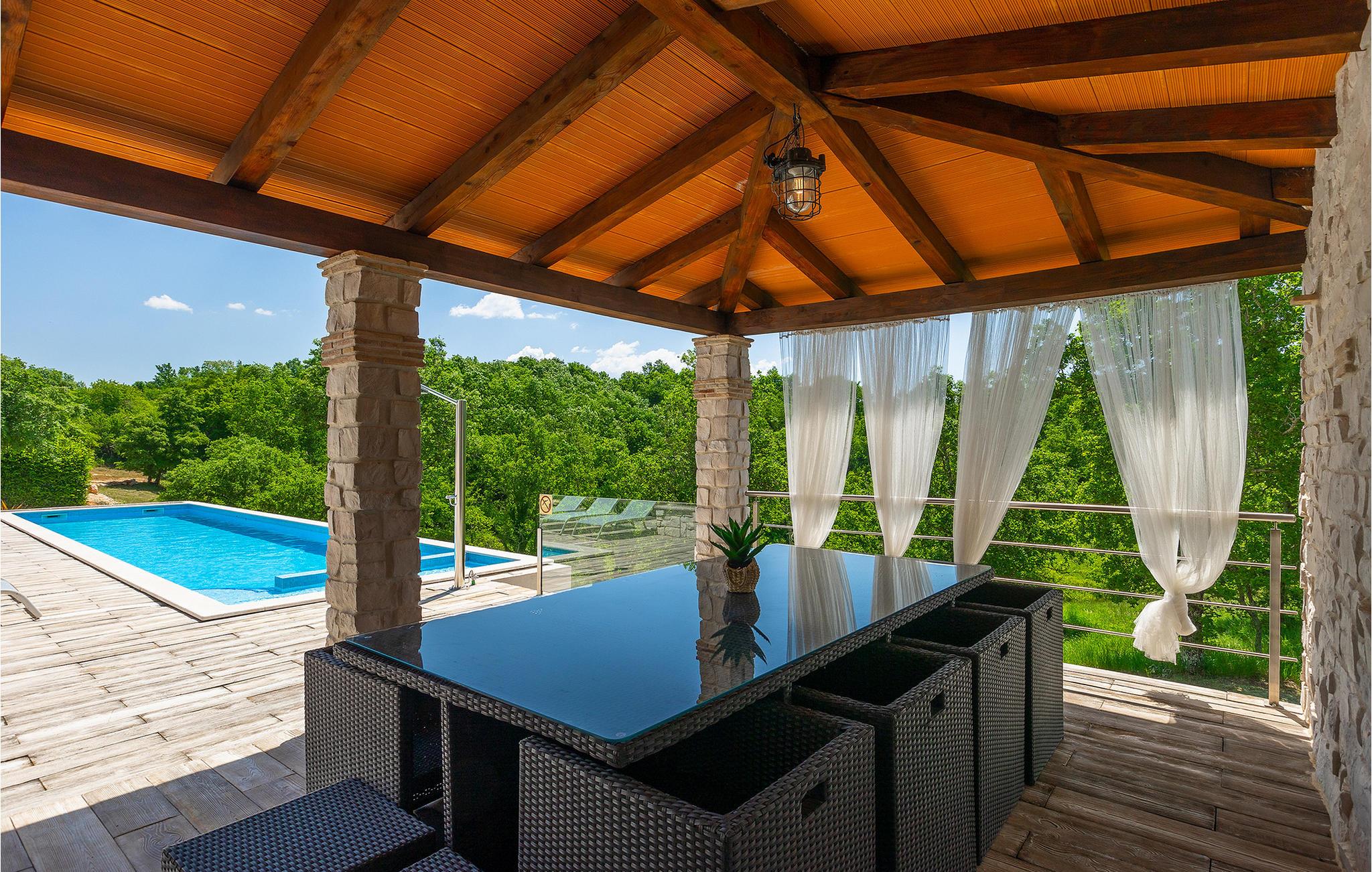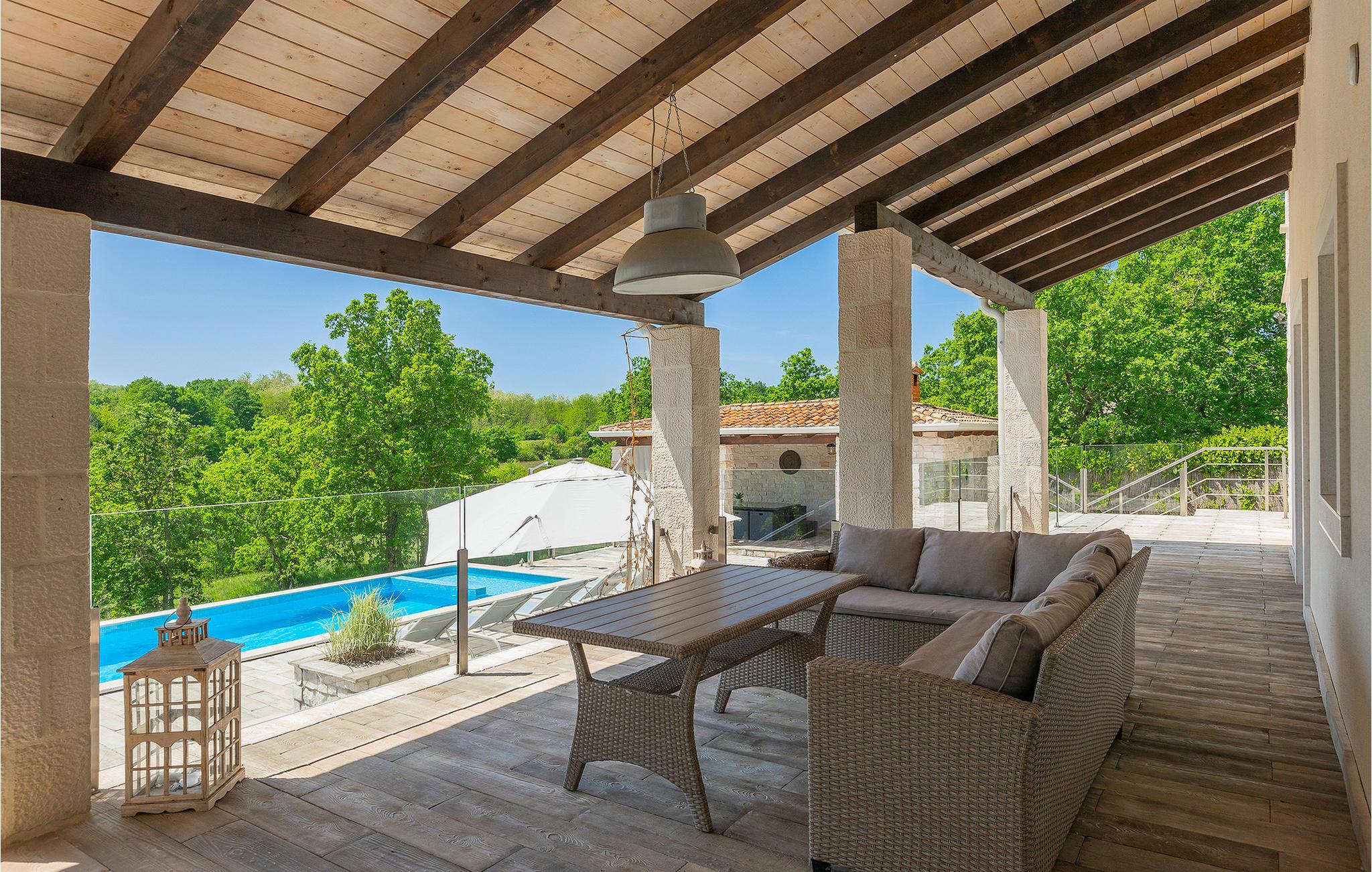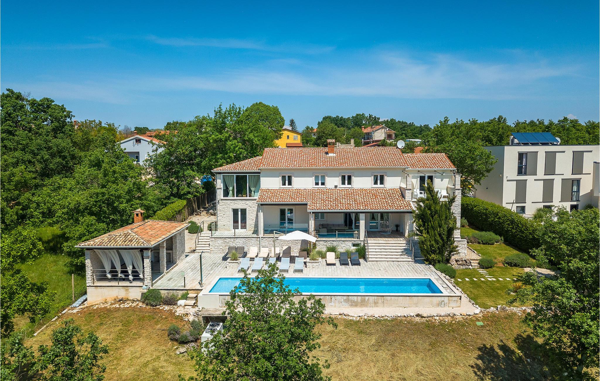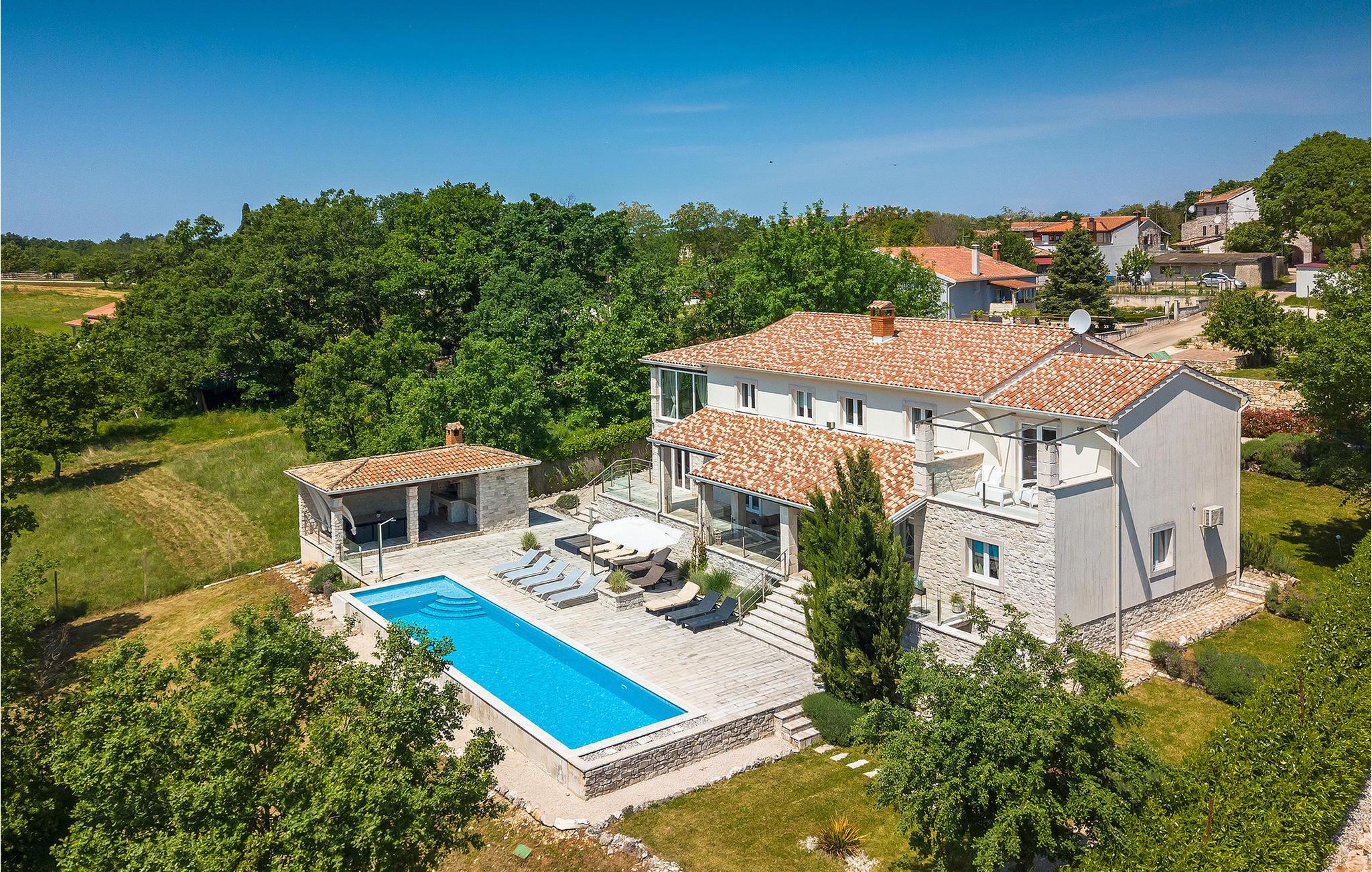 Diese herrliche Villa mit 6 Schlafzimmern ist wundervoll entworfen und möbliert, für einen perfekten Urlaub. Die Villa hat eine hohe Aufnahmekapazität, und kann auf komfortable Weise bis zu 12 Personen aufnehmen. Die Villa befindet sich am Rande eines kleinen istrischen Dörfchens, in einer ruhigen Umgebung welche den perfekten Rahmen für erholsame Ferien bietet. Dies, kombiniert mit der exklusiven Ausstattung inklusive Designer-Möbeln, garantiert den Komfort dieser Luxus-Residenz. Die Details sind unübertroffen, immer bestrebt neue Reize und Gefühle der Gäste wachzurufen. Die Villa bietet alle nötigen Annehmlichkeiten, und noch viel mehr. Sie können einfach die istrische Sonne beim Pool genießen, oder Aktivitäten, die die Villa anbietet ausprobieren.