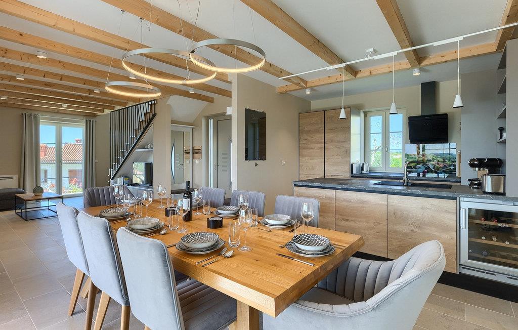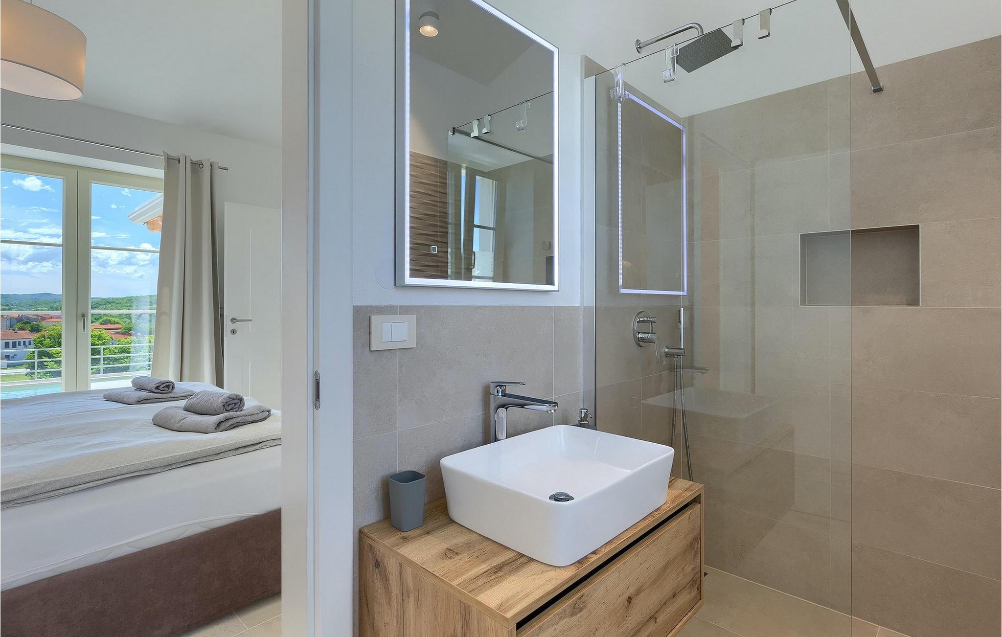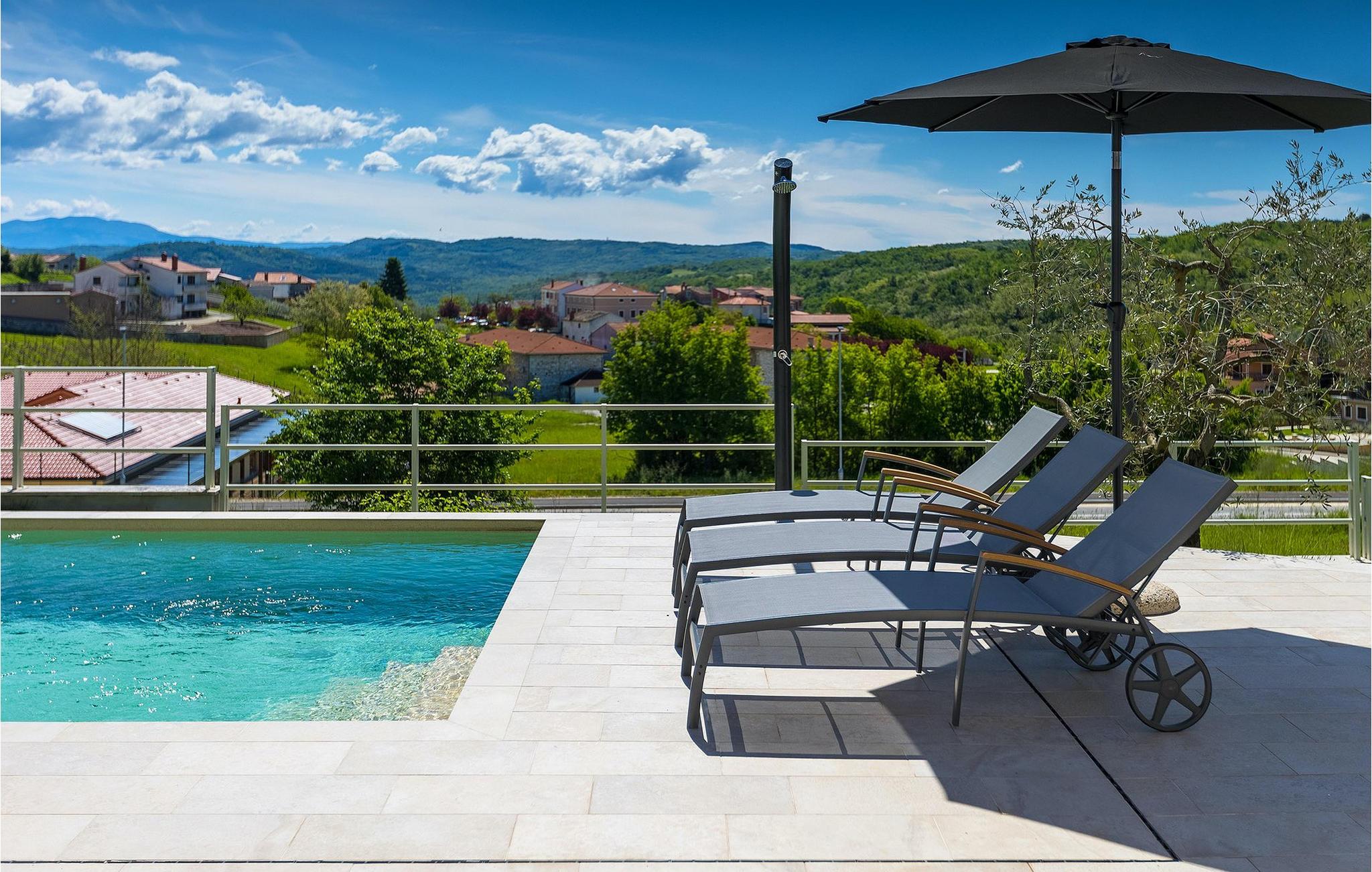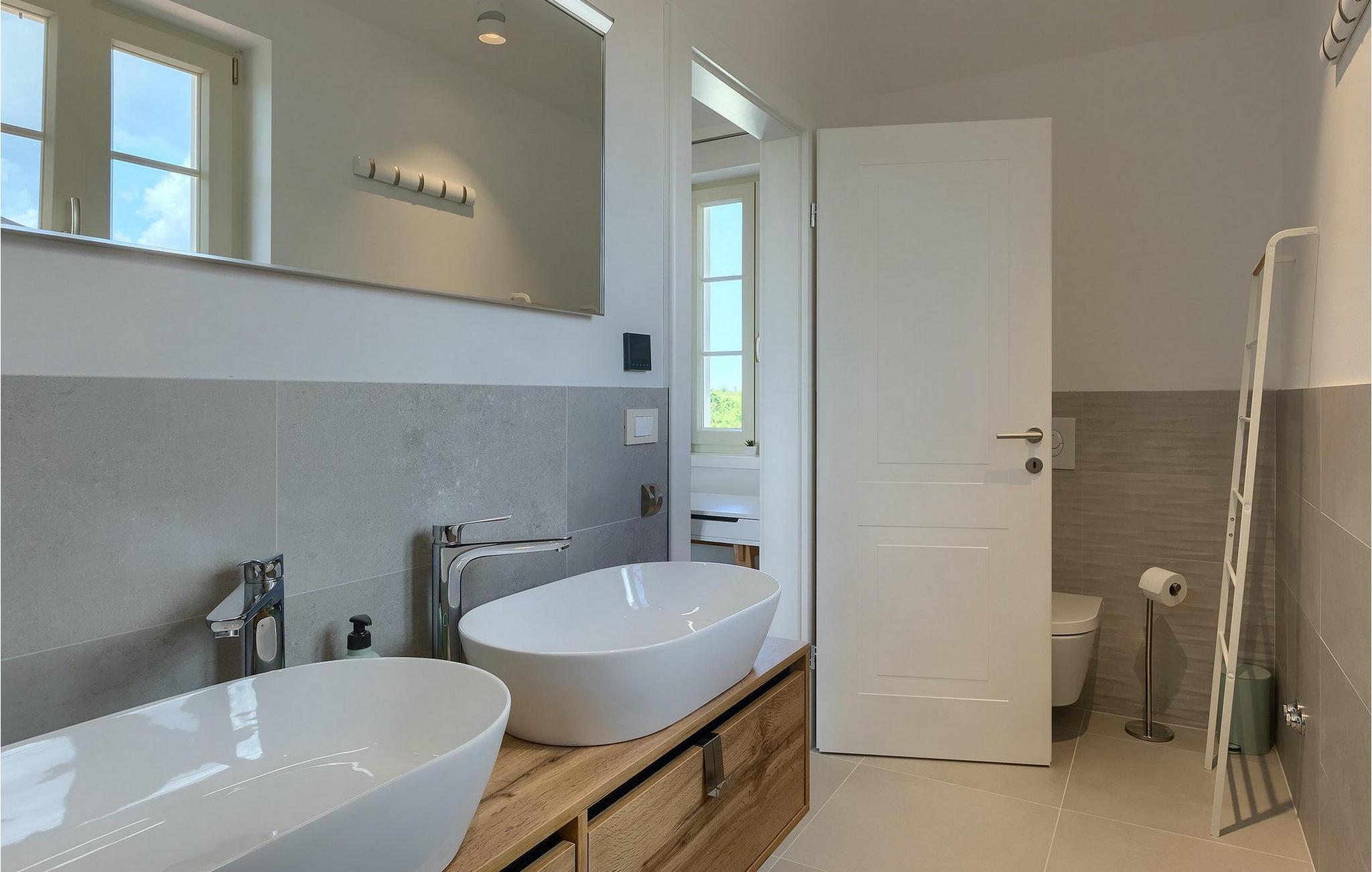 Wenn Sie die Eingangstür betreten, befindet sich vor Ihnen der wohnliche Treffpunkt der Villa - der einladende offene Wohn- und Essbereich mit Küche. Die Einrichtung überzeugt mit schlichter Eleganz. Vervollständigt wird diese Ebene durch zwei gemütliche Schlafzimmer, jeweils mit eigenem Bad und einer Glastür, die Sie zum wundervollen Außenbereich mit Panoramablick führt. Die restlichen 2 Schlafzimmer mit eigenem Bad befinden Sich im ersten Stock. Eines dieser Zimmer verfügt über einen eigenen Balkon, wo Sie eine traumhafte Aussicht auf die ländliche Umgebung erwartet, die Sie die Strapazen des Alltags vergessen lässt. Können Sie sich vorstellen dort den Tag mit einer Tasse Kaffee zu begrüßen?