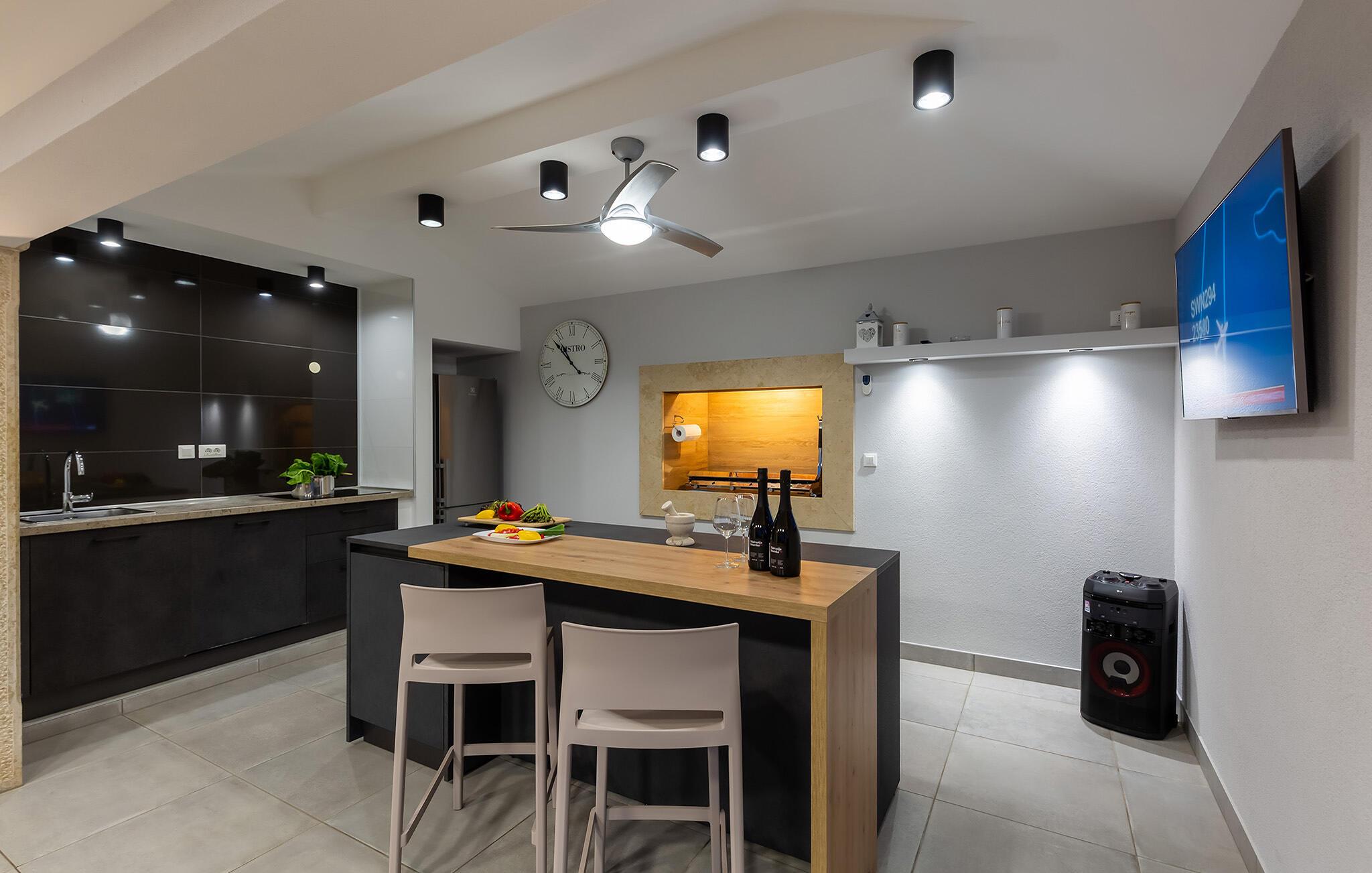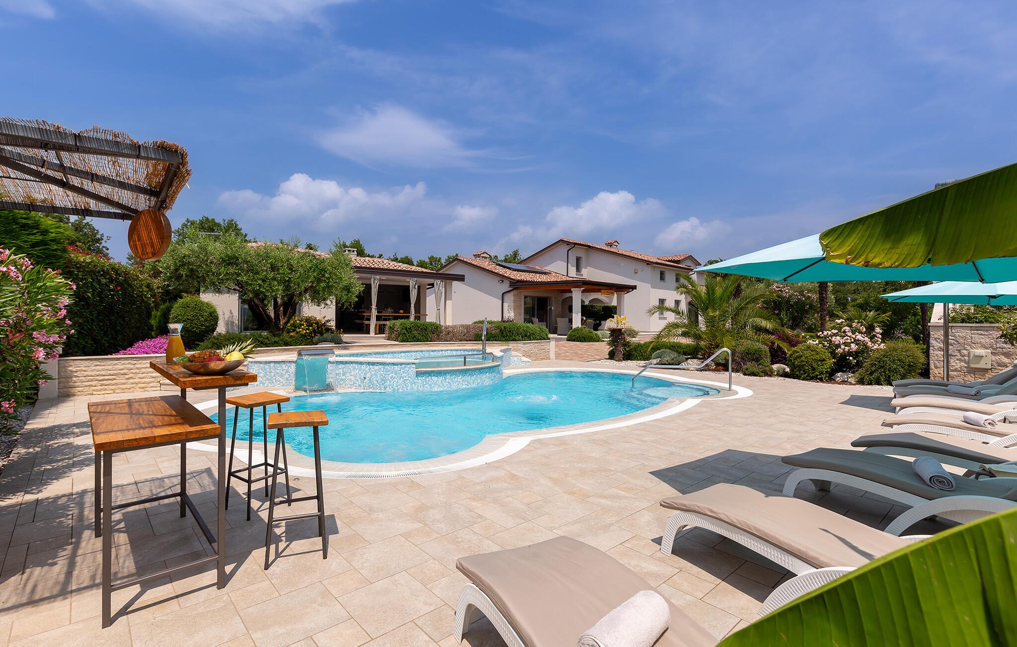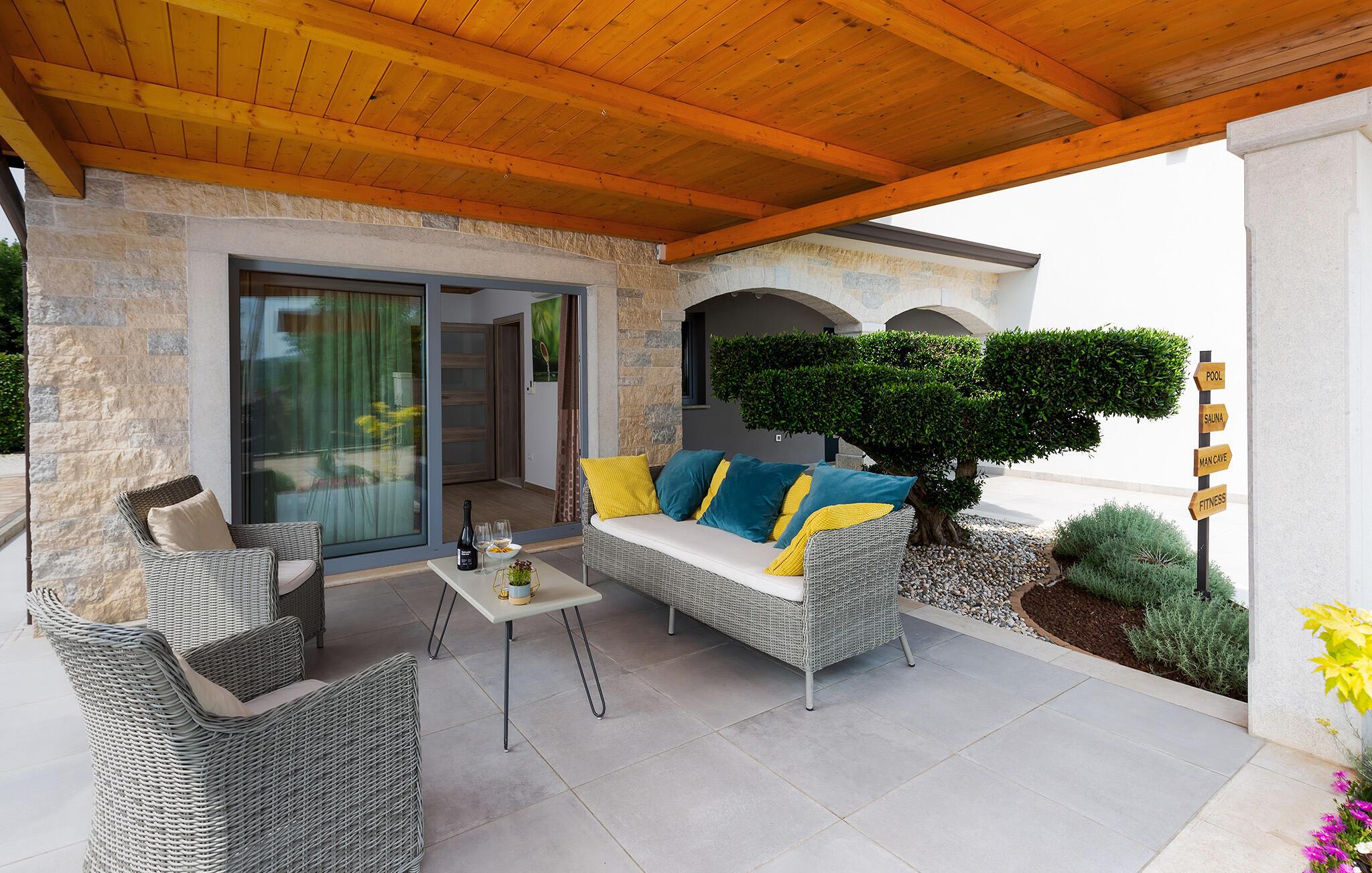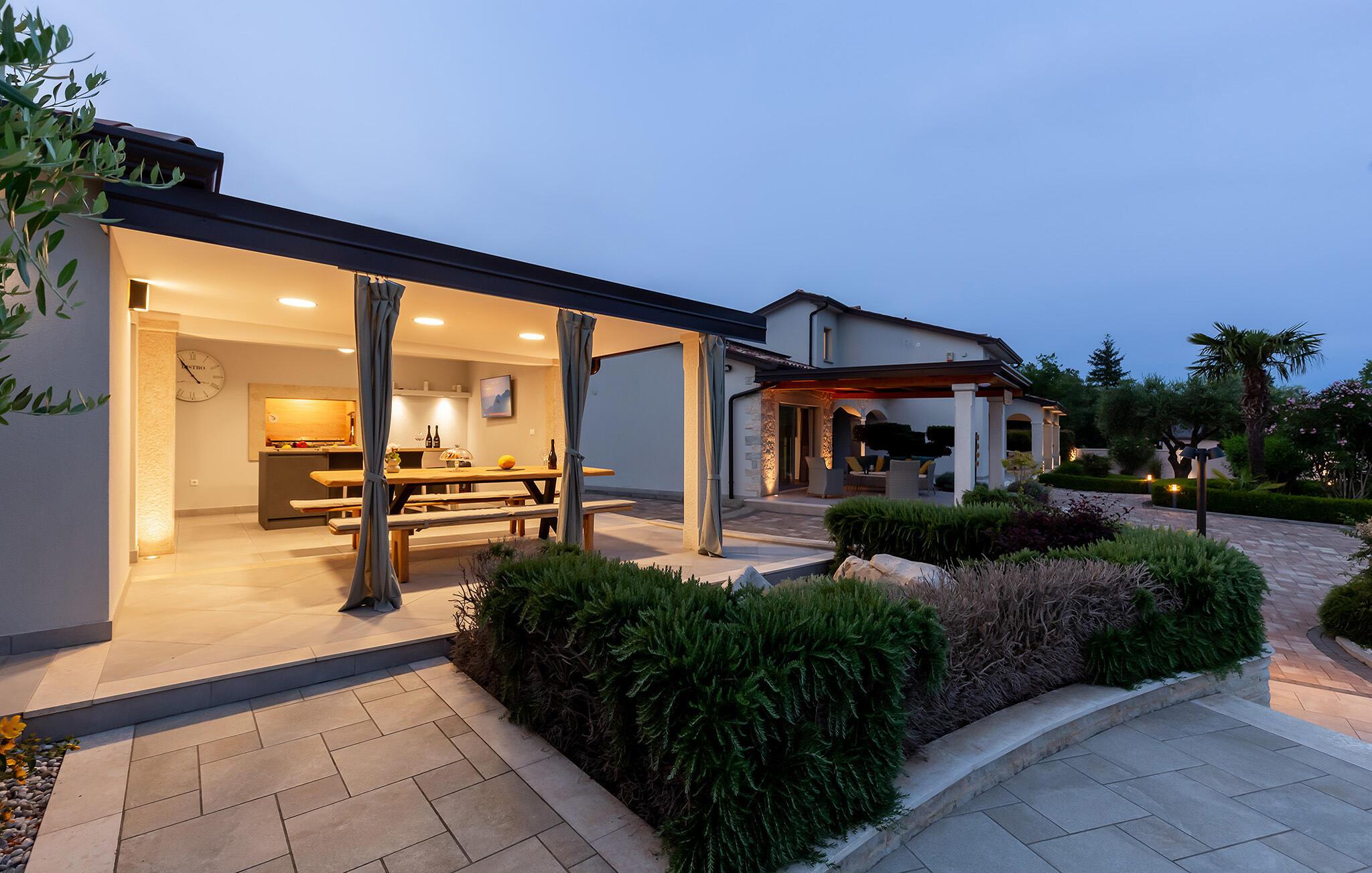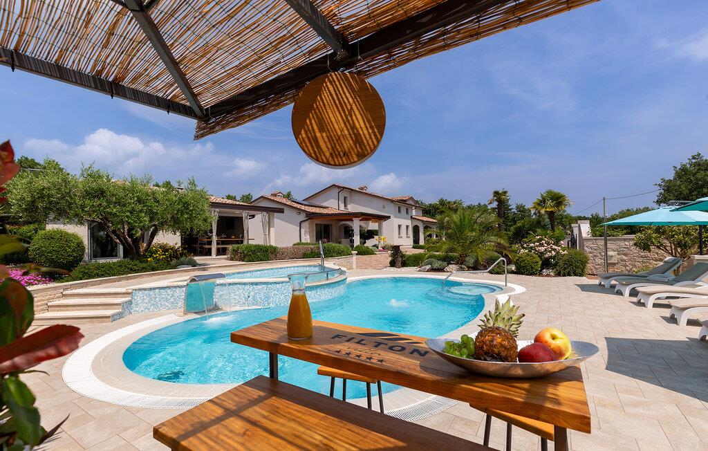Die Villa Filton ist ideal für Gäste, die sich weit weg von der Hektik des Alltags entspannen möchten. Diese Luxusvilla hat 5 Schlafzimmer und kann bis 12 Personen beherbergen. Im offenen Erdgeschoß befindet sich das gemütliche Wohnzimmer mit Kamin und einer großen Couch für die ganze Familie. Das Wohnzimmer ist mit der komplett ausgestatteten Küche mit Essbereich verbunden, wo Sie leckere Speisen zubereiten können. Auch im Erdgeschoß befinden sich 2 schöne Schlafzimmer, jeweils mit einem privaten Badezimmer. Zur Verfügung steht Ihnen auch der Wellnessbereich mit Sauna, sowie Fitnessgeräte für diejenigen, die auch im Urlaub gerne aktiv bleiben.