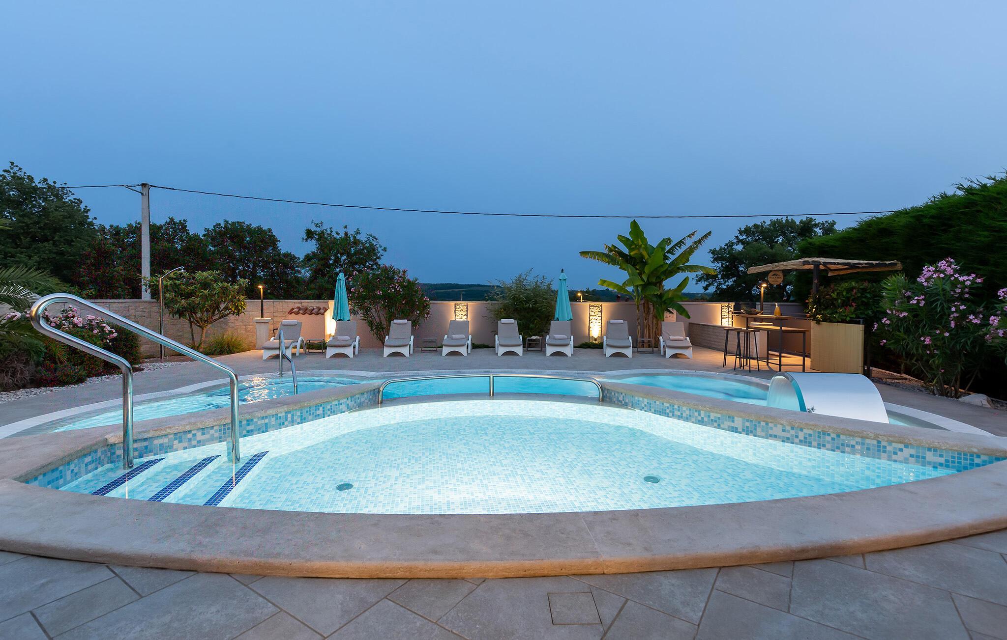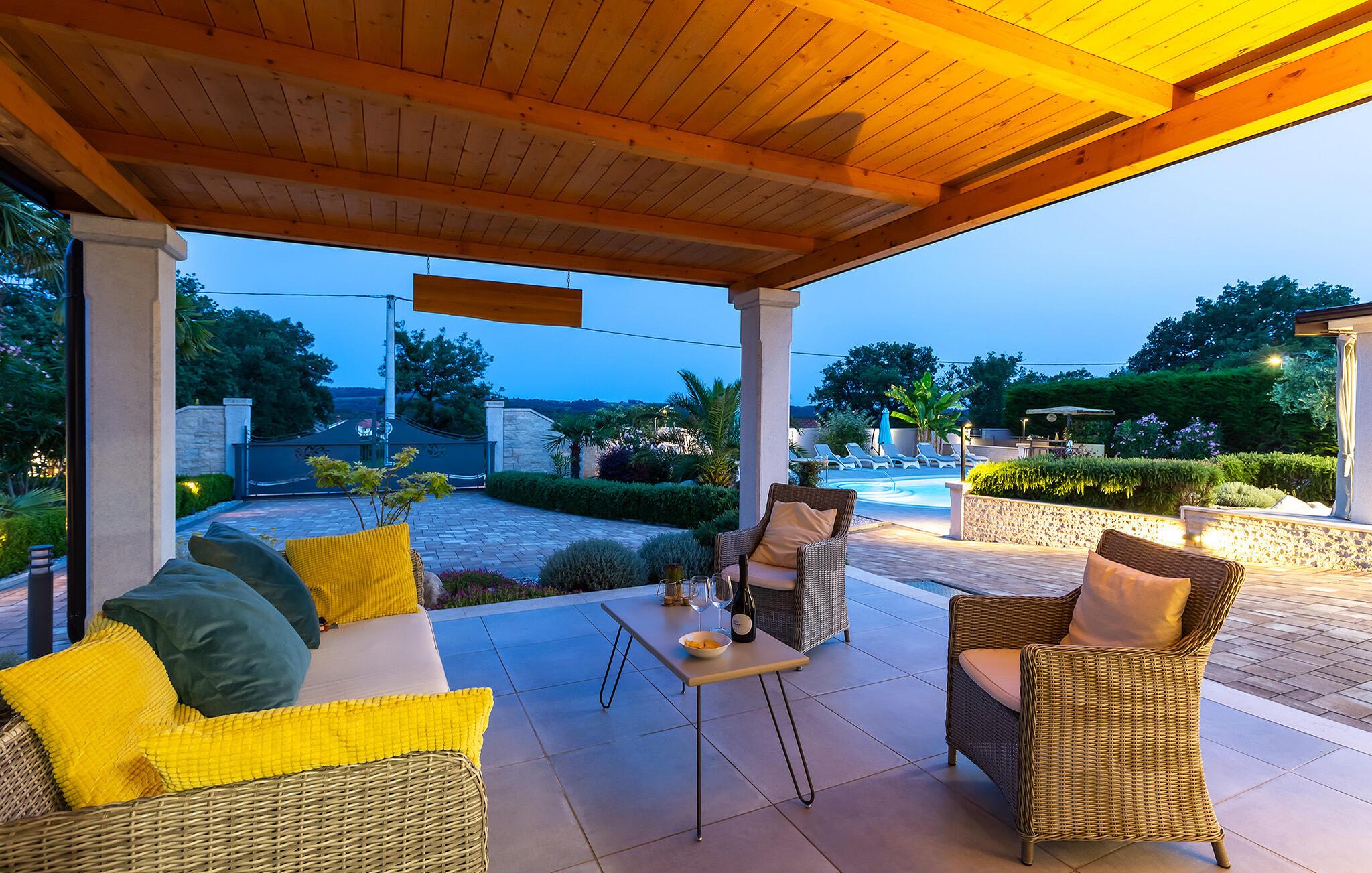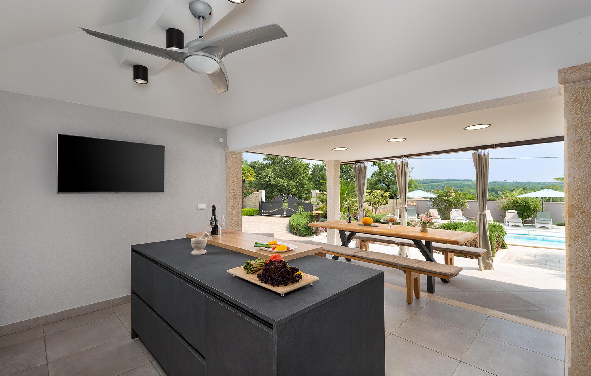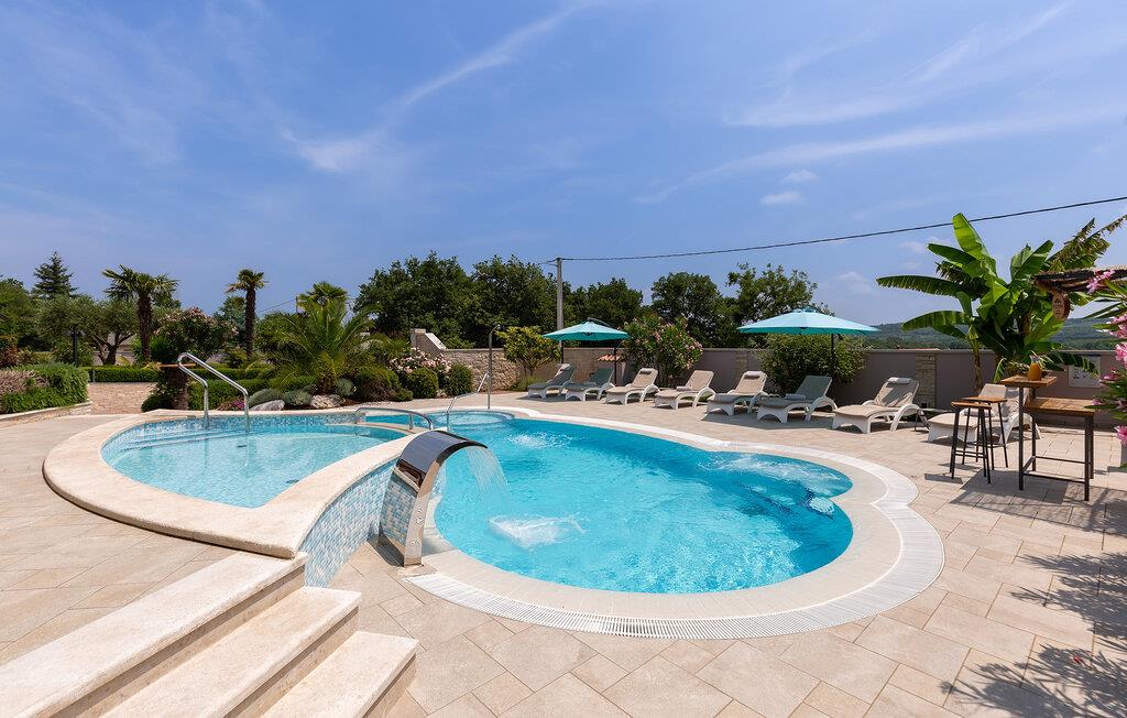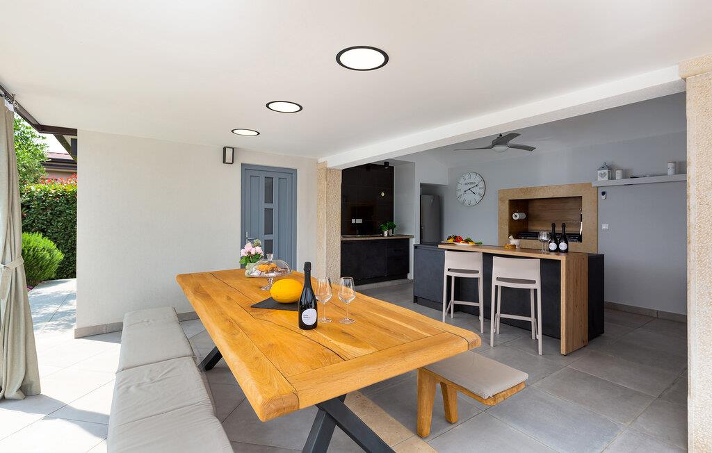 Im Außenbereich können Sie, im großen, sorgfältig gepflegten Garten die Sonne am einladenden Pool genießen, der auch über einen entspannenden Wasserfallvorhang verfügt. In der Sommerküche können Sie al fresco essen, während Sie die Ruhe und Stille des Dorfes genießen.Wunderschöne Villa Filton befindet sich im Dorf Markovici, nicht weit weg von der Stadt Vizinada. Vizinada ist auch zu Fuß oder mit dem Fahrrad über die “Parenzana”, die wohl schönsten Fahrradstrecke Istriens, erreichbar. Sie werden Vizinada kaum in den Reisebüchern finden, also legen Sie Wert darauf, es für sich zu entdecken. Zwischen dem Hügel, auf dem Vizinada liegt, und den Bergen im Hintergrund liegt die alte mittelalterliche Stadt Motovun, deren Erscheinungsbild sich in 500 Jahren kaum geändert hat. Die Stadt ist natürlich geblieben, nicht sorgfältig übermalt um neu auszusehen. Bei der Besichtigung dieser kleinen Stadt genießen Sie die wunderschöne Aussicht von dem Hügel über das Mirna-Tal und die blauen und grünen Farben Istriens. Die atemberaubende Küste Istriens und die touristischen Zentren Porec, Novigrad und Rovinj sind leicht erreichbar. In der Nähe der Villa können Sie Ihre Golffähigkeiten testen: Ein Training 5-Loch-Kurs ist im Tal, während ein 18-Loch 5-Sterne-Kurs in Savudrija ist. Auto ist empfohlen.