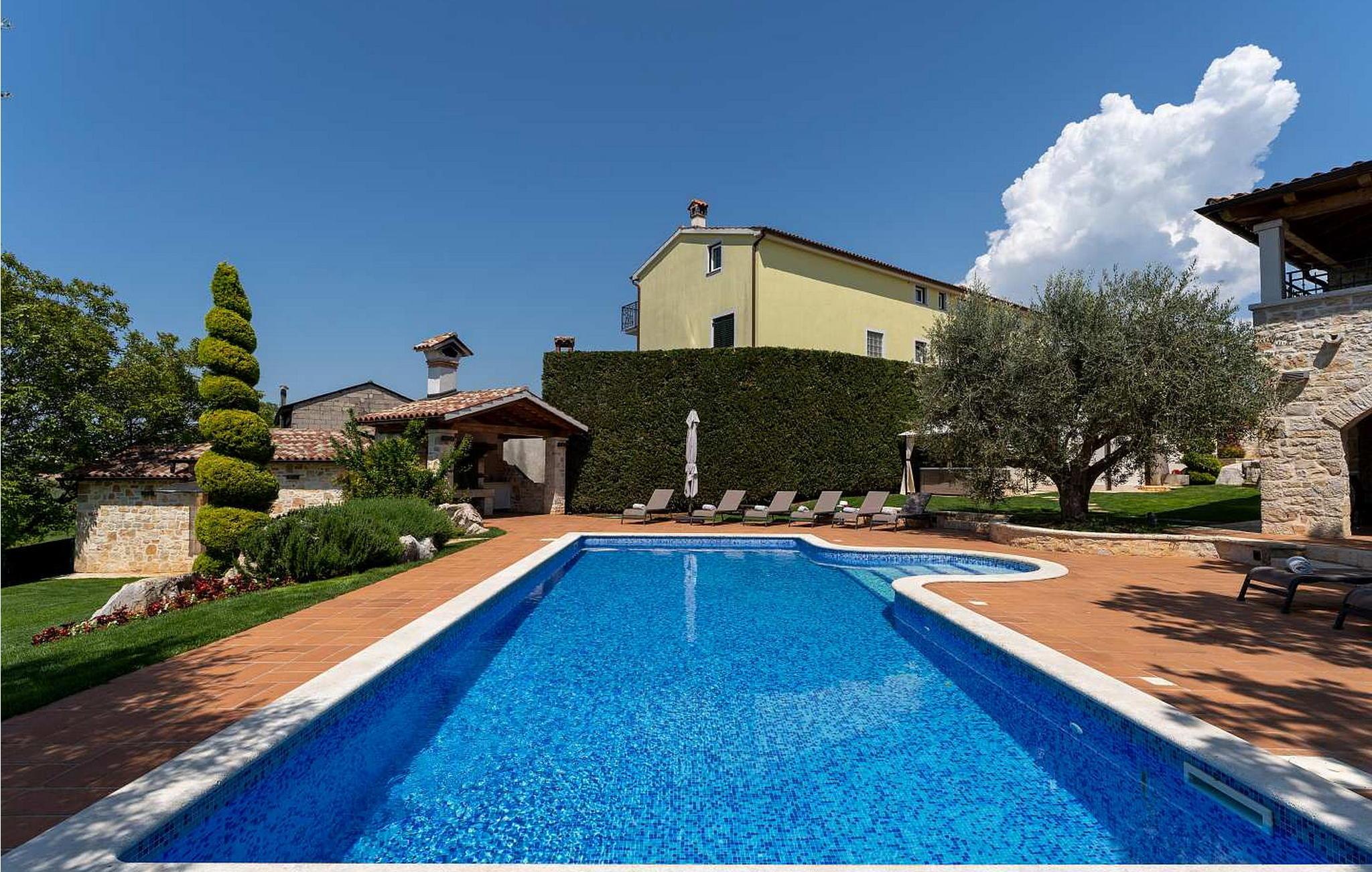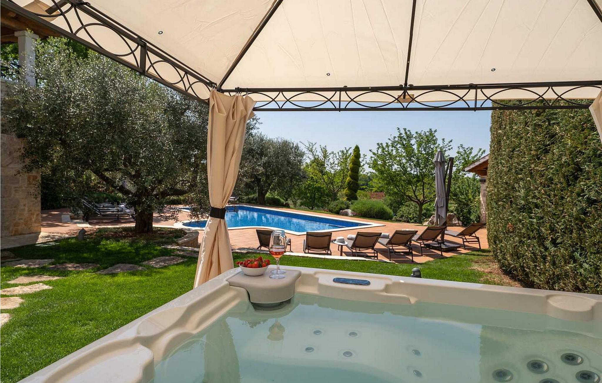 Dieses elegante und komfortable Anwesen in der Gegend von Vizinada bietet einen luxuriösen Rückzugsort. Dieses Anwesen auf einem eingezäunten Grundstück gehört einer renommierten Winzerfamilie, die für die Herstellung einiger der besten Weine Kroatiens bekannt ist. Das Anwesen umfasst zwei wunderschön renovierte Steinhäuser, einen Swimmingpool mit Whirlpool, einen multifunktionalen Sportplatz und ausreichend Parkplätze.