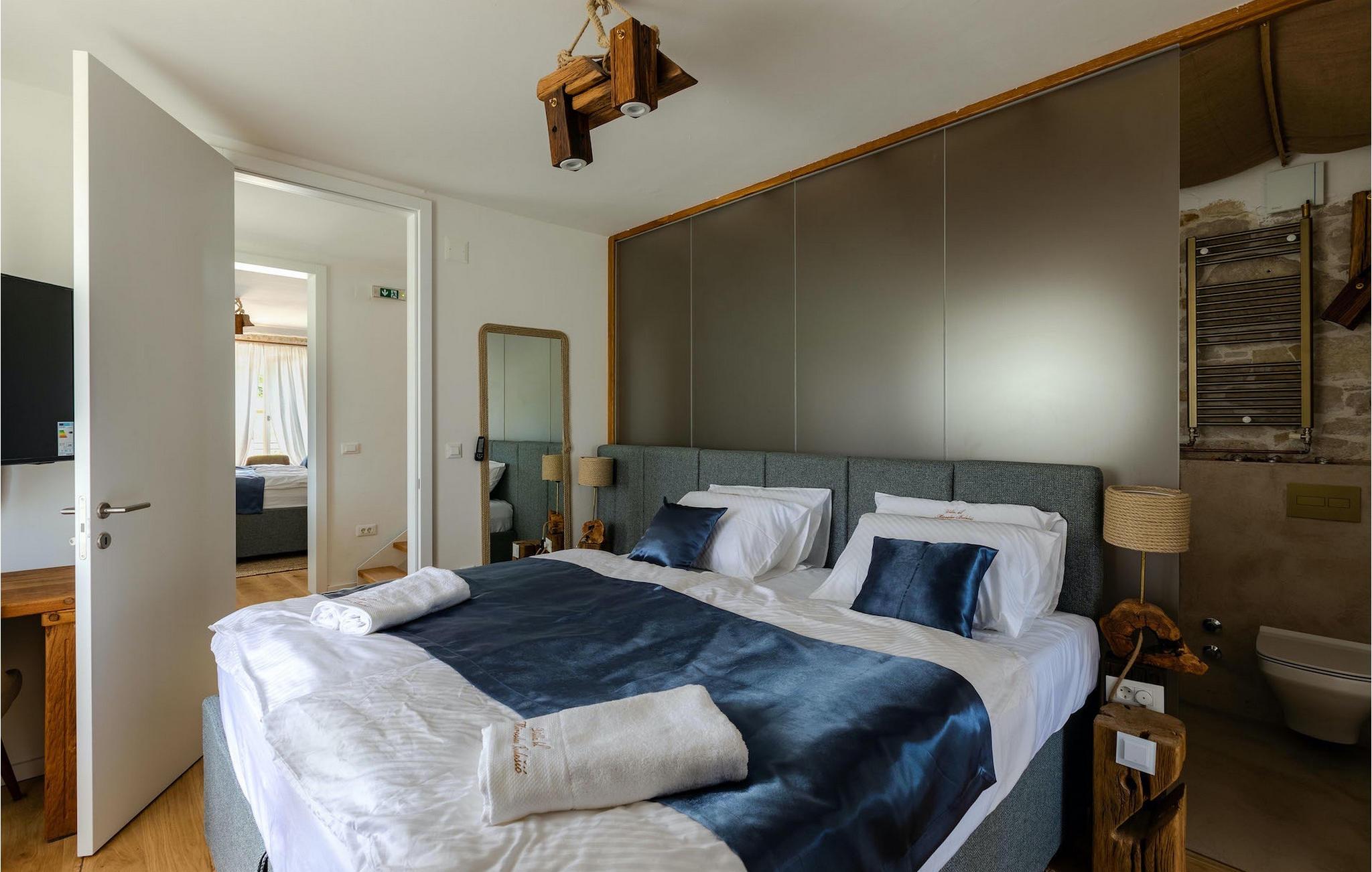 Die Villa Blazeni Miroslav Bulesic befindet sich in Istrien im kleinen Dorf Zudetici, nur eine kurze Autofahrt von der Küstendstadt Porec entfernt. Im gepflegtem Grundstück befindet sich ein privater Außenpool der Sie an heißen Sommertagen zur Erfrischung einlädt. Entspannen Sie auf den Liegen welche sich rund um den Pool befinden. Währen den kälteren Tagen kann der Pool beheizt werden. Ein Holzkohlegrill steht Ihnen zur Verfügung um leckere Gerichte vorzubereiten. Die Vila kann bis zu 8 Personen in 4 Schlafzimmer beherbergen. Das außergewöhnliche und stilvolle Interieur wird Ihnen sofort ins Auge fallen. Das Erdgeschoss besteht aus einer voll ausgestatteten Küche, einem Essbereich und einem Wohnzimmer mit Kamin welches eine gemütliche Atmosphäre bietet. Vom Wohnzimmer aus haben Sie direkten Zugang zur überdachten Terrasse. Dies ist der perfekte Platz um Ihren Morgenkaffee zu genießen. Sport-Liebhaber können sich auf ein Fitnessraum freuen. Auf der ersten Etage befinden sich zwei komfortable Schlafzimmer. Auf der zweiten Etage befinden sich ebenso zwei weitere Schlafzimmer. Alle Schlafzimmer verfügen über ein eigenes Badezimmer, TV und sind klimatisiert. Ein privater Parkplatz für bis zu 3 Autos ist vorhanden. Die Villa ist komplett klimatisiert und bietet Internetzugang. Buchen Sie die Villa Blazeni Miroslav Bulesic und entdecken Sie die Schönheiten Istriens!Von der Lage her ist die Villa Blazeni Miroslav Bulesic ein hervorragender Ausgangspunkt, um die Schätze Istriens zu entdecken. Istrien bietet eine Vielzahl an schönen Kiesstränden und versteckten Buchten mit kristallklarem Wasser. Eine kurze Autofahrt entfernt liegt die Küstenstadt Porec. Dort finden Sie ein ausgezeichnetes kulinarisches Angebot, eine Vielzahl an Restaurants, Cafés und Geschäften. Wir empfehlen einen Besuch der Stadt Umag. Die Gegend um die Stadt ist berühmt für die Wein- und Olivenölproduktion. Hier finden zahlreiche Sportveranstaltungen statt, wie zum Beispiel die ATP Croatia Open. Umag und seine Umgebung sind bekannt für die Wein- und Olivenölproduktion. Hier finden zahlreiche Sportveranstaltungen statt, wie zum Beispiel die ATP Croatia Open. Weitere Tipps finden Sie in unserem MyIstria-Guide.