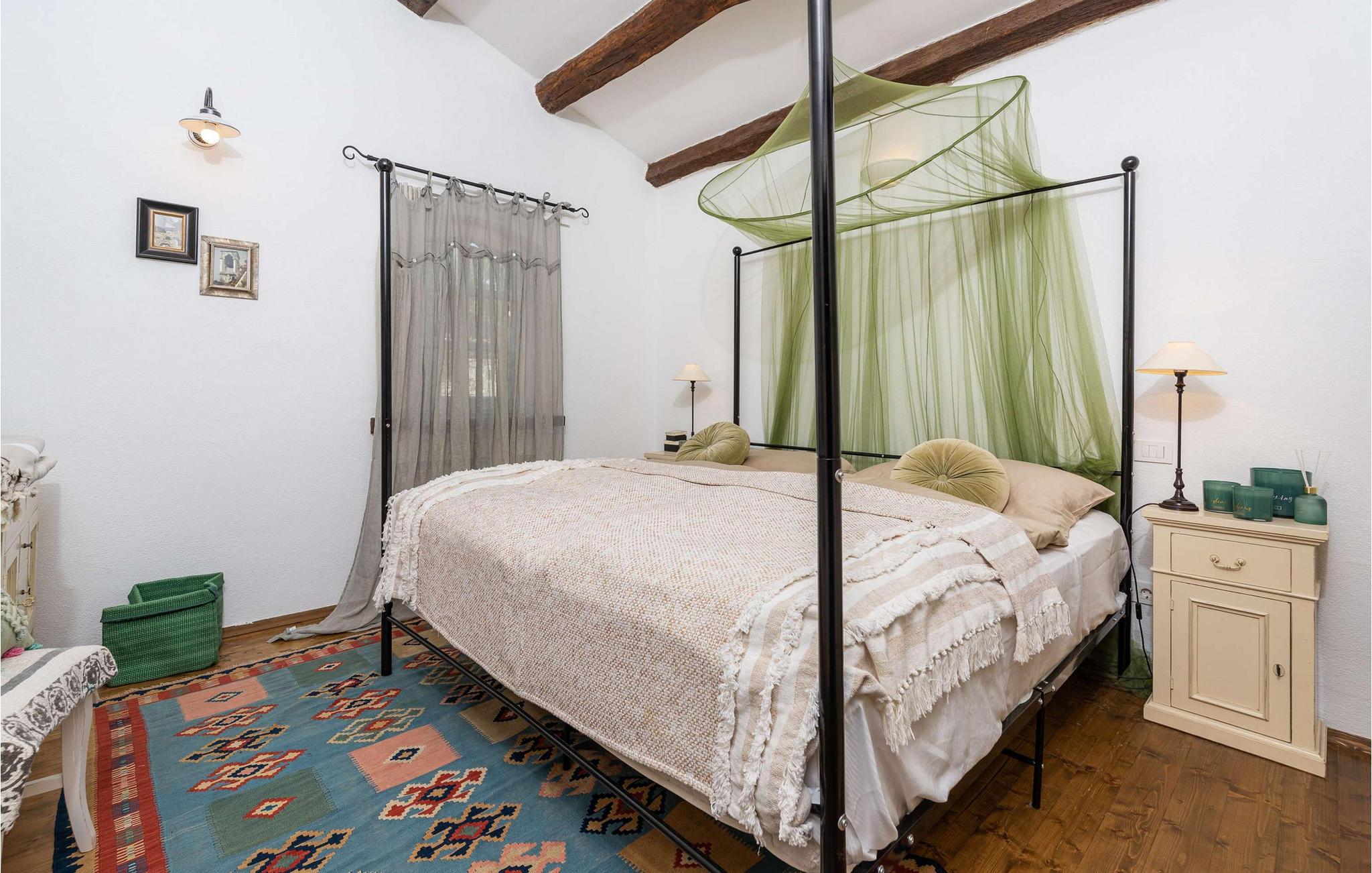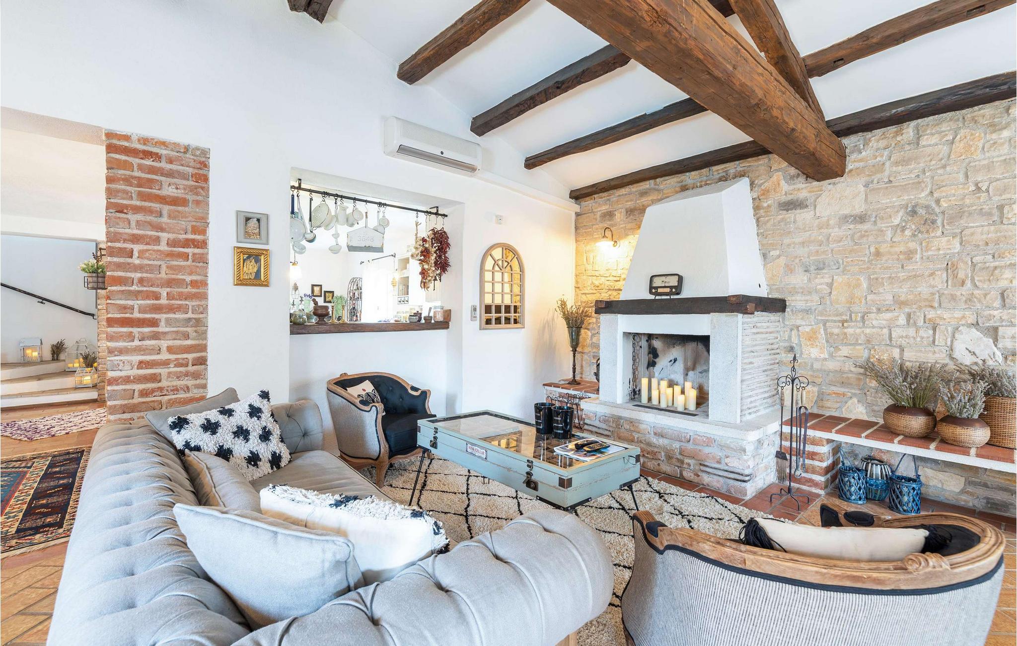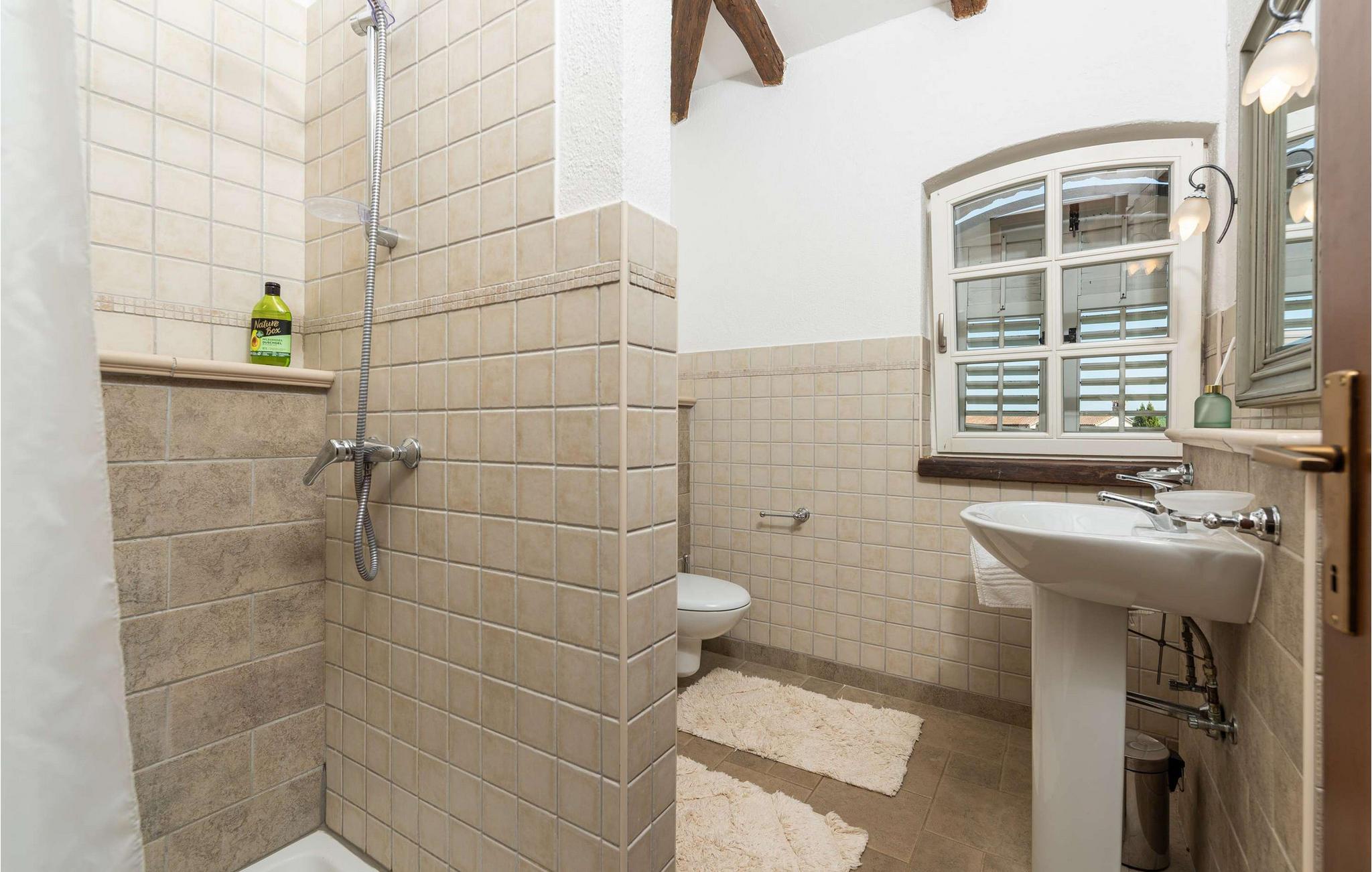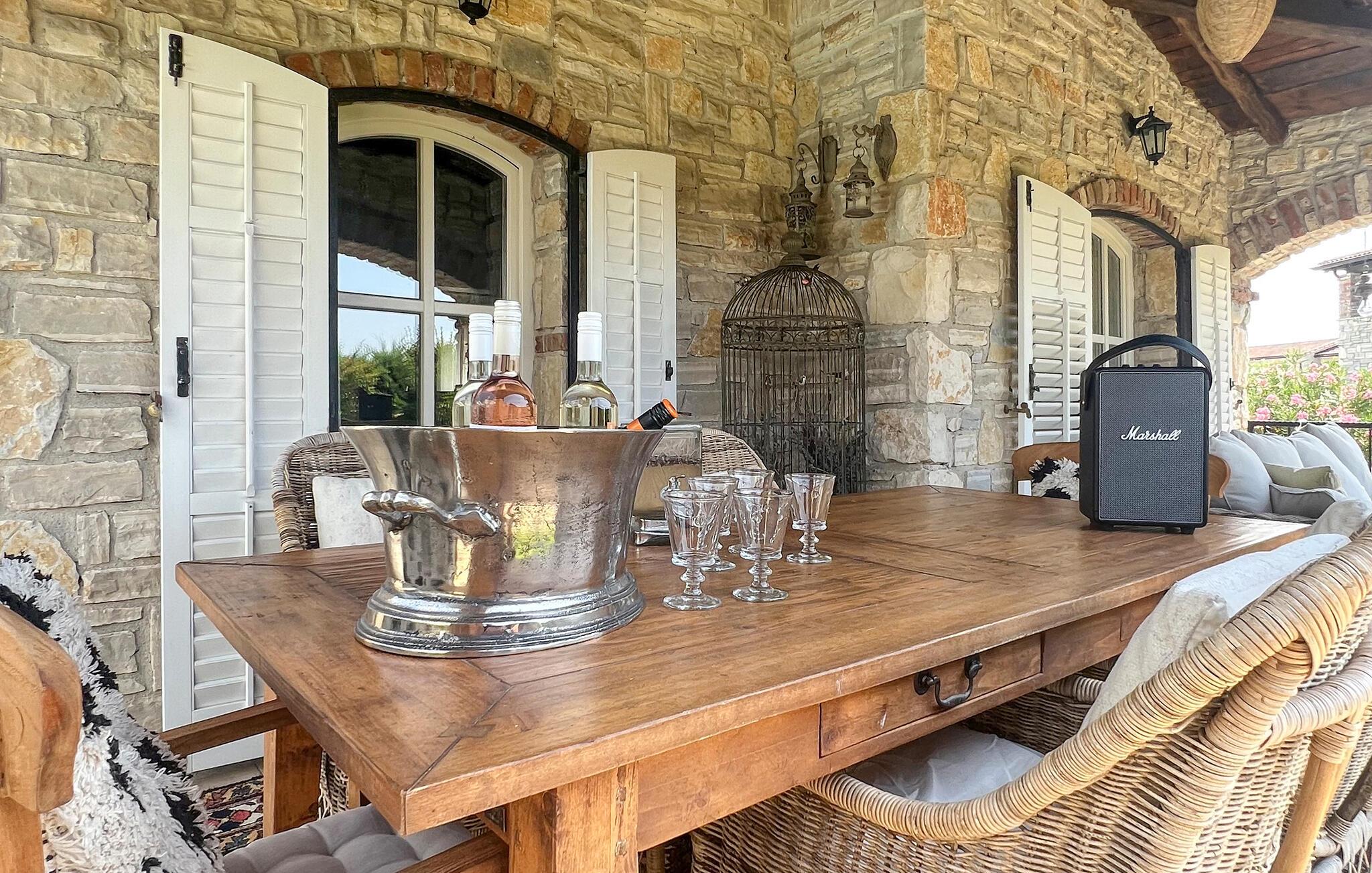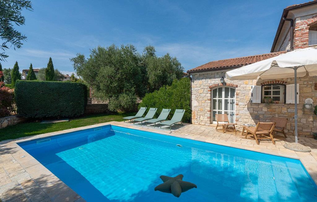 Die Villa Novel befindet sich im Dorf Barat, das nur 3 km von der Stadt Višnjan entfernt ist. Dieser Ort ist die perfekte Wahl für alle Liebhaber der Tradition und eines reichhaltigen touristischen Programms, das jeden Gast begeistern wird. Villa Novel wird Ihnen mehr bieten, als Sie brauchen, und zusammen mit Ihrer Familie oder Freunden werden Sie einen perfekten Jahresurlaub genießen! Die Villa Novel wurde 2022 im rustikalen Baustil renoviert und bietet den Gästen 165 m2 Wohnfläche, während die Gesamtfläche des Anwesens 750 m2 beträgt. Es ist voll klimatisiert und bietet Platz für maximal 9, optimalerweise 8 Personen. Den Gästen stehen das Erdgeschoss und das Obergeschoss zur Verfügung. Im Erdgeschoss sind Sie in zwei Schlafzimmern mit Doppelbetten komfortabel untergebracht, außerdem gibt es zwei Badezimmer mit Badewanne. Die rustikale und ausgestattete Küche wird Sie mit ihrem Erscheinungsbild begeistern und Sie bereiten dort gerne Mahlzeiten für die ganze Familie zu. Neben der Küche befinden sich das Esszimmer und das Wohnzimmer, die mit einem Sofa, zwei Sesseln, einem Couchtisch, einem Fernseher und einem romantischen Kamin ausgestattet sind. Im Obergeschoss befinden sich zwei weitere Schlafzimmer mit Doppelbetten und zwei Badezimmer mit Duschkabine. Von der gleichen Etage aus hat die Villa Novel einen Blick auf die Adria. Auf der Außenterrasse befindet sich ein Swimmingpool mit einer Größe von 32 m2 und einer Tiefe von 1,8 Metern. Daneben können Sie sich auf 9 Sonnenliegen sonnen, Ihr Lieblingsbuch lesen oder einfach die Sonne genießen. Auf der Terrasse gibt es außerdem einen überdachten Esstisch im Freien, einen Holzkohle- oder Holzgrill im Freien und Sitzgelegenheiten im Freien. Zu den weiteren Einrichtungen, die Ihnen während Ihres Aufenthalts nützlich sein werden, gehören eine Waschmaschine und ein Trockner. Darüber hinaus verfügt die Villa über eine separate Toilette. Sollten Kinder mit in den Urlaub kommen, stehen ein Futtertrog und ein Kinderbett zur Verfügung. Der Innenhof der Villa ist umzäunt, sodass Kinder unbeschwert im wunderschön angelegten Garten spielen können. Es stehen Ihnen 3 private Parkplätze zur Verfügung, zwei weitere befinden sich im Außenbereich. Višnjan ist eine der schönsten istrischen Städte mit besonderem Charme und berühmt für sein Observatorium, das Sie besichtigen können. Touristenzentren – Porec und Novigrad – sind etwa 20 km entfernt, und in der Nähe gibt es zahlreiche ausgezeichnete Weingüter und Restaurants für die anspruchsvollsten Feinschmecker, die Spezialitäten mit Trüffeln und anderen istrischen Köstlichkeiten genießen können. Višnjan wird Sie mit seinen romantischen Abenden im reichhaltigen Sommerangebot an Musikkonzerten, Filmvorführungen, Festivals und Messen begeistern. Gönnen Sie sich einen Urlaub in der Villa Novel und genießen Sie ein wunderschönes Steinhaus, märchenhafte Natur und zahlreiche Strände mit einem reichhaltigen touristischen Angebot. Willkommen!