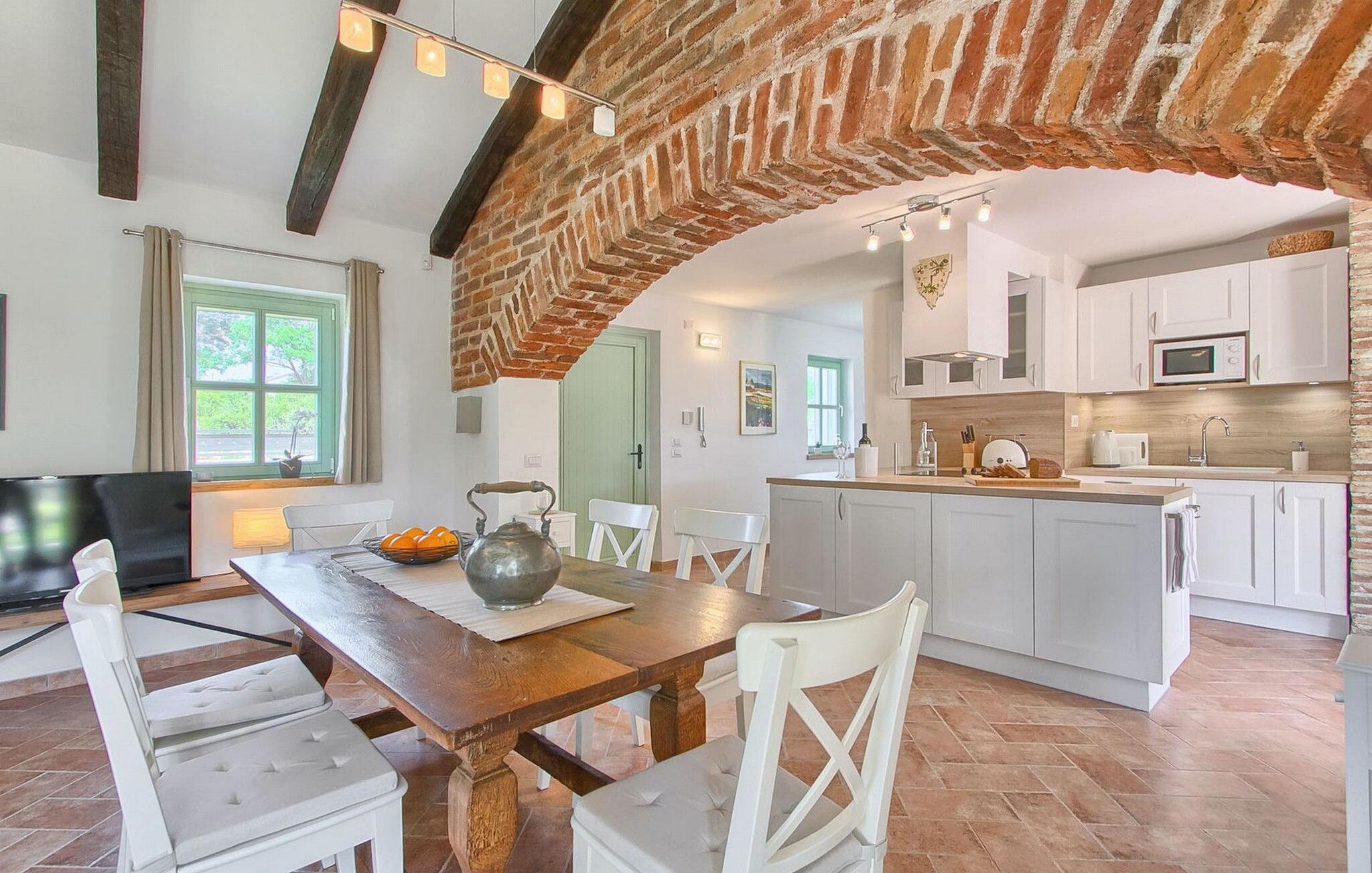 Villa Maslina, die im istrischen Stil gebaut wurde, ist das perfekte Ferienhaus für eine kleinere Gruppe oder eine Familie, die einen Urlaub weit weg von der Hektik der Großstadt verbringen will. Dank ihrer tollen Lage ist jeder Teil Istriens nur eine kurze Autofahrt von dieser malerischen, istrischen Steinvilla entfernt. Das Highlight der charmanten Villa Maslina ist auf jeden Fall der moderne private Pool im komplett umzäunten Außenbereich.