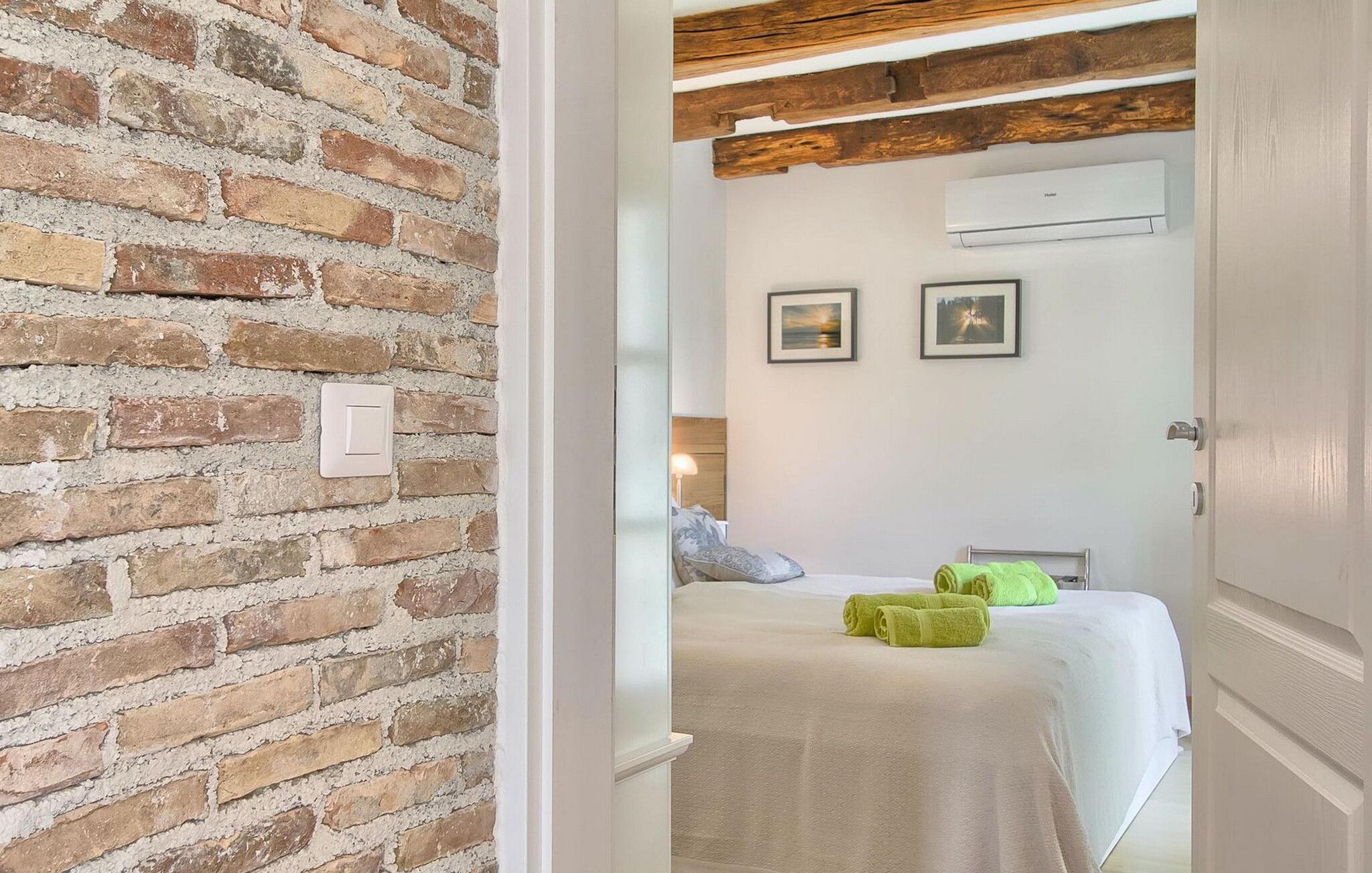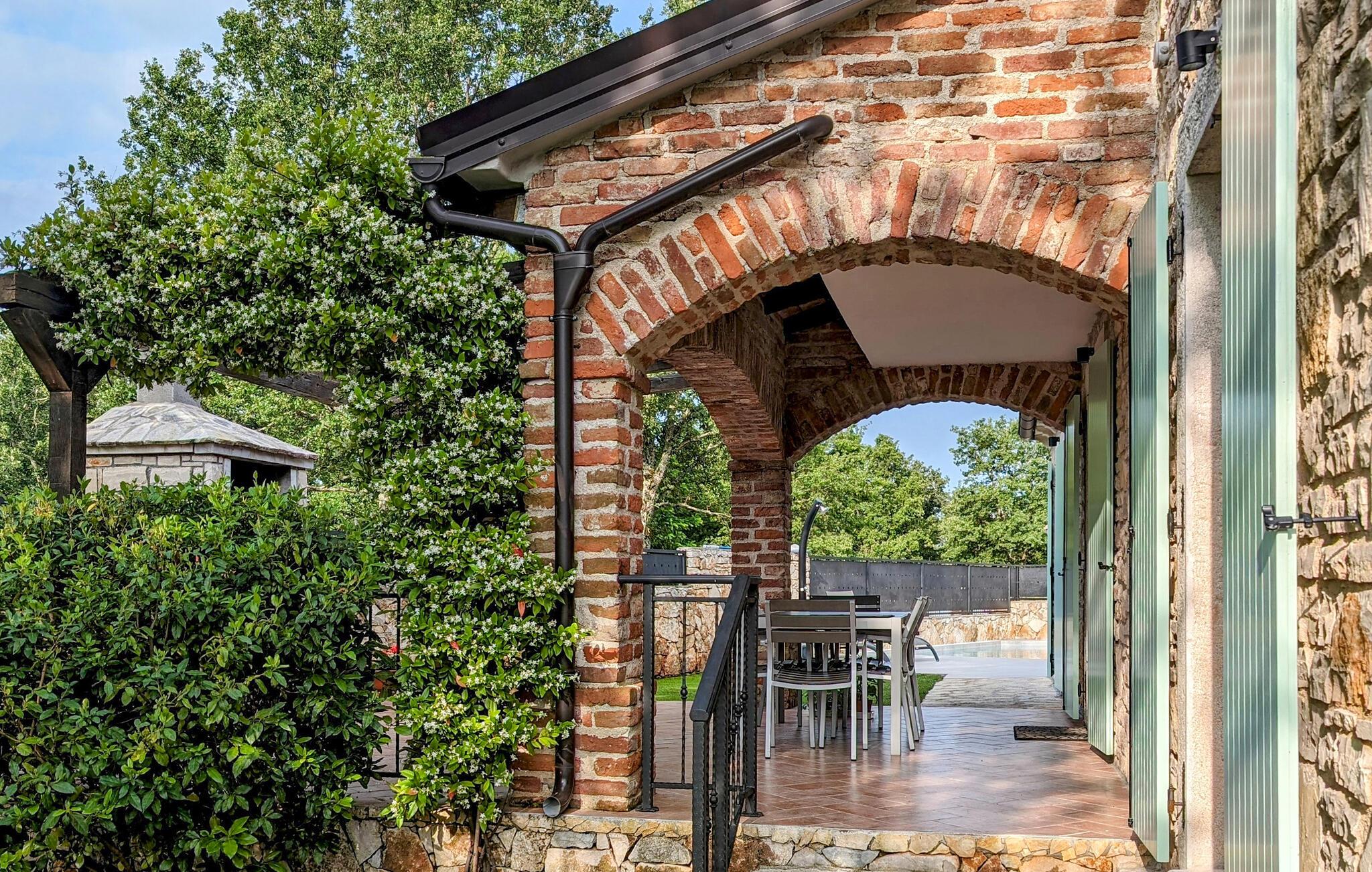 Das Exterieur der Villa ist genauso schön wie ihr Interieur. Es wird von einem Garten mit Olivenbäumen und einem modernen privaten Pool dominiert, in dem Sie sich entspannen, einen kühlen Drink schlürfen und Ihre Füße im erfrischenden Wasser kühlen können. Der Pool verfügt über einen Tiefbereich und einen Flachbereich, wo sich Gäste an warmen Sommertagen abkühlen können. Auf der Terrasse finden Sie auch einen Essbereich im Freien und einen Außenkamin/Grill. Die Villa bietet ihren Gästen einen Privatparkplatz für 2 Autos.