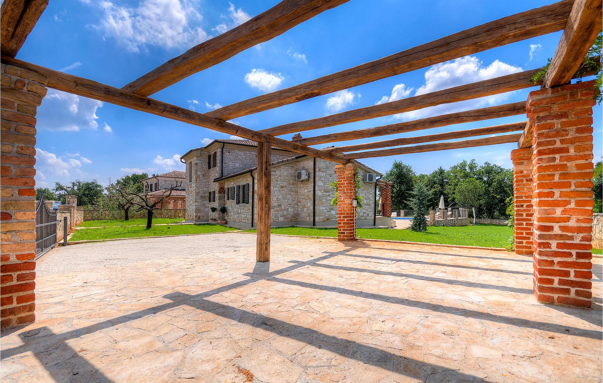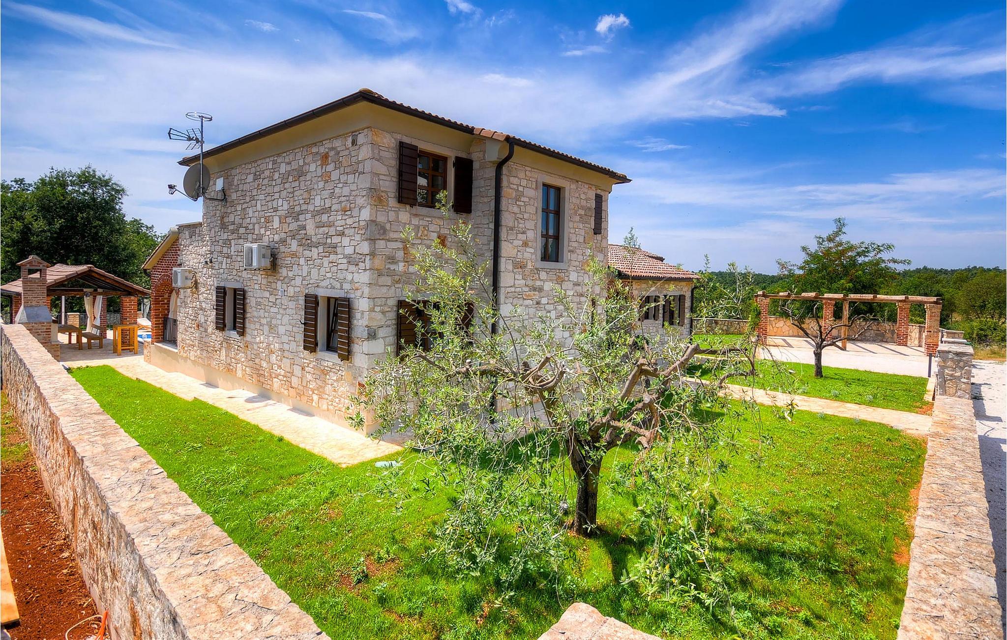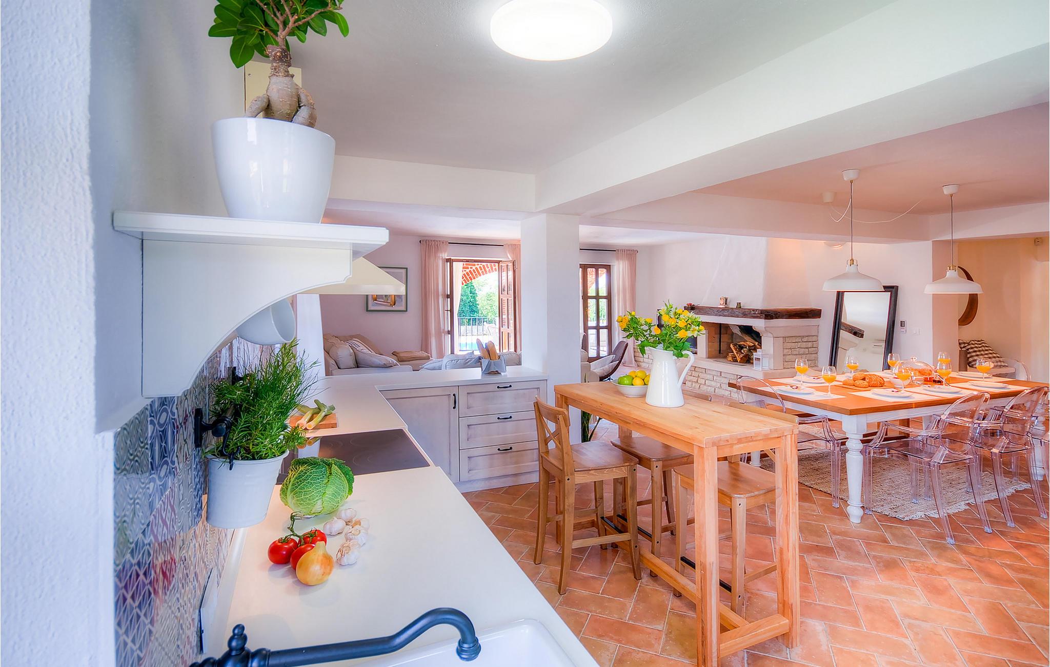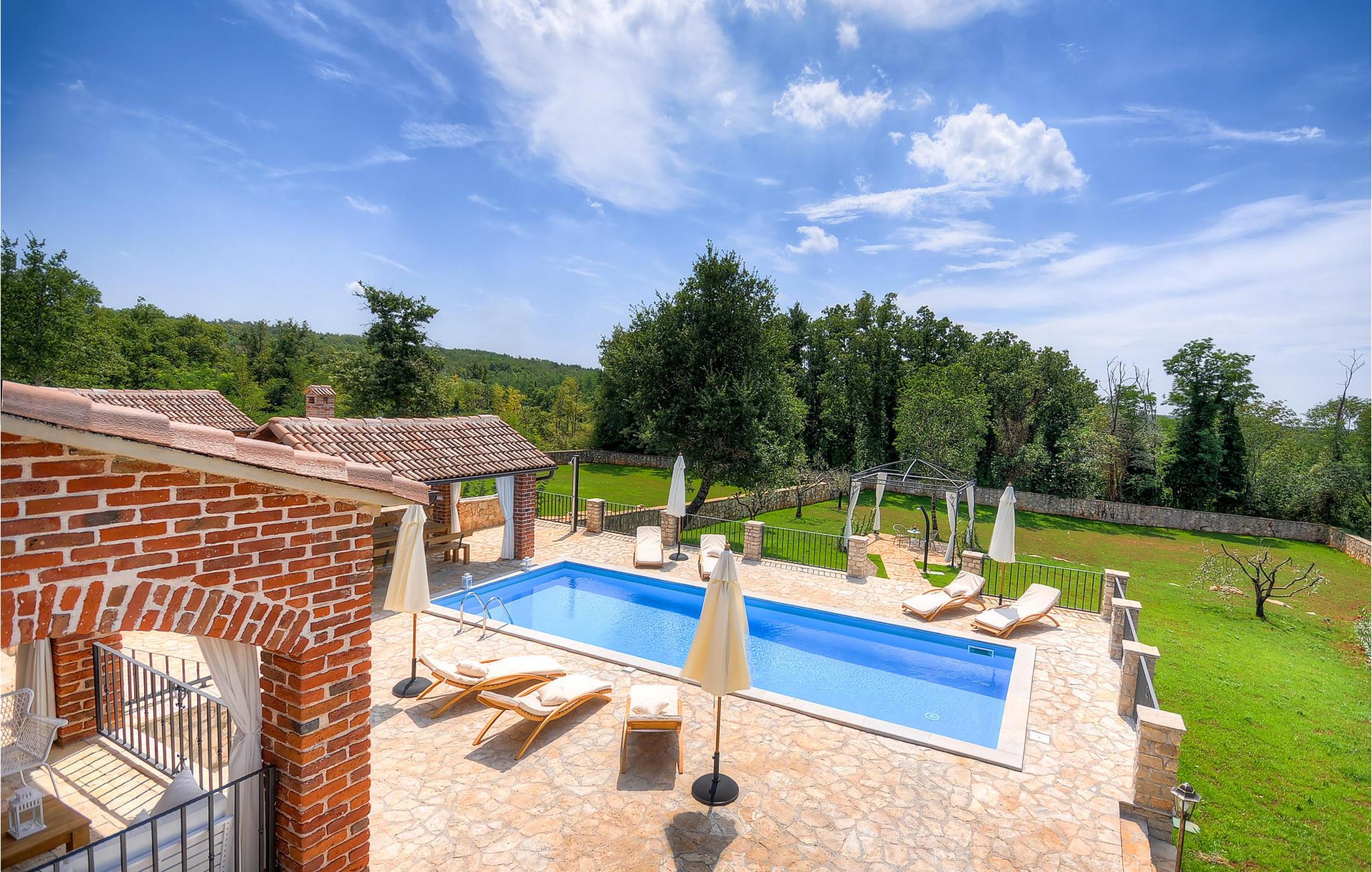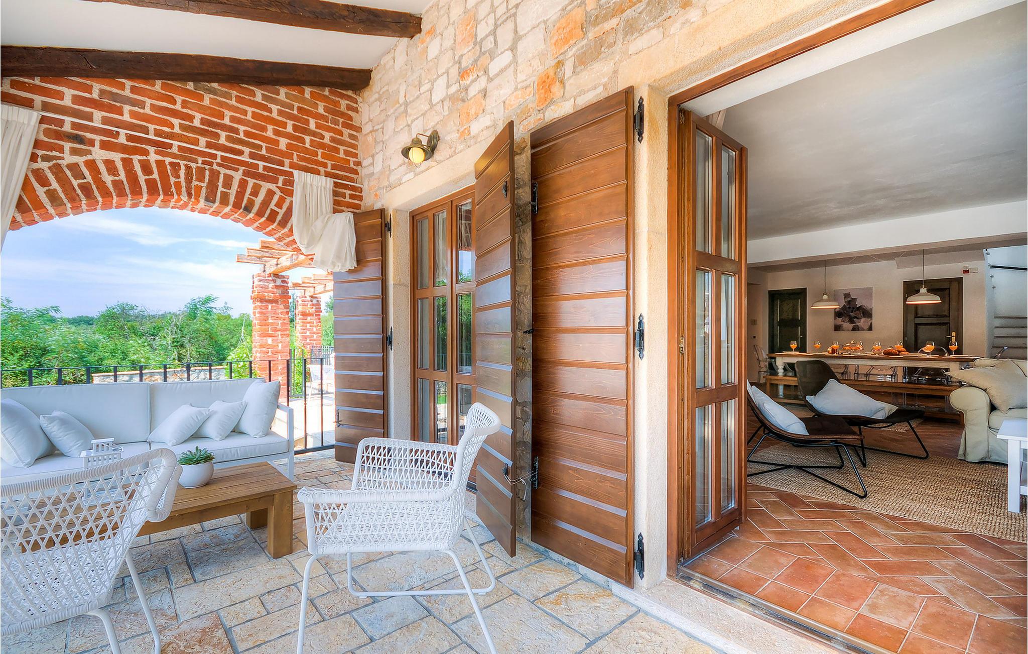 Die wunderschöne Villa Oxalis, benannt nach der Blumenart, bietet einen angenehmen Urlaub für bis zu 8 Personen. Im Erdgeschoss befindet sich der offen konzipierte Wohn- und Essbereich sowie die voll ausgestattete Küche. Die gesamte rustikale Einrichtung mit Kamin im Wohnzimmer verleiht dem offenen Raum eine gemütliche und warme Atmosphäre, in der man sich nur wohl fühlen kann. Zwei bequeme Schlafzimmer, ein Badezimmer und eine Toilette befinden sich ebenfalls auf dieser Etage. Eine Treppe führt Sie zu den weiteren zwei Schlafzimmern, beide mit eigenem Badezimmer. In der gesamten Villa werden Ihnen die liebevollen Details auffallen. Der Außenbereich umfasst einen komplett eingezäunten grünen Garten. Aus dem Pool können Sie den herrlichen Ausblick in die Natur genießen und danach rund um den Pool auf den Liegen entspannen. Auf der Terrasse befindet sich der Essbereich mit Holzkohlgrill, der dazu einlädt, leckere Gerichte zuzubereiten. Die Villa Oxalis ist klimatisiert und verfügt über Internetzugang sowie private Parkplätze für 4 Autos. Sie bietet einfach alles für einen erholsamen Urlaub in Istrien. Višnjan ist ein kleiner Ort in Istrien, 13 Kilometer östlich von Porec entfernt. Im pittoresken Višnjan gibt es ein weltberühmtes astronomisches Observatorium, welches langjährige internationale Sommerprogramme für Jugendliche im Bereich Astronomie, Archäologie, Meeresbiologie und Ähnliches bietet. Višnjan ist auch bekannt für seinen Olivenanbau und auch einer der letzten Orte des istrischen autochthonen Rindes Boškarin.