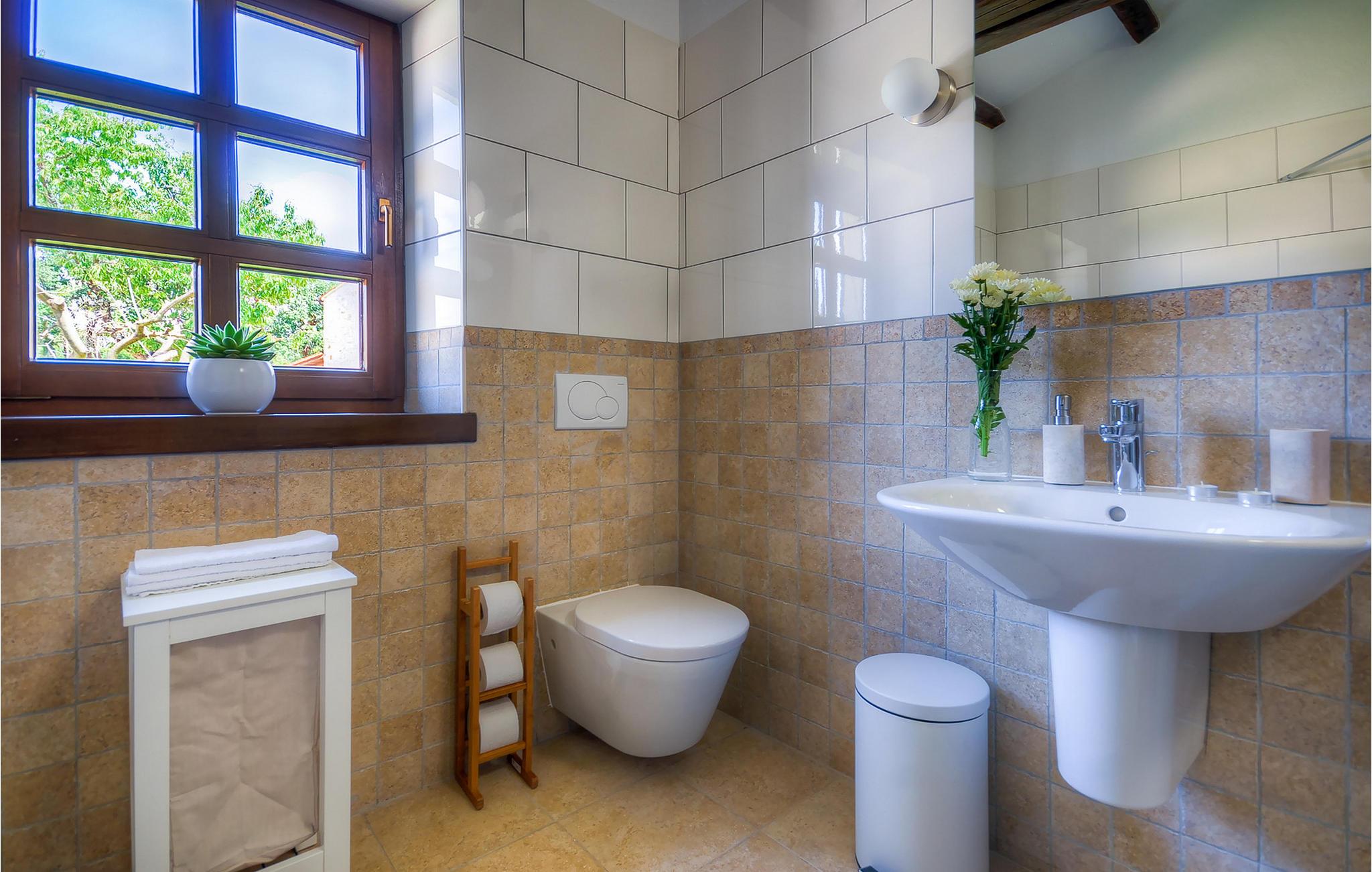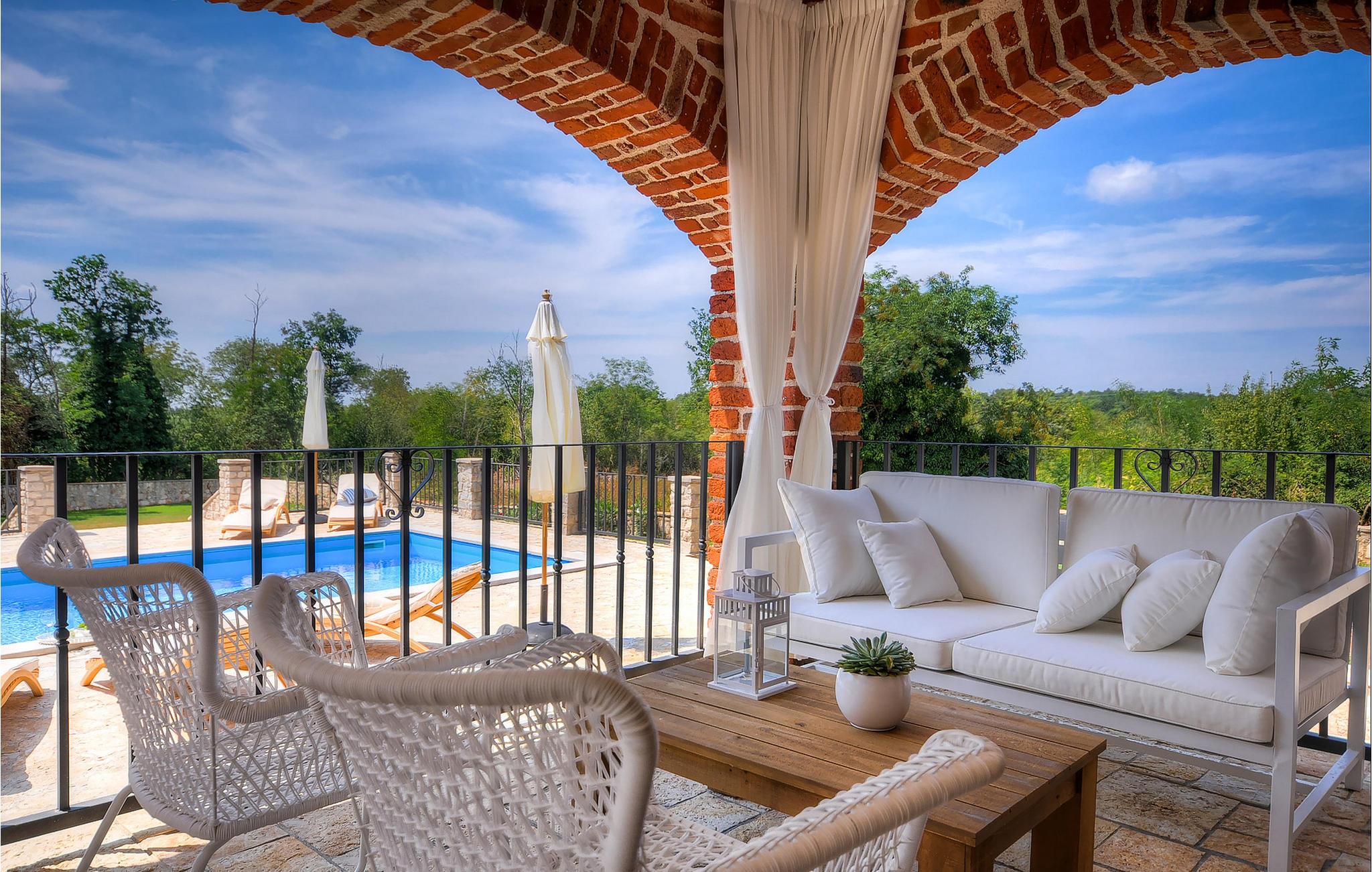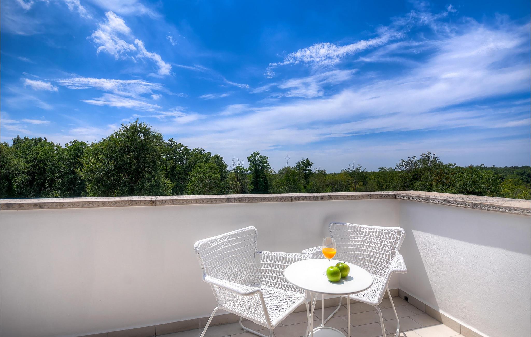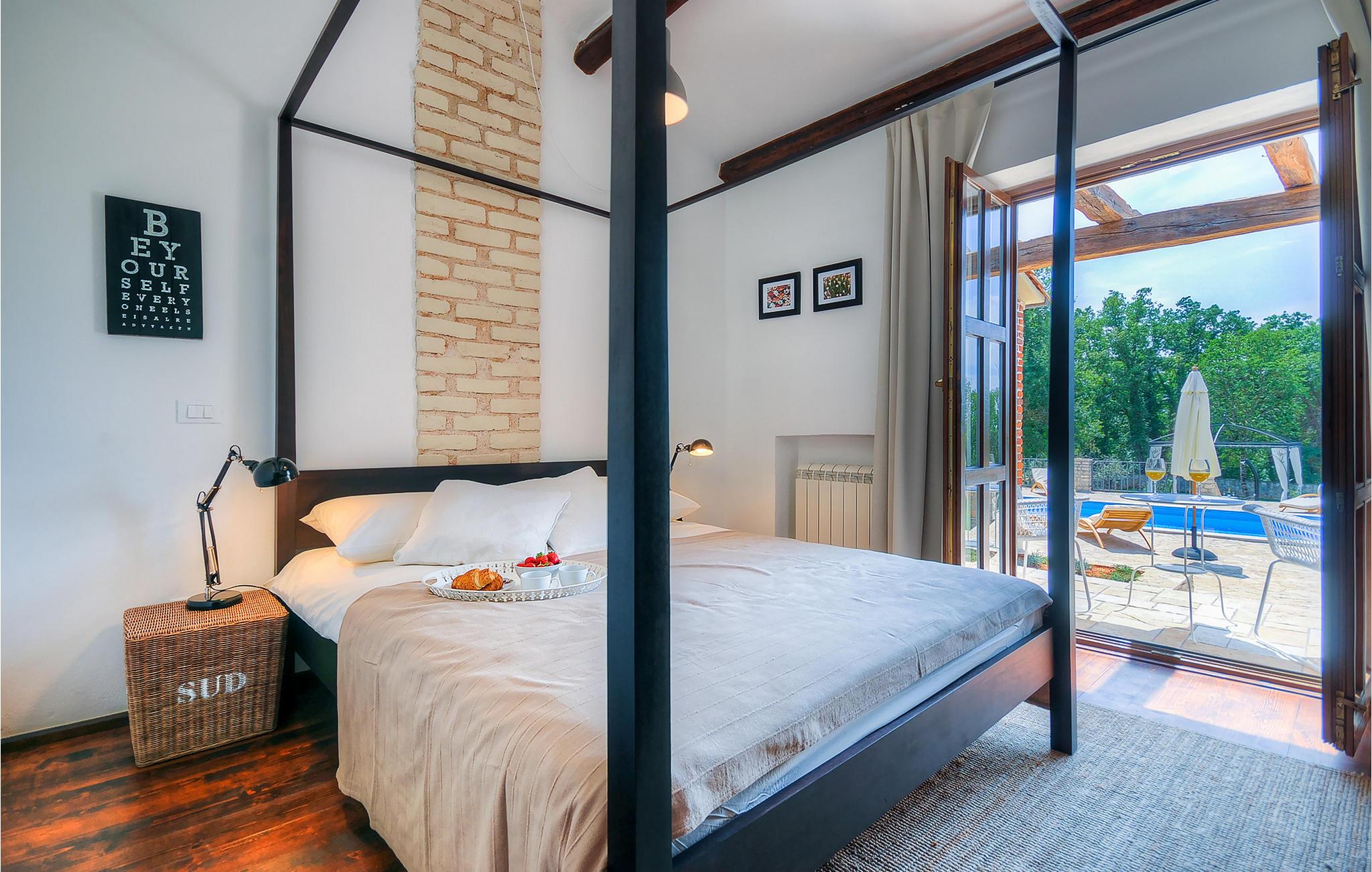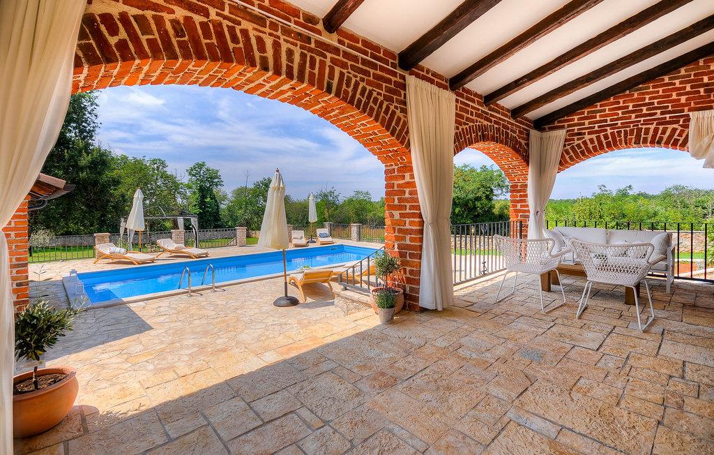Die wunderschöne Villa Oxalis, benannt nach der Blumenart, bietet einen angenehmen Urlaub für bis zu 8 Personen. Im Erdgeschoss befindet sich der offen konzipierte Wohn- und Essbereich sowie die voll ausgestattete Küche. Die gesamte rustikale Einrichtung mit Kamin im Wohnzimmer verleiht dem offenen Raum eine gemütliche und warme Atmosphäre, in der man sich nur wohl fühlen kann. Zwei bequeme Schlafzimmer, ein Badezimmer und eine Toilette befinden sich ebenfalls auf dieser Etage. Eine Treppe führt Sie zu den weiteren zwei Schlafzimmern, beide mit eigenem Badezimmer. In der gesamten Villa werden Ihnen die liebevollen Details auffallen. Der Außenbereich umfasst einen komplett eingezäunten grünen Garten. Aus dem Pool können Sie den herrlichen Ausblick in die Natur genießen und danach rund um den Pool auf den Liegen entspannen. Auf der Terrasse befindet sich der Essbereich mit Holzkohlgrill, der dazu einlädt, leckere Gerichte zuzubereiten. Die Villa Oxalis ist klimatisiert und verfügt über Internetzugang sowie private Parkplätze für 4 Autos. Sie bietet einfach alles für einen erholsamen Urlaub in Istrien. Višnjan ist ein kleiner Ort in Istrien, 13 Kilometer östlich von Porec entfernt. Im pittoresken Višnjan gibt es ein weltberühmtes astronomisches Observatorium, welches langjährige internationale Sommerprogramme für Jugendliche im Bereich Astronomie, Archäologie, Meeresbiologie und Ähnliches bietet. Višnjan ist auch bekannt für seinen Olivenanbau und auch einer der letzten Orte des istrischen autochthonen Rindes Boškarin.
