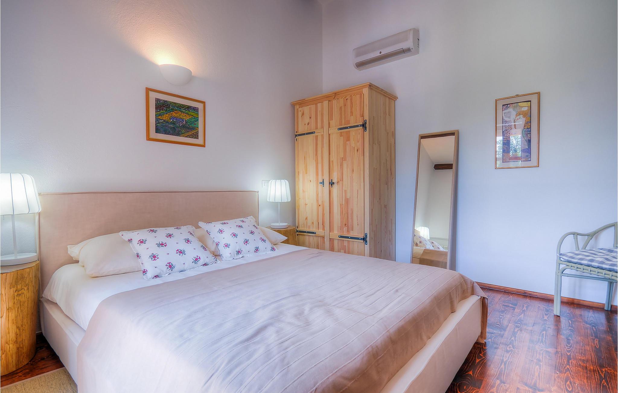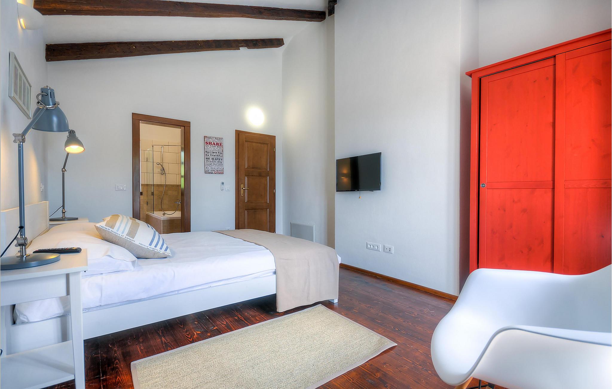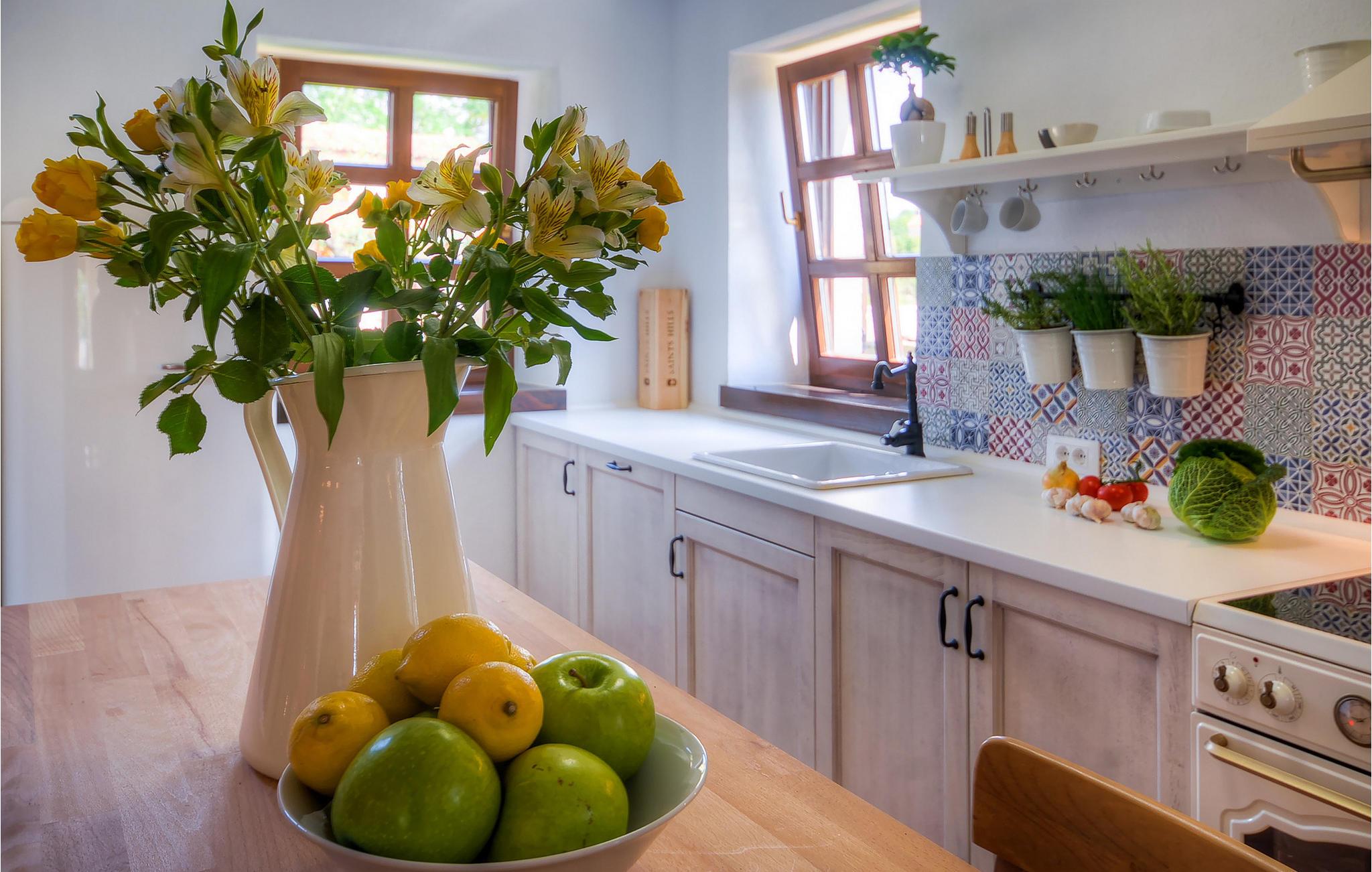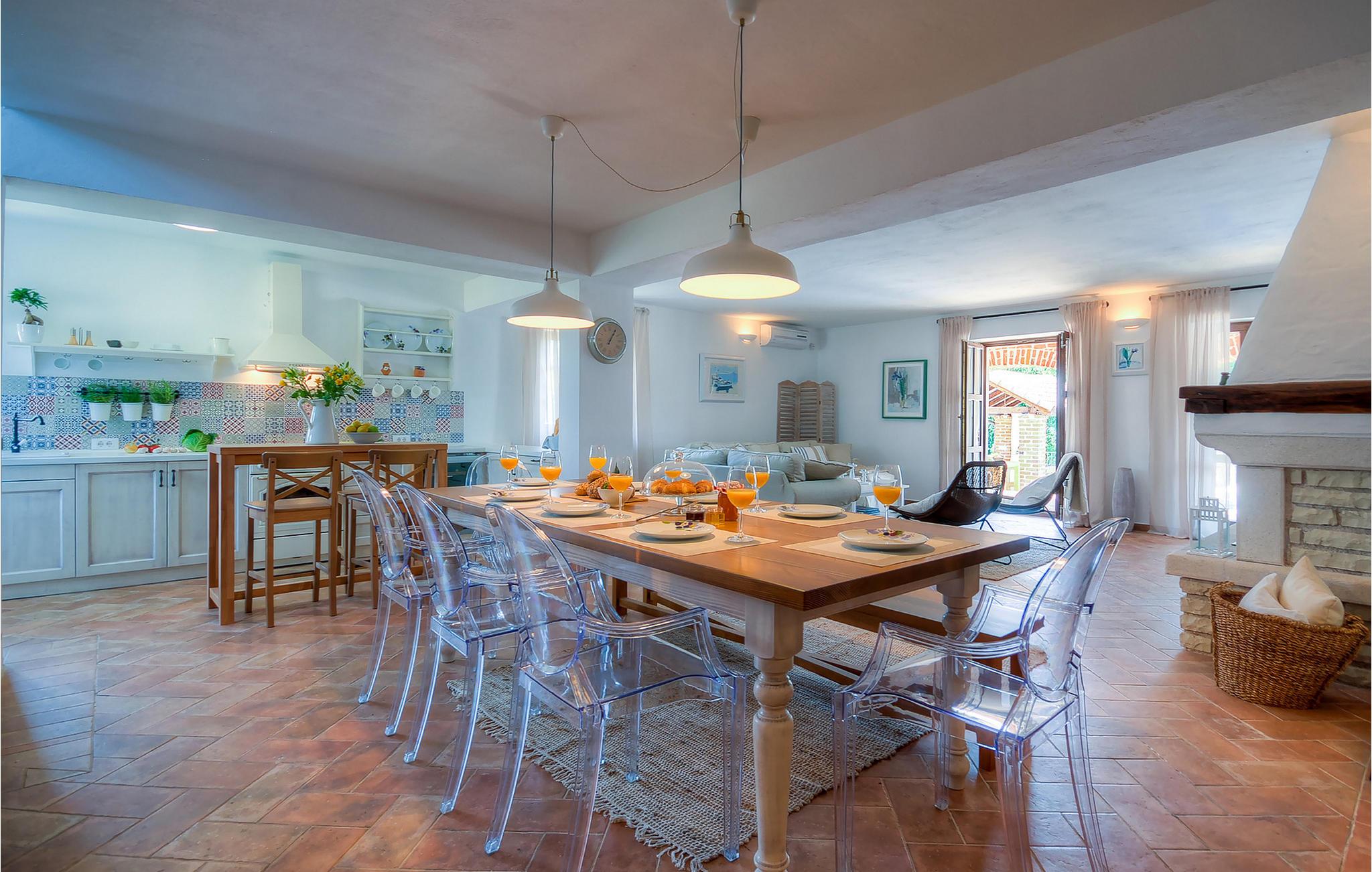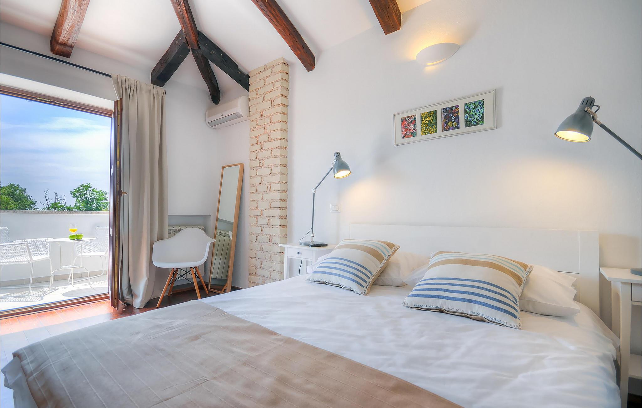 Die wunderschöne Villa Oxalis, benannt nach der Blumenart, bietet einen angenehmen Urlaub für bis zu 8 Personen. Im Erdgeschoss befindet sich der offen konzipierte Wohn- und Essbereich sowie die voll ausgestattete Küche. Die gesamte rustikale Einrichtung mit Kamin im Wohnzimmer verleiht dem offenen Raum eine gemütliche und warme Atmosphäre, in der man sich nur wohl fühlen kann. Zwei bequeme Schlafzimmer, ein Badezimmer und eine Toilette befinden sich ebenfalls auf dieser Etage. Eine Treppe führt Sie zu den weiteren zwei Schlafzimmern, beide mit eigenem Badezimmer. In der gesamten Villa werden Ihnen die liebevollen Details auffallen. Der Außenbereich umfasst einen komplett eingezäunten grünen Garten. Aus dem Pool können Sie den herrlichen Ausblick in die Natur genießen und danach rund um den Pool auf den Liegen entspannen. Auf der Terrasse befindet sich der Essbereich mit Holzkohlgrill, der dazu einlädt, leckere Gerichte zuzubereiten. Die Villa Oxalis ist klimatisiert und verfügt über Internetzugang sowie private Parkplätze für 4 Autos. Sie bietet einfach alles für einen erholsamen Urlaub in Istrien. Višnjan ist ein kleiner Ort in Istrien, 13 Kilometer östlich von Porec entfernt. Im pittoresken Višnjan gibt es ein weltberühmtes astronomisches Observatorium, welches langjährige internationale Sommerprogramme für Jugendliche im Bereich Astronomie, Archäologie, Meeresbiologie und Ähnliches bietet. Višnjan ist auch bekannt für seinen Olivenanbau und auch einer der letzten Orte des istrischen autochthonen Rindes Boškarin.