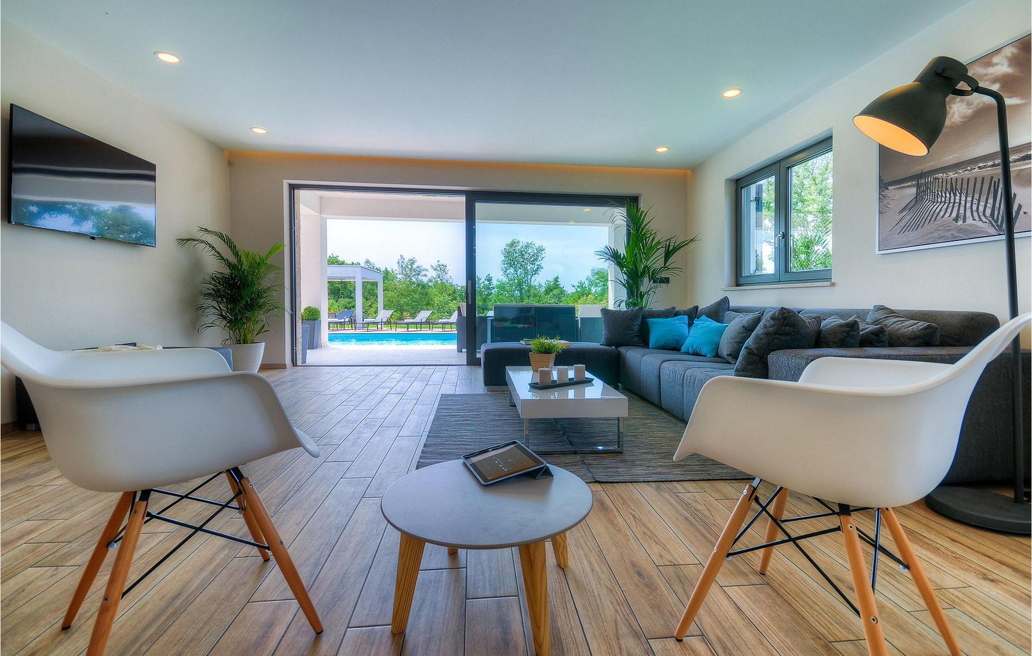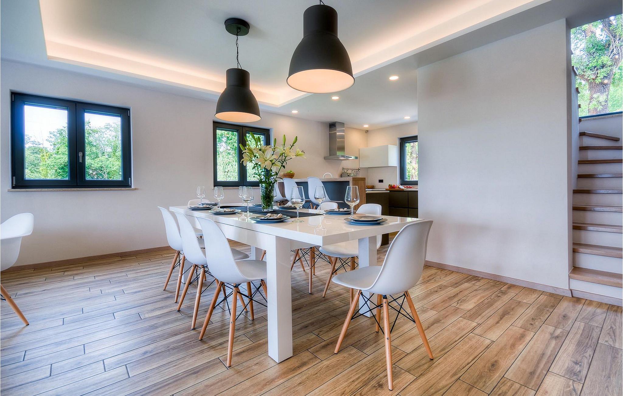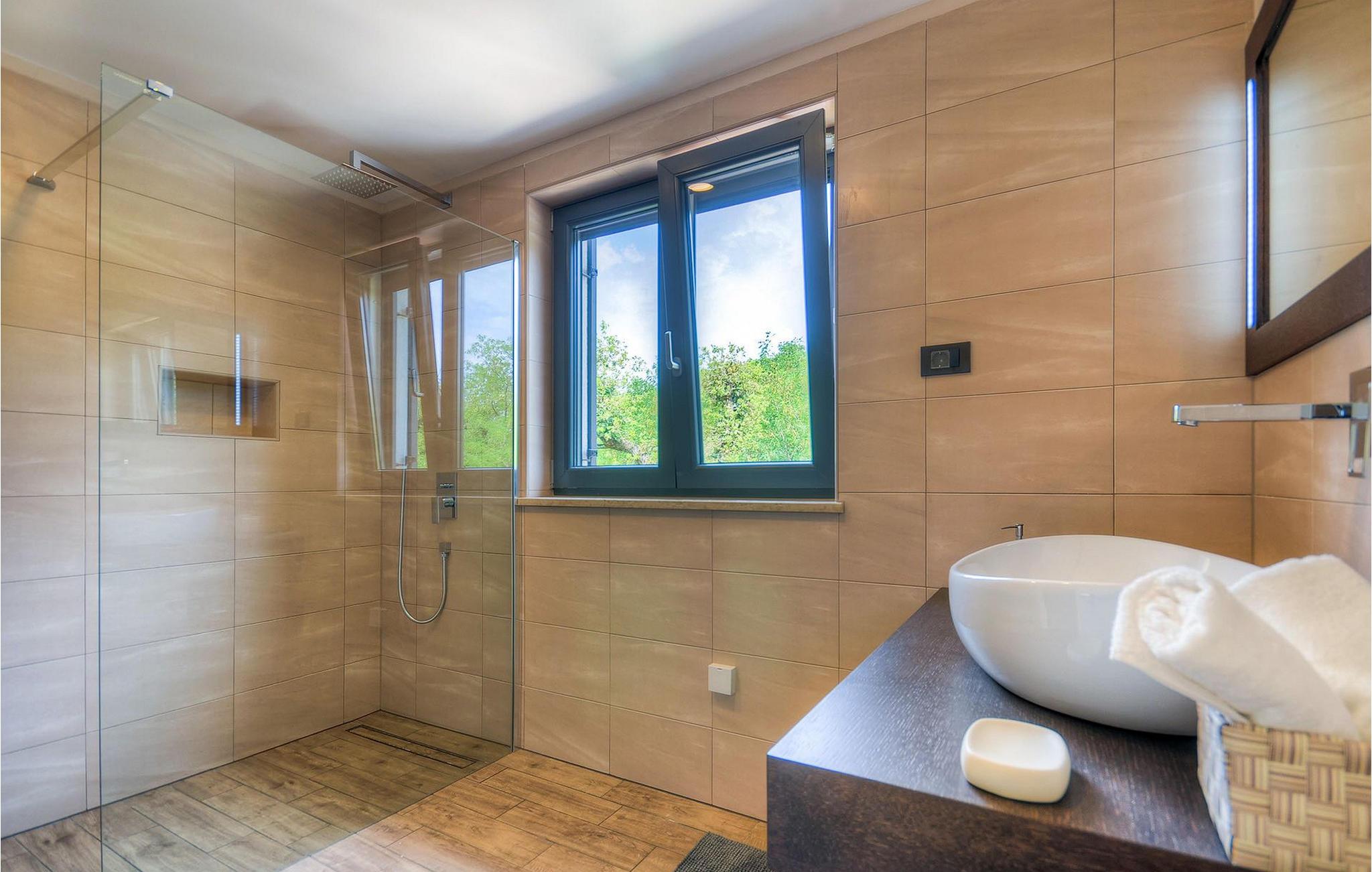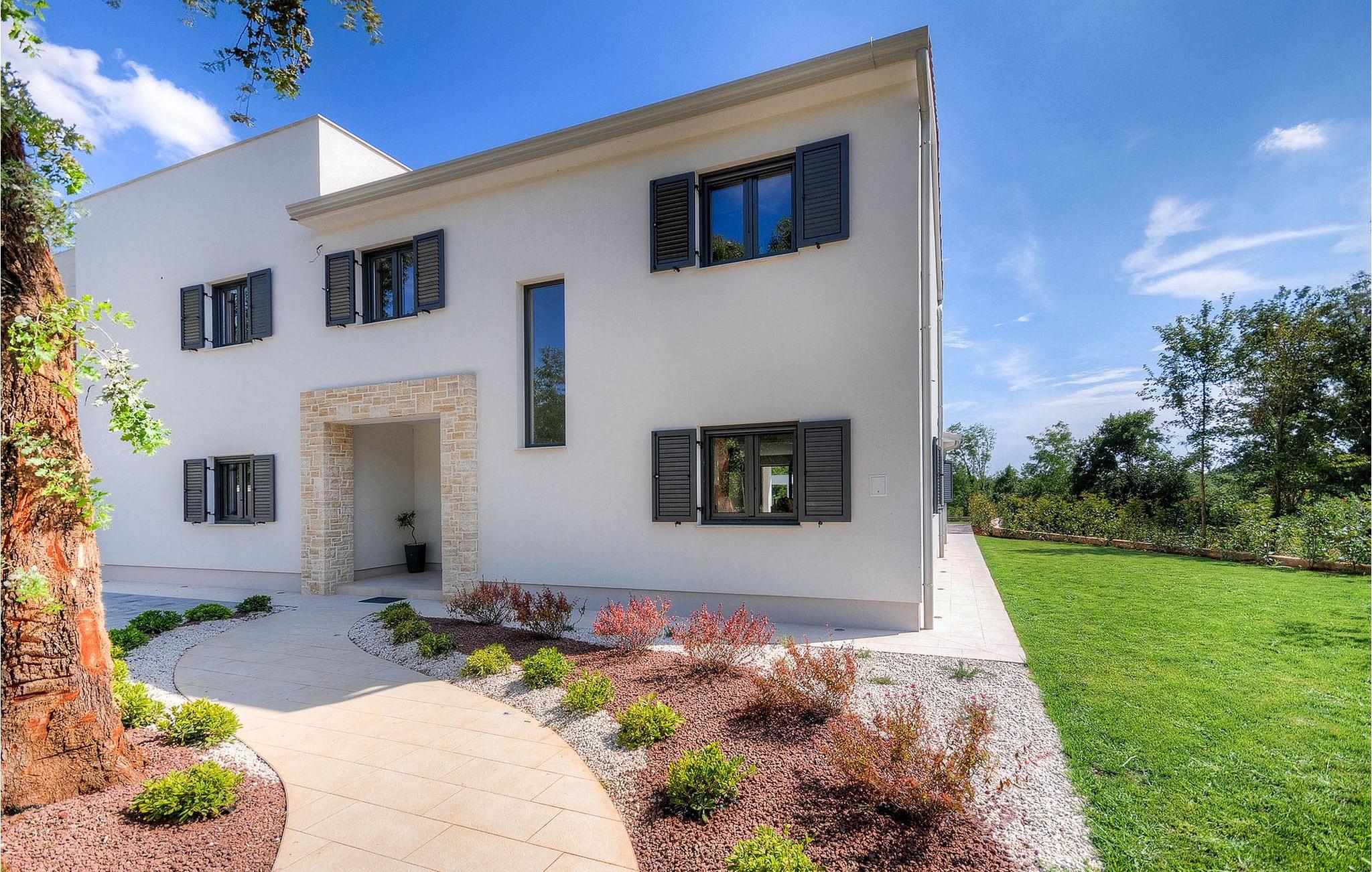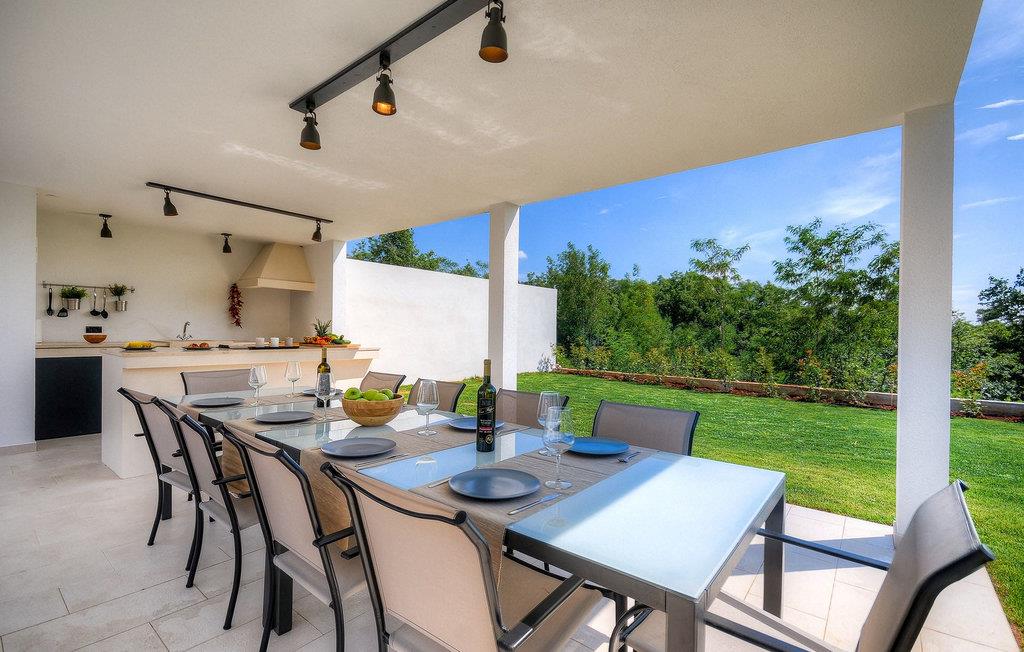 Der Außenbereich umfasst einen komplett eingezäunten grünen Garten, in dem sich der Doppel-Pool mit Hydromassage befindet. Die Terrasse bietet eine wunderschöne Sommerküche mit Gasgrill und einem weiteren Essbereich im Freien, wo Sie leckere Mahlzeiten zubereiten können. Villa Onyx ist völlig klimatisiert und verfügt über WLAN Internetzugang, privaten Parkplatz für 2 Autos und bietet alles für einen angenehmen Urlaub.Diese moderne Villa liegt in einer ruhigen Umgebung, die eine perfekte Lage für Ihren friedlichen Rückzug vom modernen Alltagsleben bietet. Trotzdem ist es nur eine kurze Fahrt von istrischen Touristenzentren und historischen Stätten entfernt. Strände sind 12 km von der Villa entfernt und Sie können aus einer Vielzahl in der Porec Region wählen. Der Tourismus rund um Porec ist viel mehr als nur Meer, Sonne und Touristen. Die Gäste können unschwer erkennen, dass die Stadt ihr geschichtliches Bild bewahrt. Hier findet man Museen, Gallerien und viele sehenswerte Stadtmerkmale. Das komplette Stadtzentrum ist ein lebendes Kulturdenkmal. Die Straßen beheimaten zahlreiche Galerien und Ausstellungsräume, die die Tradition auf moderne Weise bewahren. Eine schöne Weise Istrien kennen zu lernen ist die außergewöhnliche Gastronomie.