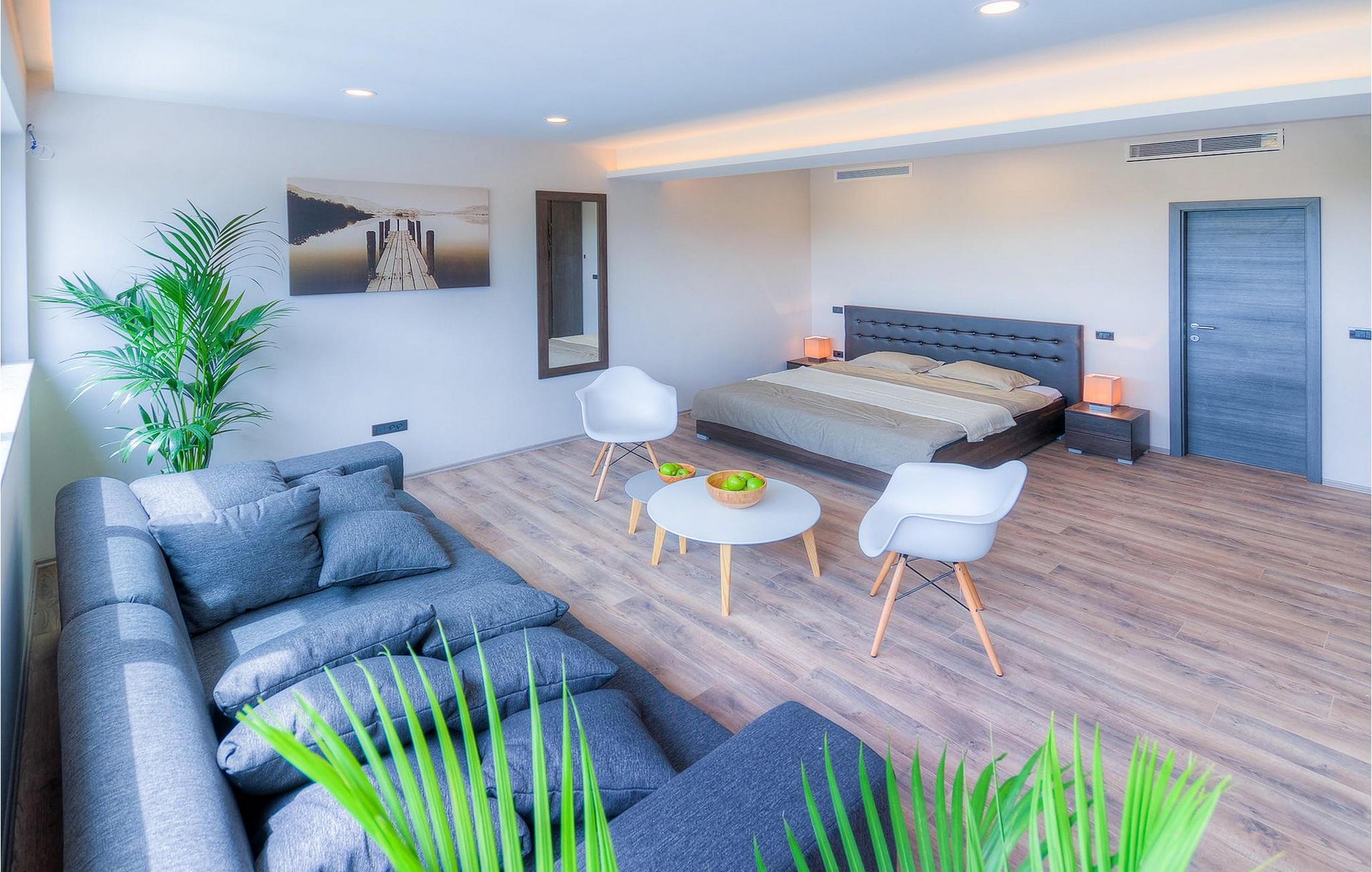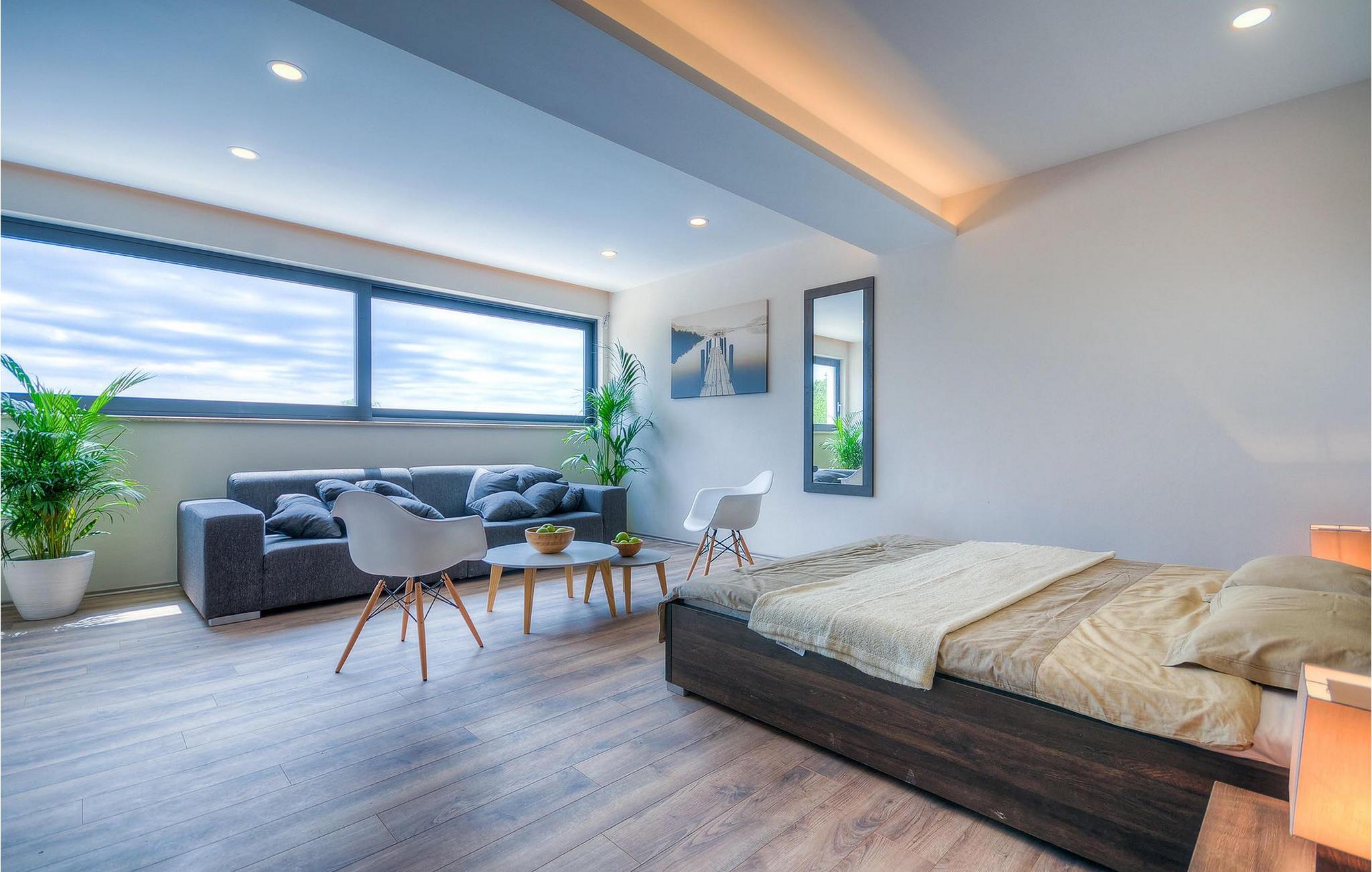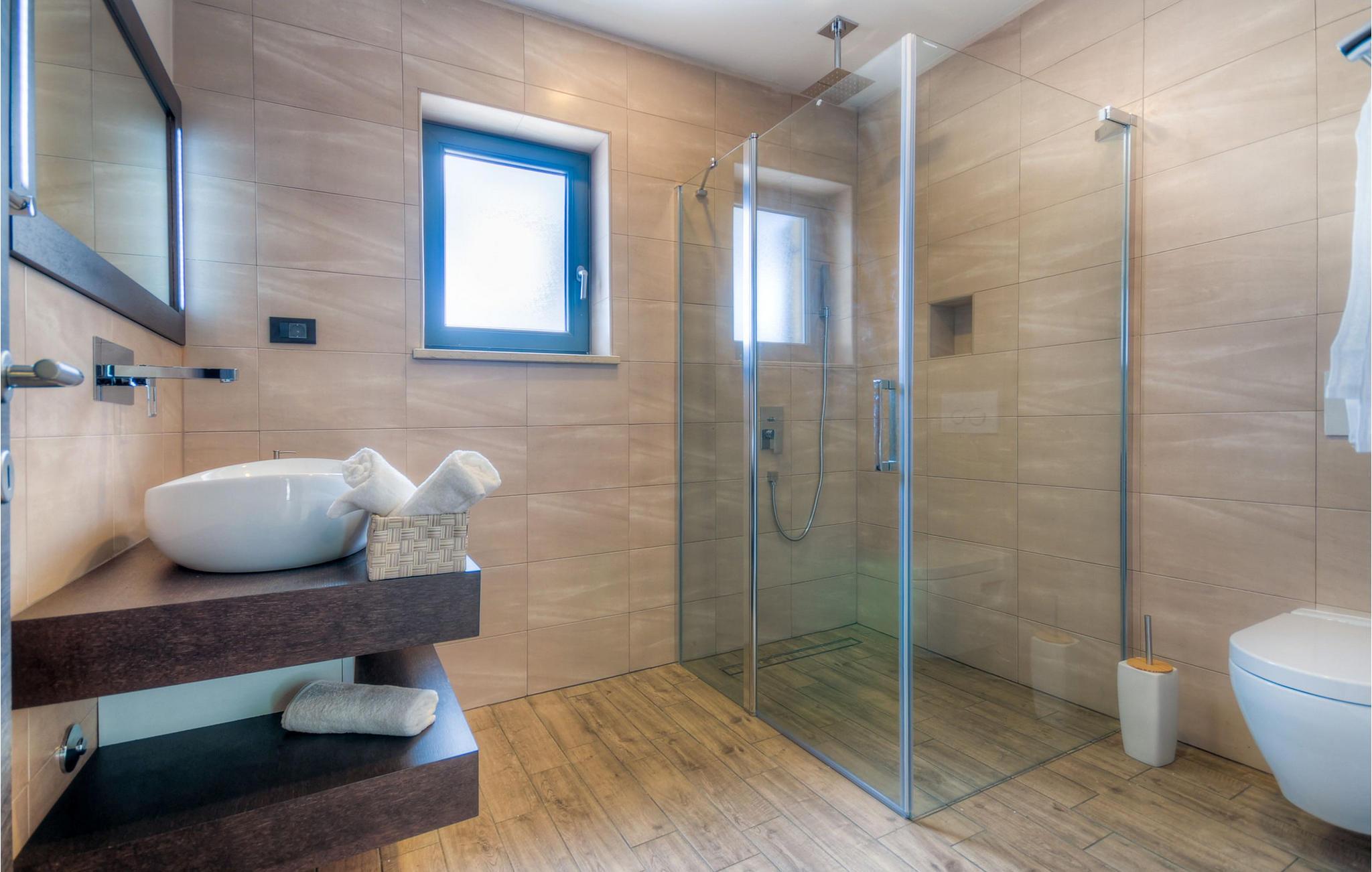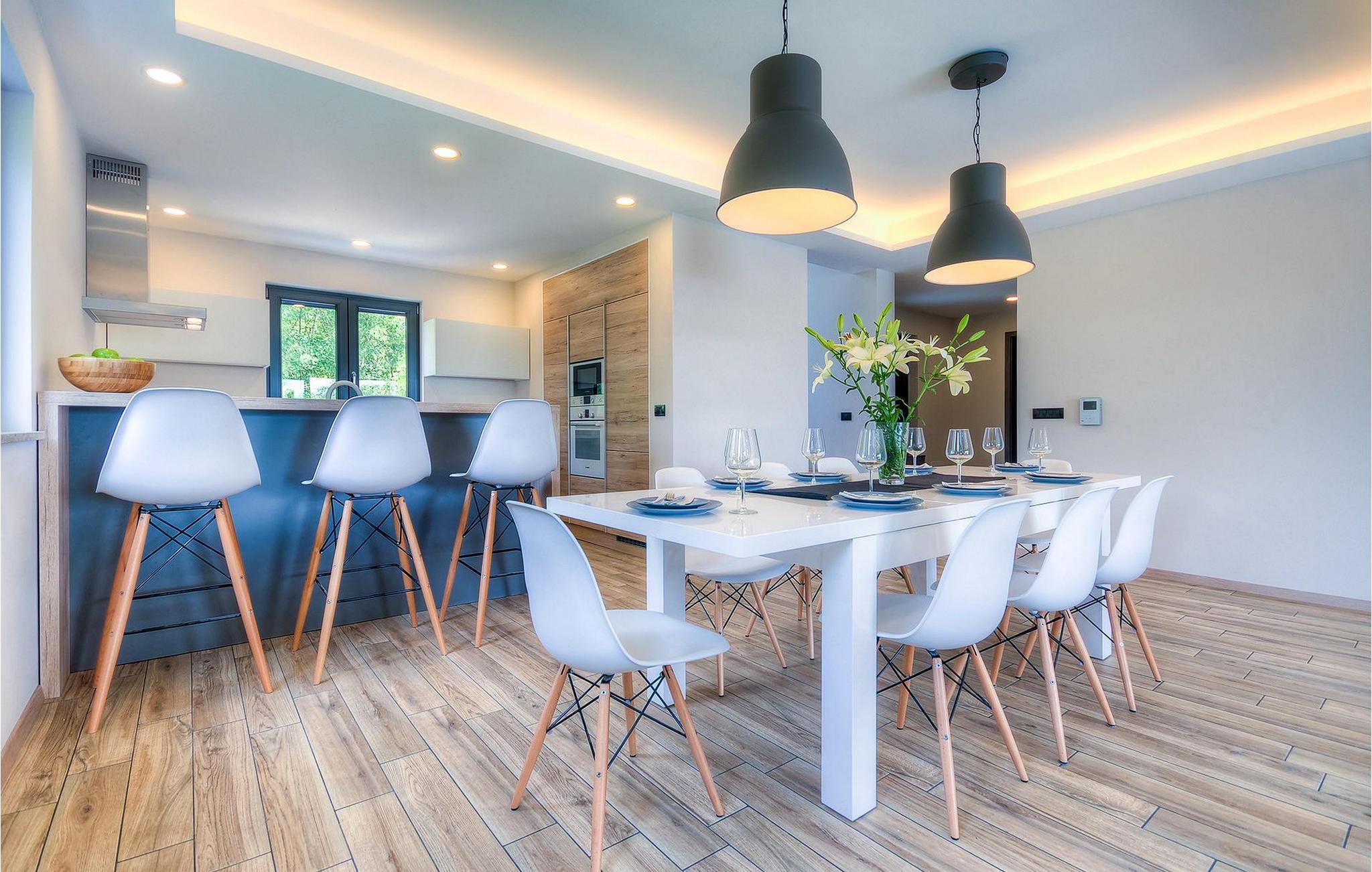 Der Außenbereich umfasst einen komplett eingezäunten grünen Garten, in dem sich der Doppel-Pool mit Hydromassage befindet. Die Terrasse bietet eine wunderschöne Sommerküche mit Gasgrill und einem weiteren Essbereich im Freien, wo Sie leckere Mahlzeiten zubereiten können. Villa Onyx ist völlig klimatisiert und verfügt über WLAN Internetzugang, privaten Parkplatz für 2 Autos und bietet alles für einen angenehmen Urlaub.Diese moderne Villa liegt in einer ruhigen Umgebung, die eine perfekte Lage für Ihren friedlichen Rückzug vom modernen Alltagsleben bietet. Trotzdem ist es nur eine kurze Fahrt von istrischen Touristenzentren und historischen Stätten entfernt. Strände sind 12 km von der Villa entfernt und Sie können aus einer Vielzahl in der Porec Region wählen. Der Tourismus rund um Porec ist viel mehr als nur Meer, Sonne und Touristen. Die Gäste können unschwer erkennen, dass die Stadt ihr geschichtliches Bild bewahrt. Hier findet man Museen, Gallerien und viele sehenswerte Stadtmerkmale. Das komplette Stadtzentrum ist ein lebendes Kulturdenkmal. Die Straßen beheimaten zahlreiche Galerien und Ausstellungsräume, die die Tradition auf moderne Weise bewahren. Eine schöne Weise Istrien kennen zu lernen ist die außergewöhnliche Gastronomie.