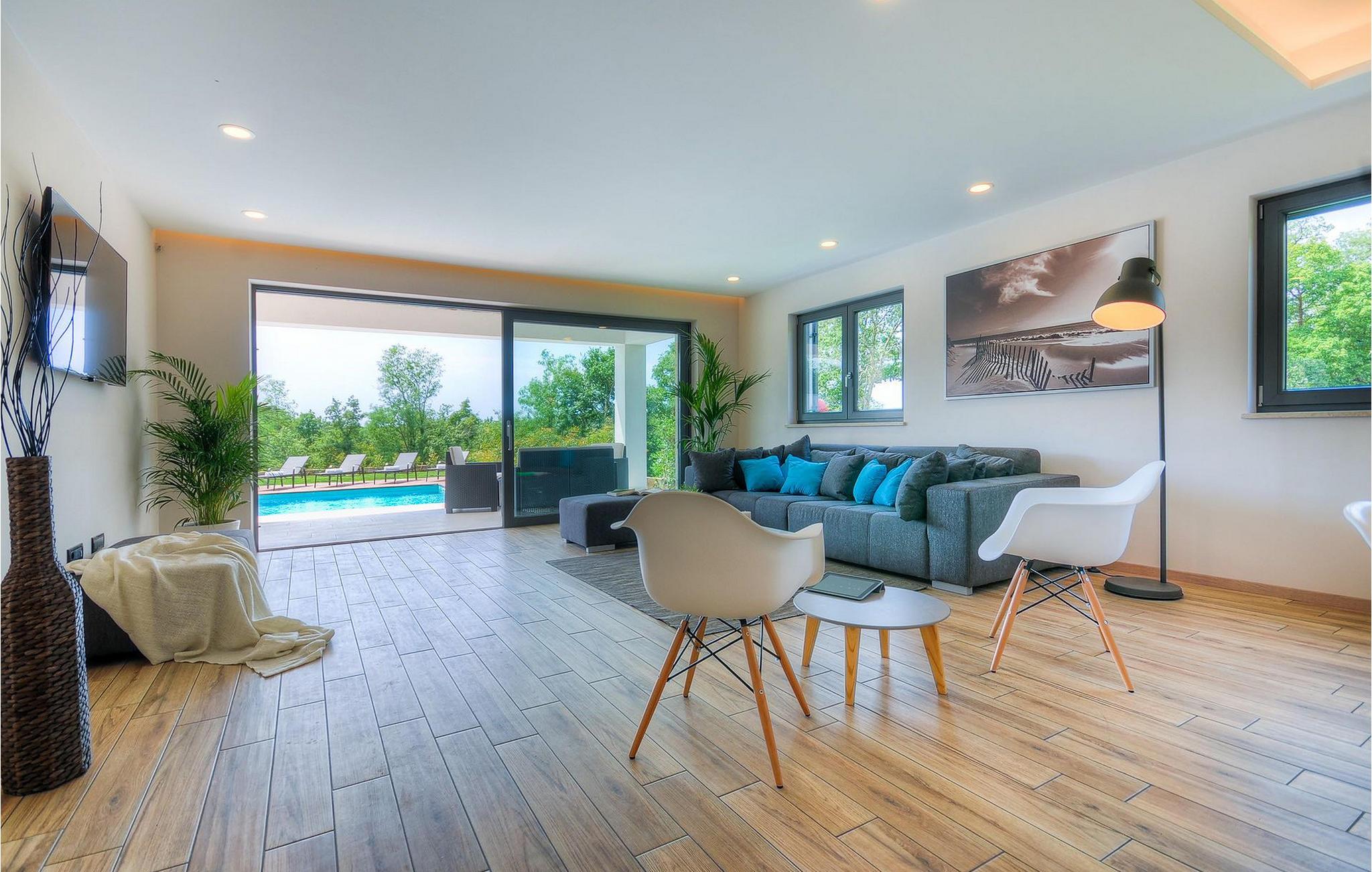 Mit ihrer Lage am Rande eines idyllischen kleinen Weilers, inmitten von waldigen Hügel der bildschönen Landschaft Istriens bietet diese Luxus-Villa einen traumhaften Zufluchtsort für diejenigen, die eine friedliche, naturbelassene, dennoch interessante Umgebung in großem Komfort genießen wollen. Zur Verfügung stehen 5 Schlafzimmer, 4 Badezimmer, ein Wohnzimmer und eine komplett ausgestattete Küche mit Essbereich.