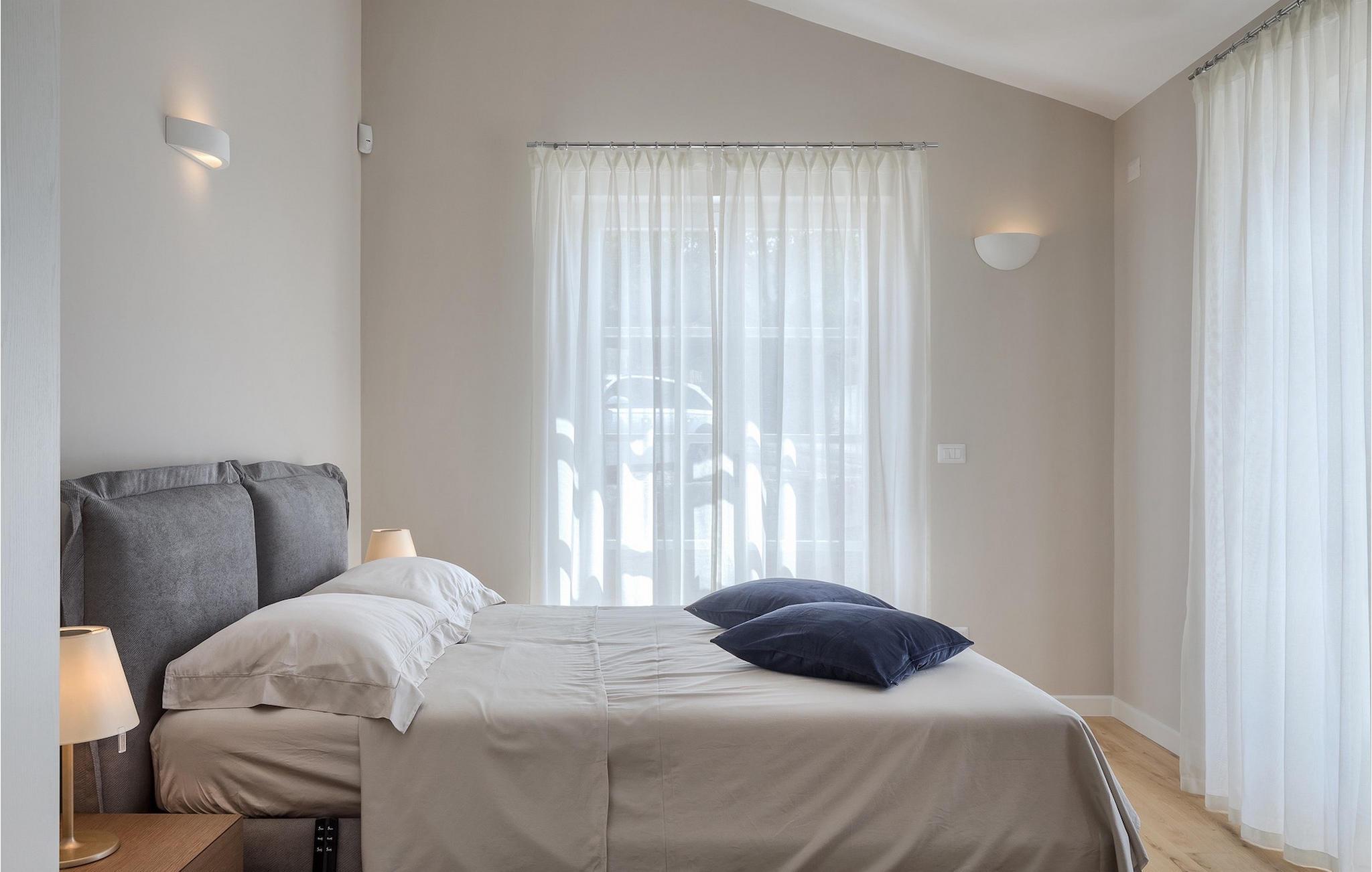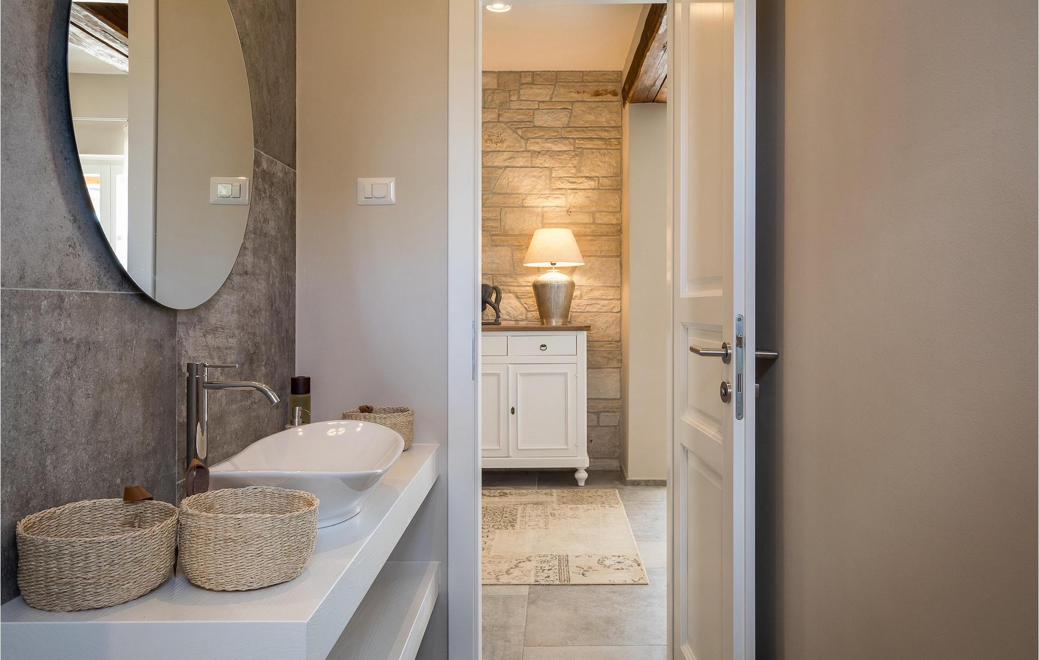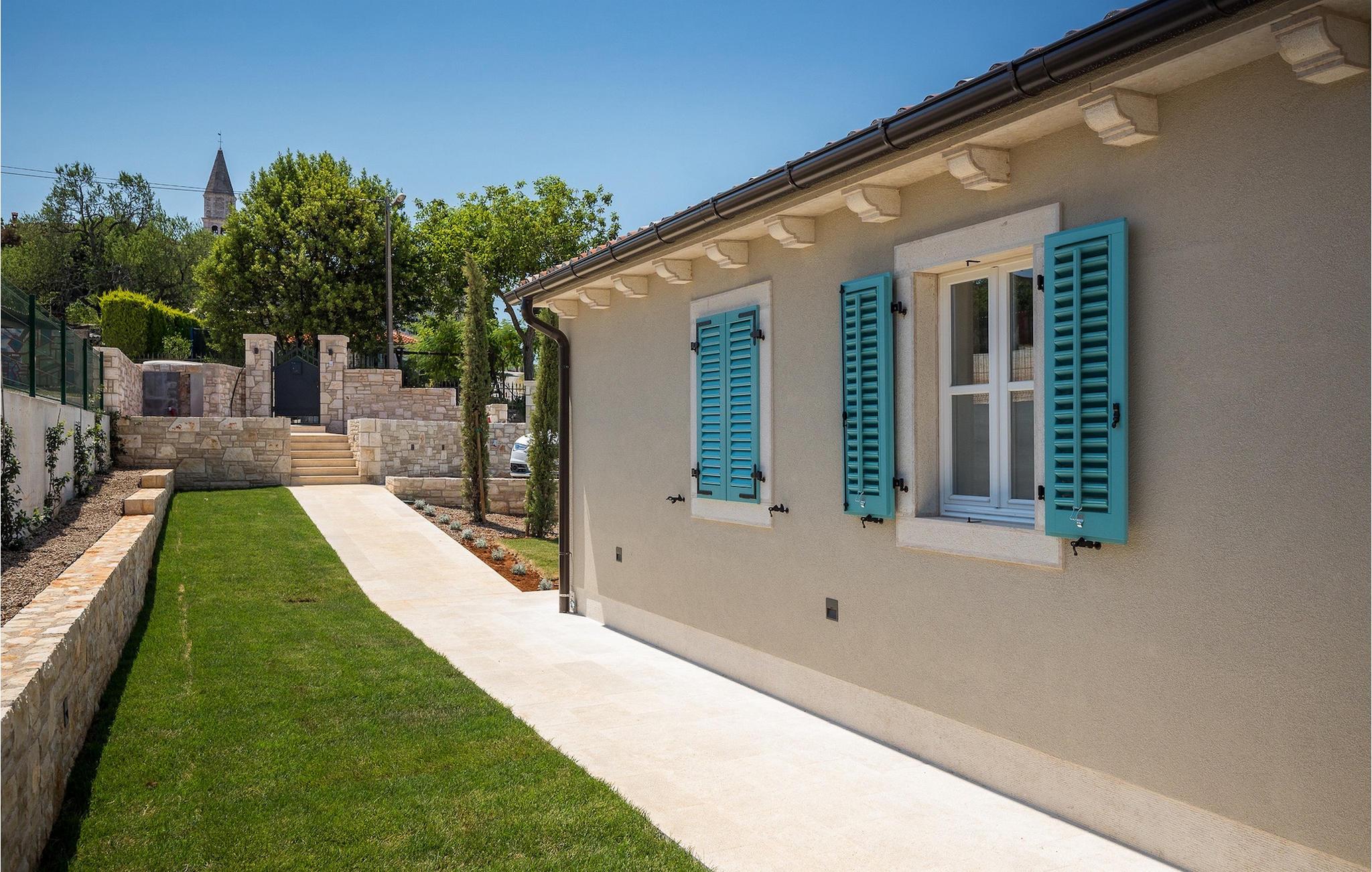 Das Interieur ist hell und modern. Die klaren Linien im offenen Wohnbereich werden nur von wenigen traditionellen Details und Einrichtungsgegenständen unterbrochen und wirken sehr beruhigend und gemütlich. Eine voll ausgestattete Küche lässt kaum Wünsche offen. Zwei komfortable Schlafzimmer befinden sich im Erdgeschoss, zwei weitere im Obergeschoss. Jedes Schlafzimmer verfügt über ein eigenes modernes Badezimmer mit Dusche, eine Klimaanlage und TV. Das Hauptschlafzimmer auf der oberen Etage hat dazu noch einen eigenen überdachten Balkon. Von hier aus kann man einen herrlichen Ausblick genießen und zu seiner Lieblingsmusik oder einem tollen Buch wunderbar ungestört entspannen. Villa Julia Marija ist einfach ein Traumhaus, welches Ihnen in typisch istrischer Umgebung einen großartigen Urlaub mit der ganzen Familie und Freunden ermöglicht.Diese wunderschöne Villa Julia Marija befindet sich in der Umgebung von Višnjan, etwa 12 km von Porec entfernt. In den Straßen der Altstadt von Višnjan ist der Geist des reichen historischen Erbes zu erleben. In der Umgebung von Višnjan können Sie in istrischen Tavernen köstliche Delikatessen und typisch istrische Spezialitäten verkosten. Višnjan ist auch für seine international bekannte Sternwarte und als einer der letzten Orte in Istrien der autochthonen istrischen Rinder (Boškarin) bekannt. Die wunderschöne Stadt Porec ist für Kultur, Tourismus, Sport und Freizeit bekannt. Während Ihres Aufenthalts in Istrien besuchen Sie die Euphrasius-Basilika (Unesco Kulturerbe) in der Altstadt von Porec oder genießen Sie einfach einen Tag am Strand. Da Ihnen in Porec zahlreiche verschiedene Sportarten (Tennis, Beachvolleyball, Fußball, Reiten, Radfahren, Wandern, Wassersport) zur Verfügung stehen, ist es ein attraktives Reiseziel.