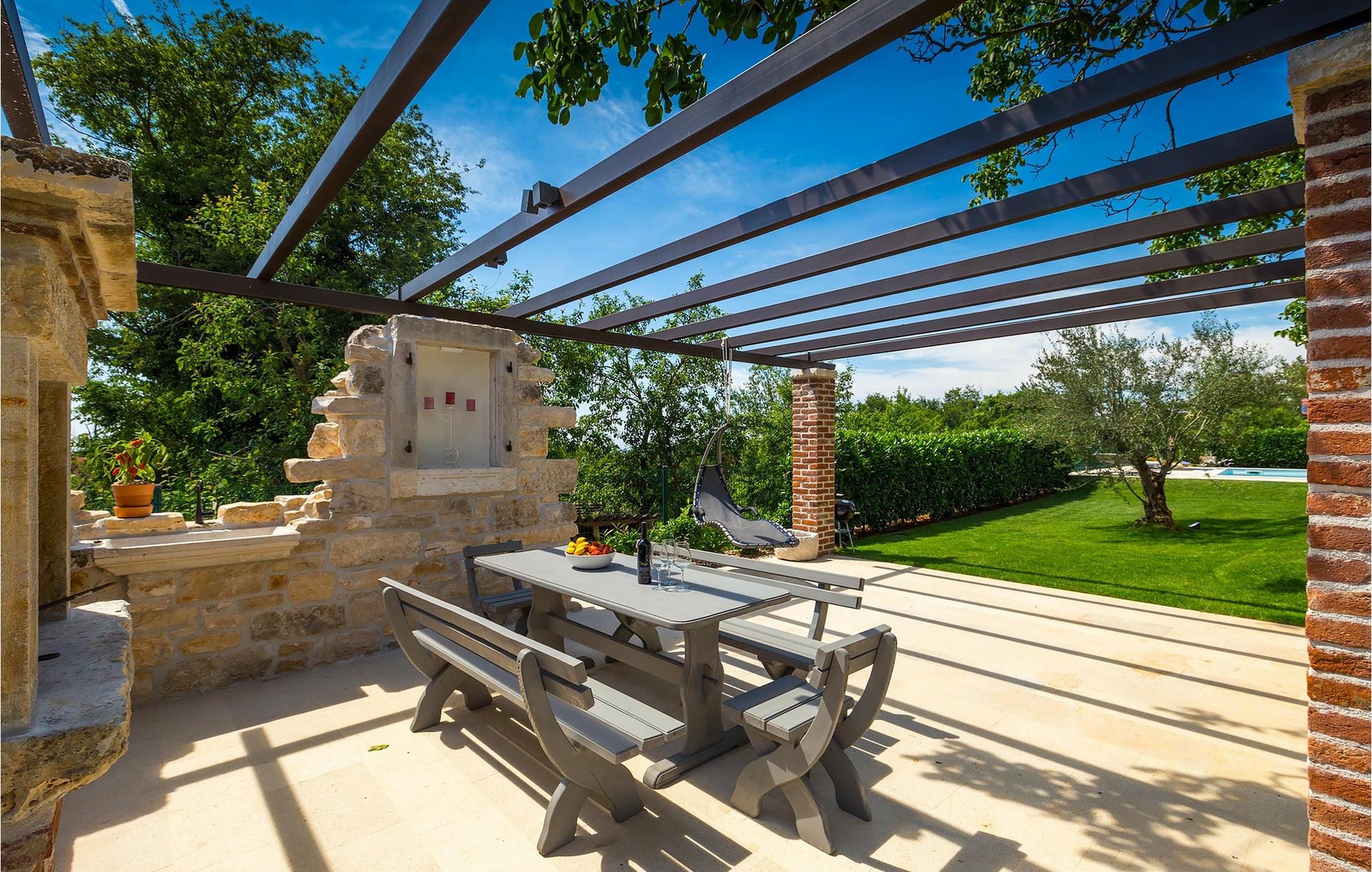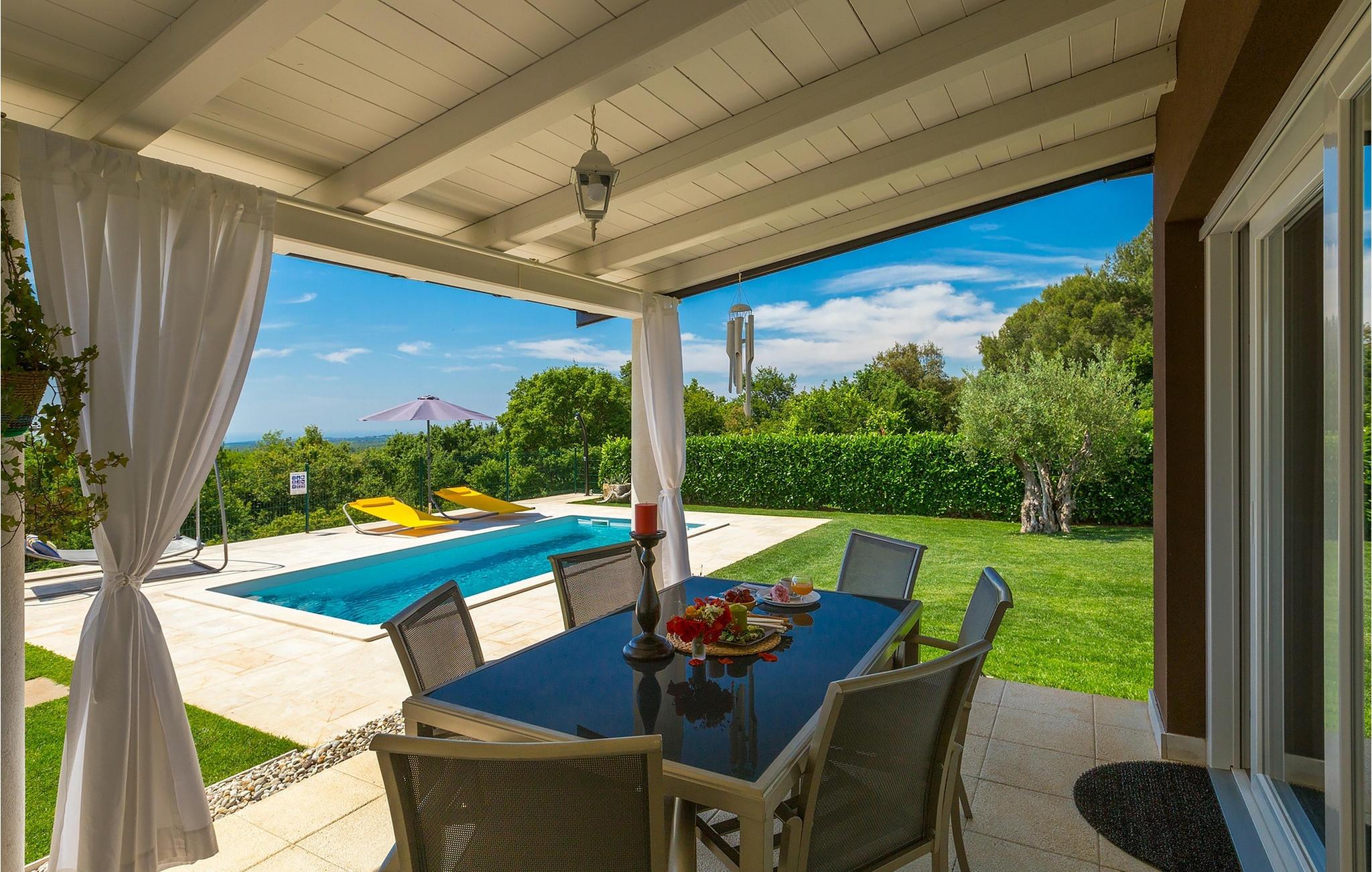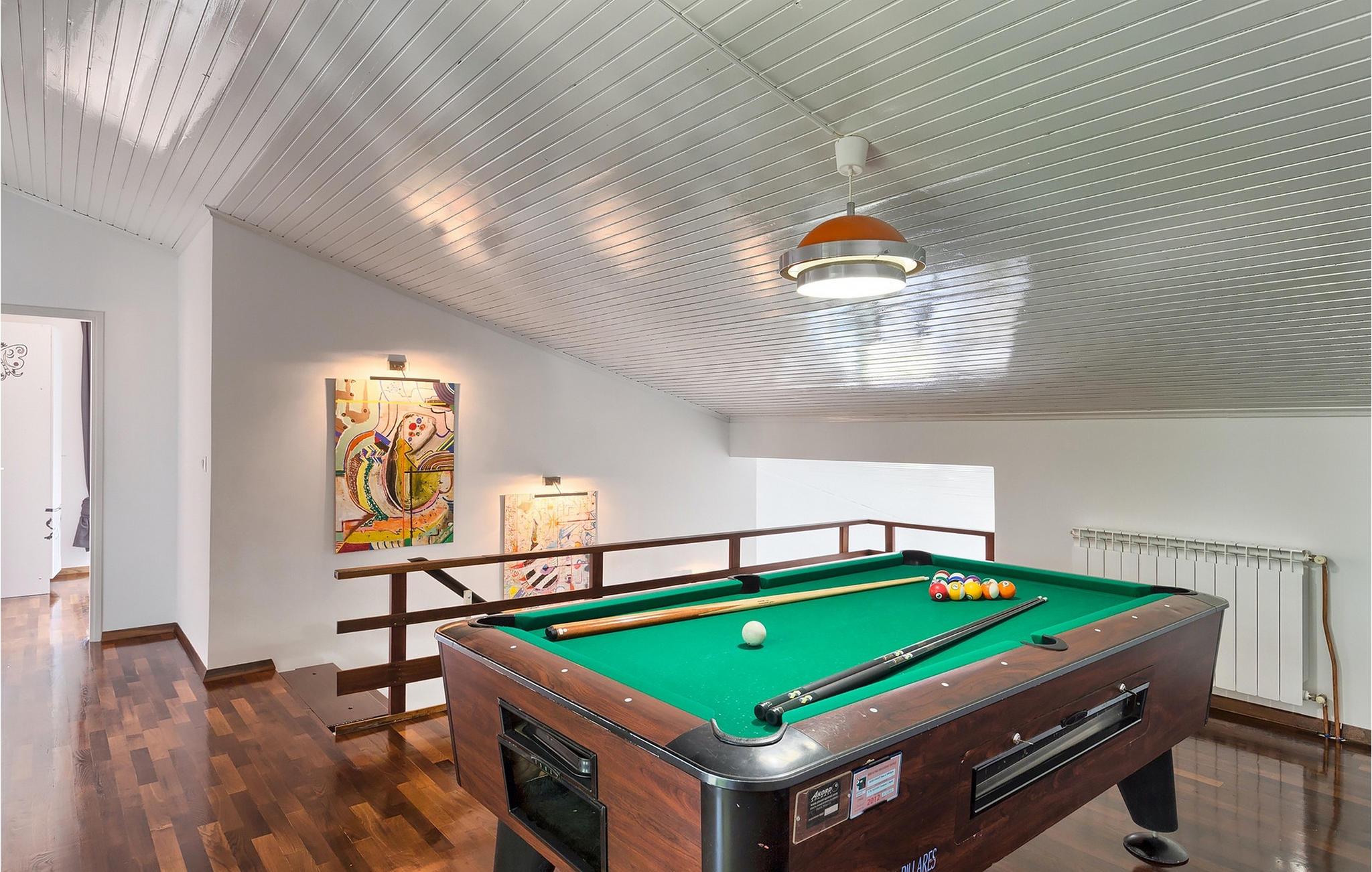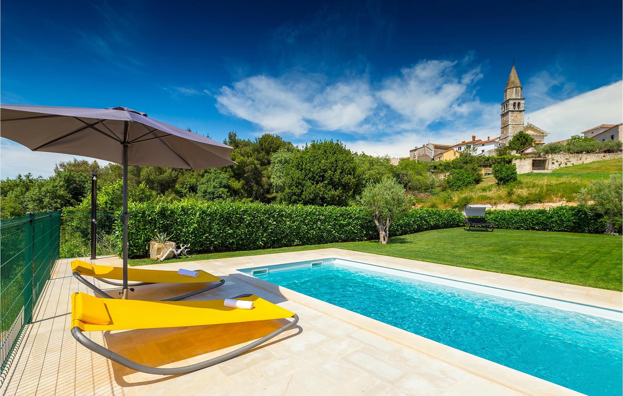 Benannt nach dem bekannten Radweg Parenzana, der ein paar schöner, traditioneller Städte Zentralistrien´s verbindet, Villa Parenzana ist die ideale Wahl für einen äußerst entspannenden Urlaub. Die Villa kann bis zu 10 Personen beherbergen, die ohne Zweifel die unberührte Natur dieser Region genießen werden. Insgesamt 5 Schlafzimmer und 4 Badezimmer, komplett ausgestattete Küche, moderner und gemütlicher Essbereich und geräumiger Garten bieten alles an, was Sie für einen stressfreien Urlaub brauchen könnten. Der einladende Salzwasser-Pool gibt dem Ganzen Anwesen einen mediterranean Touch. Nehmen Sie ein Sonnenbad, wobei Sie auch den herrlichen Blick auf die Umgebung genießen können. Im Garten gibt es eine Terrasse, die ideal für genussvolle Mahlzeiten im Freien ist. Für Spaß stehen Ihnen dein Billardtisch und ein Badmintonspielplatz zur Verfügung. Außerdem können Sie sich auch im Bogenschießen üben.Visnjan ist eine kleine Stadt inmitten von Zentralistrien. Die Stadt ist umgeben von sanften Hügeln, Wäldern uns anderen historischen Städten. Visnjan war ein Handelszentrum, wo man alle Arten an Agrarprodukten kaufen und verkaufen konnte. Da die Stadt auf einem Berg gelegen ist, kann man einen herrlichen Blick auf die gotische Kirche, das Stadttor mit dem Wahrzeichen von Venedig und die Stadtplatz genießen. Die Stadt Visnjan bietet alles, was man im Urlaub brauchen könnte an: Restaurants und Bars, eine Bank, eine Post und eine Apotheke. Nur eine kurze Fahrt von der Villa entfernt befindet sich der Wasserpark Istralandia, der hohe Dosen von Adrenalin garantiert. Diese Lage ist für diejenige ideal, die gerne spazieren, joggen oder Rad fahren.