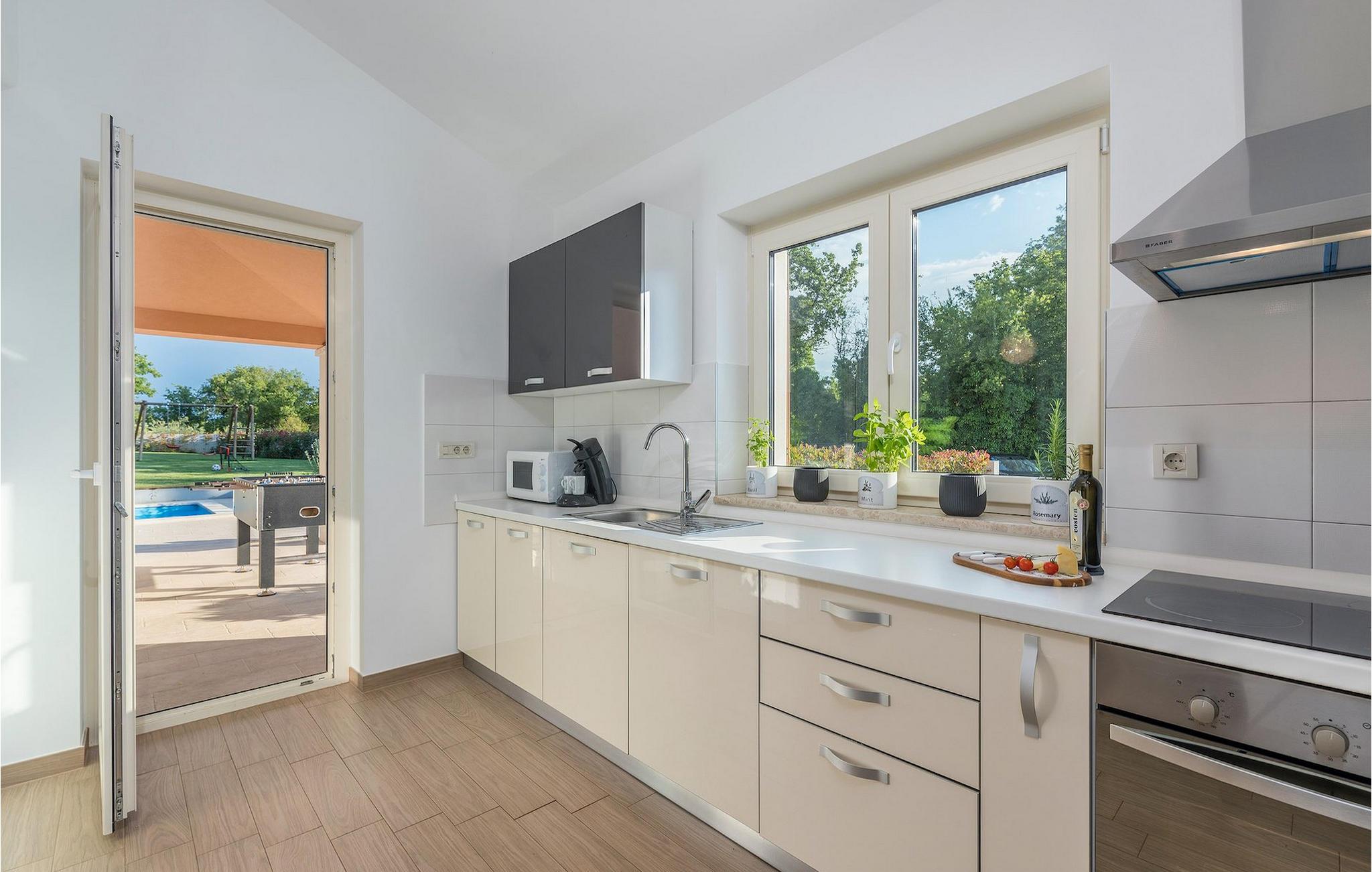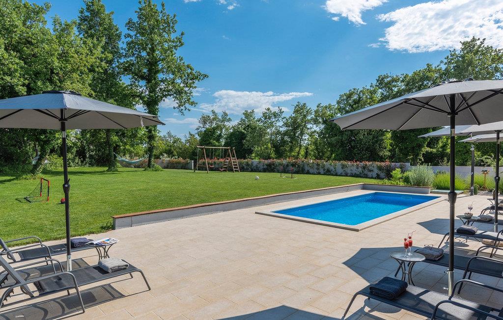 Für diejenigen, die etwas aktiver sind, gibt es einen Rasen, der groß genug ist, um Fußball und Badminton zu spielen oder einfach nur die Natur zu genießen. Und am Abend, wenn alle nach einem aktiven Tag hungrig sind - ist eine köstliche Mahlzeit, die auf dem Grill zubereitet ist, ein guter Weg, um den Tag zu beenden ... Stellen Sie sich dies nur vor und Sie werden schon in einer echten Sommerstimmung sein! Die Villa verfügt über eine voll ausgestattete Küche und das Schlafsofa im Wohnzimmer ist eine bequeme Schlafmöglichkeit, wenn Ihre Gruppe mehr als 10 Mitglieder hat.Die Villa befindet sich in einem ruhigen Dorf nahe Porec - dem größten Touristenzentrum in Istrien. Die Strände sind nur 9 km von der Villa entfernt und sie können sich für einen Strand Ihrer Wahl nahe Porec entscheiden. Porec Tourismus ist mehr als Meer und Sonne. Die Touristen können leicht erkennen, das die Stadt ihre historischen Werte beibehalten hat. Sie können Museen, Galerien und viele wertvolle Stadtpaläste finden.