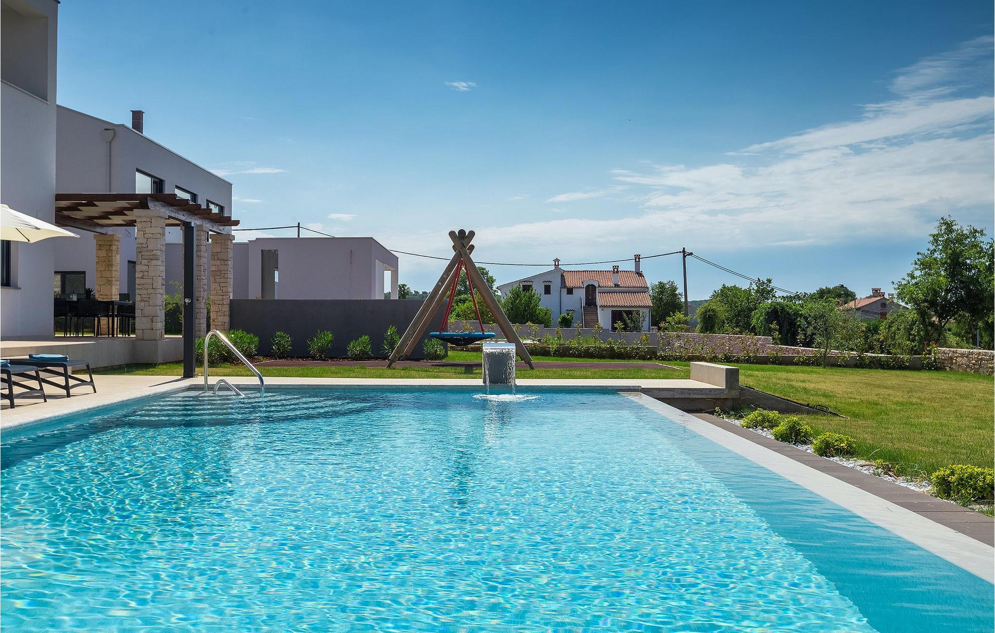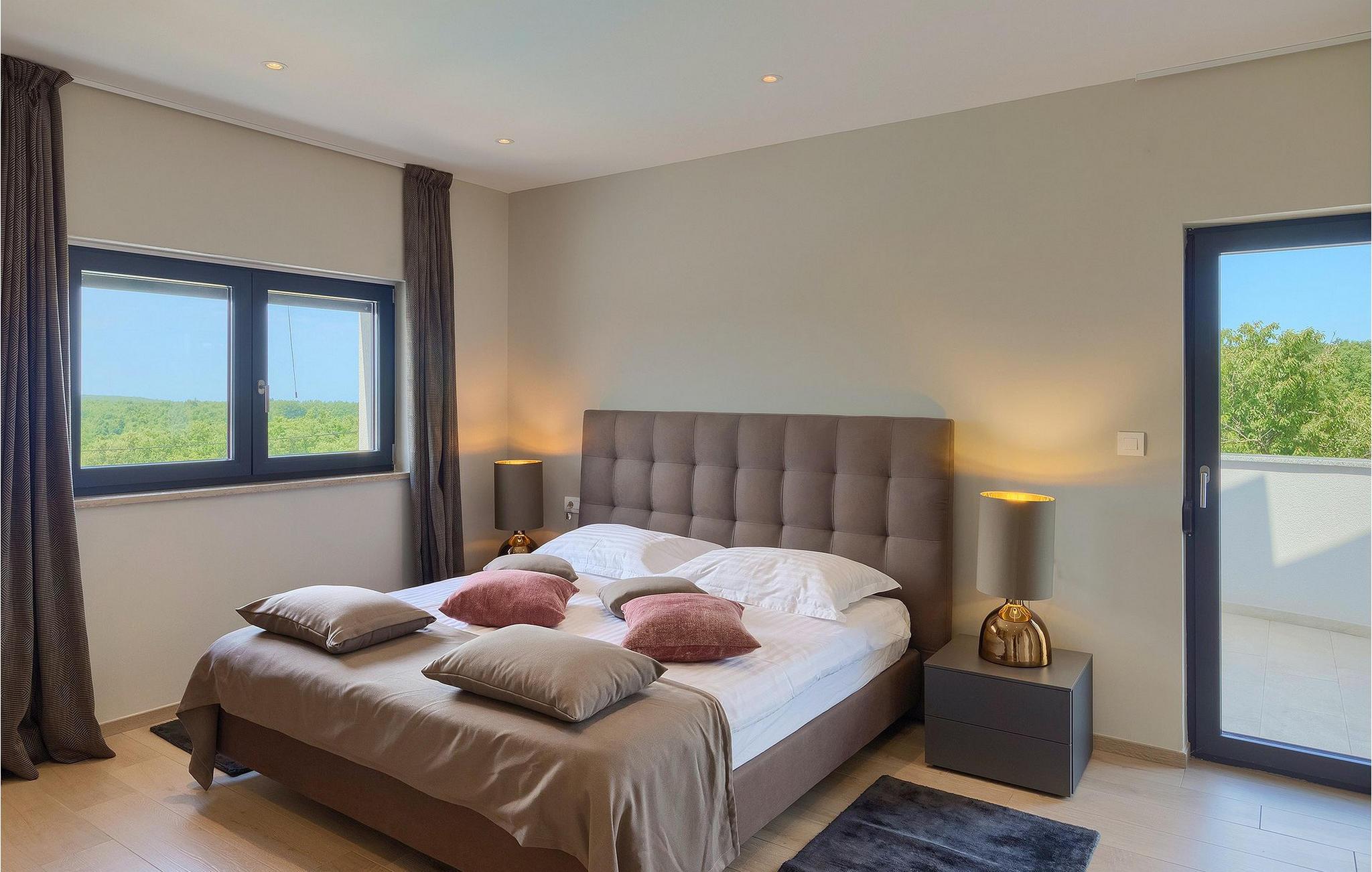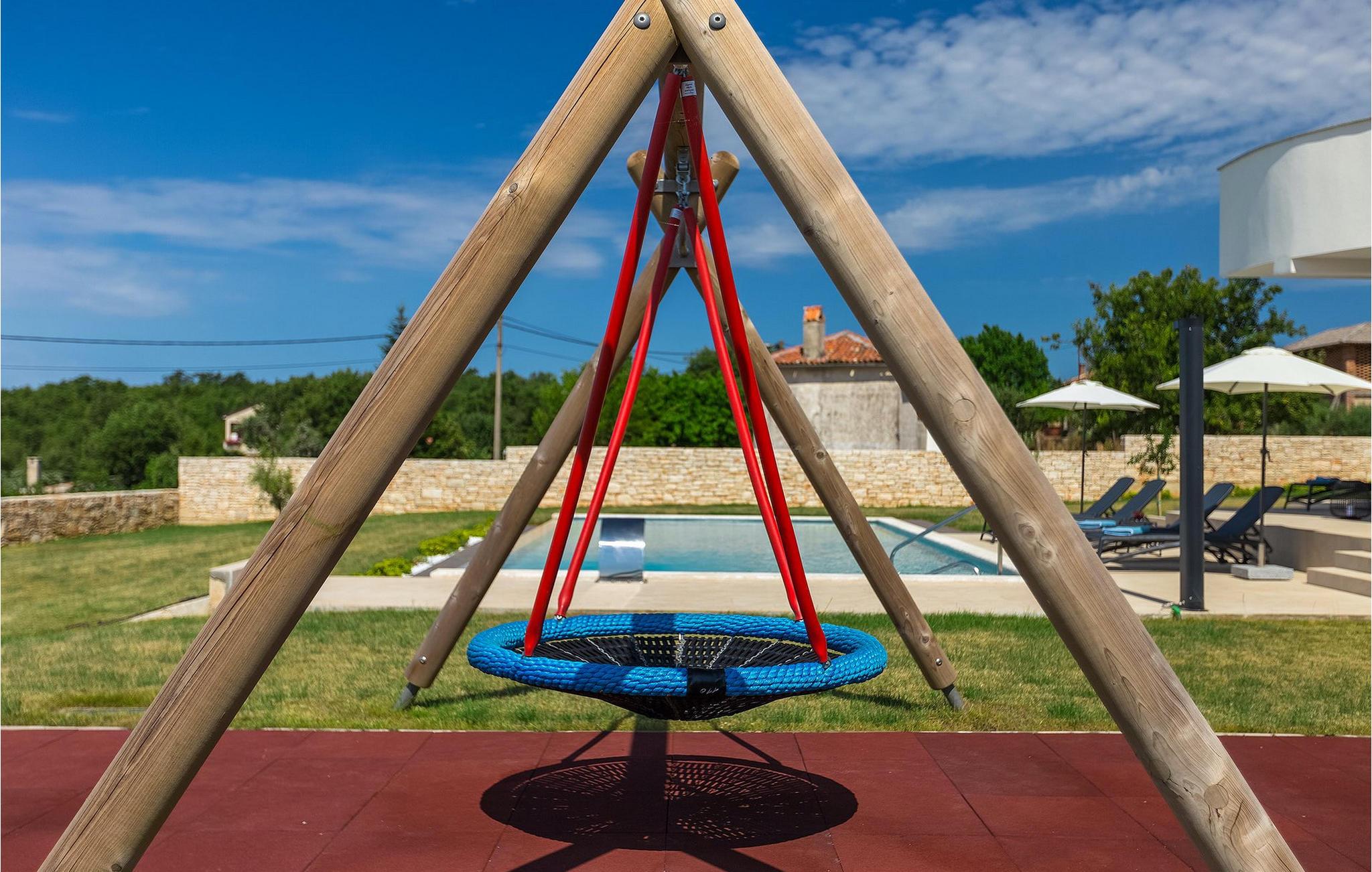 Treten Sie ein in ein Stück Ruhe in einem kleinen, ruhigen Dorf im Zentrum von Istrien. Villa Eleonora bietet eine ruhige, entspannte Umgebung mit einem Hauch von modern und vielen Möglichkeiten um zu genießen - vom großem, privatem Pool (50 m2) im schönem, grünem Garten und eine Sauna. Wenn Sie in die Villa kommen, fühlen Sie die Farbharmonie eingetragen in das moderne und minimalistisches Interieur. Im Erdgeschoss befindet sich auch ein Schlafzimmer mit Doppelbett, Sauna und einem En suite Badezimmer. Verbringen Sie Ihre Zeit zusammen mit Freunden und Familie im Wohnzimmer verbunden mit dem Speisezimmer und der zeitgenössischen Küche, alles im offenen Konzept verbunden. Von hier haben Sie einen schönen Blick auf Garten und Pool. Viele auffallende, moderne Gemälde hängen auf den Wänden und bringen das Leben in die Villa. Im ersten Stock befinden sich 3 schöne Schlafzimmer mit En suite Badezimmern und Balkons, um den Blick zu genießen. Falls Sie mit Kindern unterwegs sind, gibt es einen kleinen Spielplatz für die Jüngsten, damit Sie sich neben den Pool entspannen können während die Kinder spielen. Zwei Fahrräder stehen Ihnen auch zur Verfügung. Der Garten bietet Platz zum Speisen Ihrer köstlichen Gerichten im Offenem neben dem Grill. Alle Annehmlichkeiten wie Geschäfte und Restaurants befinden sich nur einen Spaziergang entfernt. Falls Sie zum Strand möchten, brauchen Sie nur 20 Minuten mit dem Auto fahren, um so Ihren Urlaub in Istrien zu genießen!Villa Eleonora befindet sich in einen kleinem, ruhigen Ort im zentralen Gebiet Istriens, in der Nähe von der charmanten Stadt Visnjan. Falls Sie Istrien erkunden möchten, sollten Sie unbedingt Motovun besuchen. Dies ist ein wundervolles mittelalterliches Stadtdenkmal mit einem Golfplatz, natürlichen Quellbrunnen und Spa, Reiten und einem internationalen Filmfestival. Die ersten Geschäfte, Restaurants und Bars befinden sich in der kleinen aber schönen Stadt Visnjan, die Ihnen auch einen Besuch zum Observatorium und Astronomie-Zentrum anbieten. Diese Gegend ist für Weinkeller bekannt. Der nächste Strand befindet sich nur 15 km von der Villa entfernt und Sie können den Blick auf das Meer vom Balkon aus genießen. Falls Sie andere schöne Städte in der Nähe erkunden möchten, empfehlen wir Ihnen Porec (20 km) oder Rovinj (30-40 km).