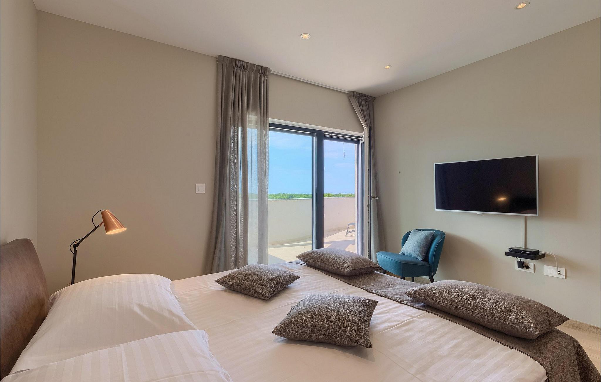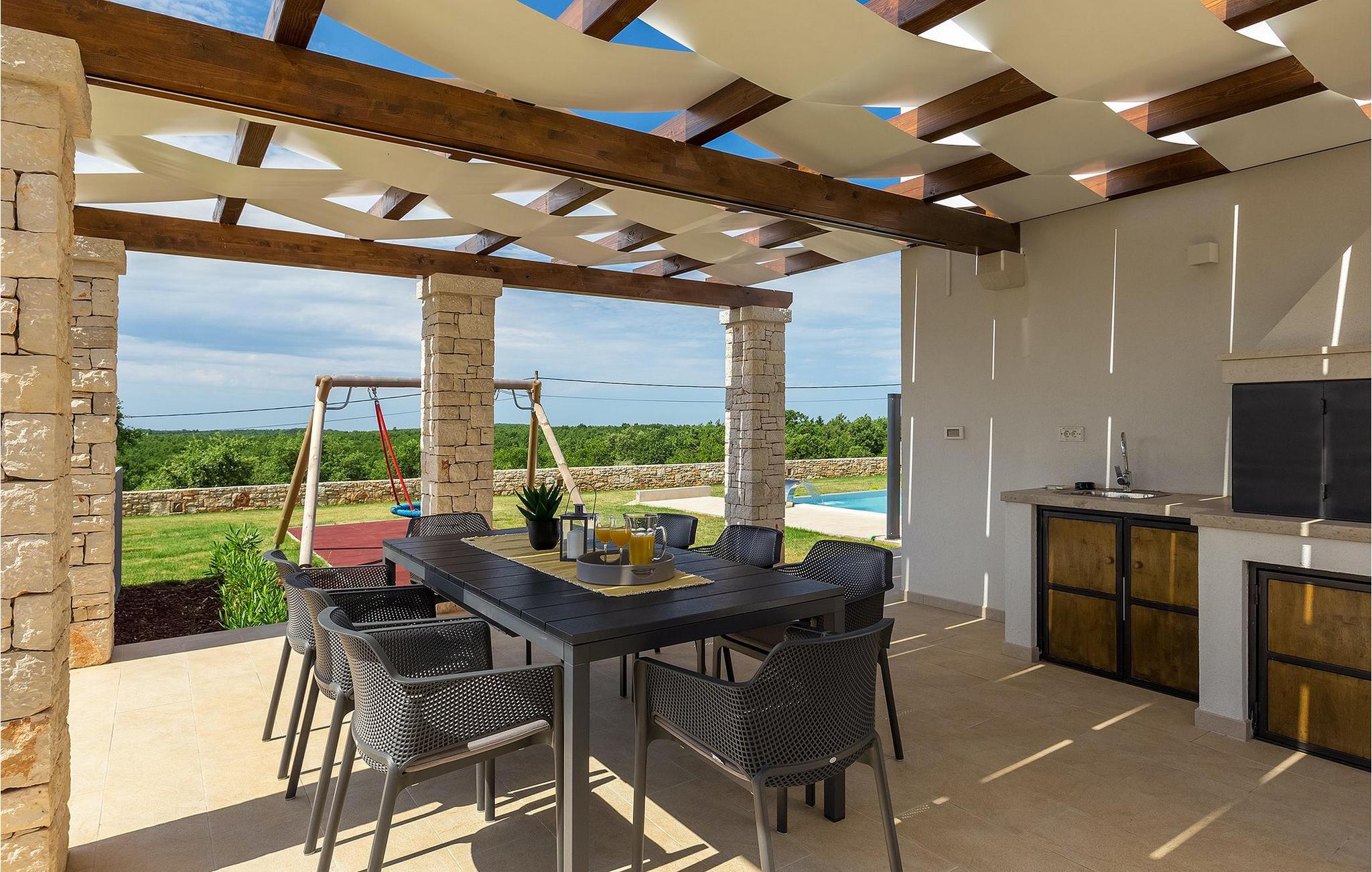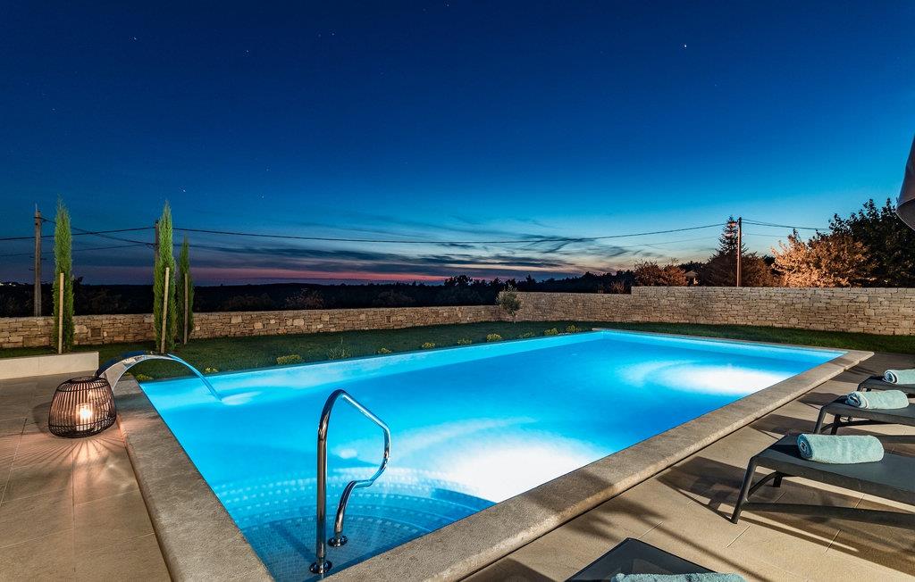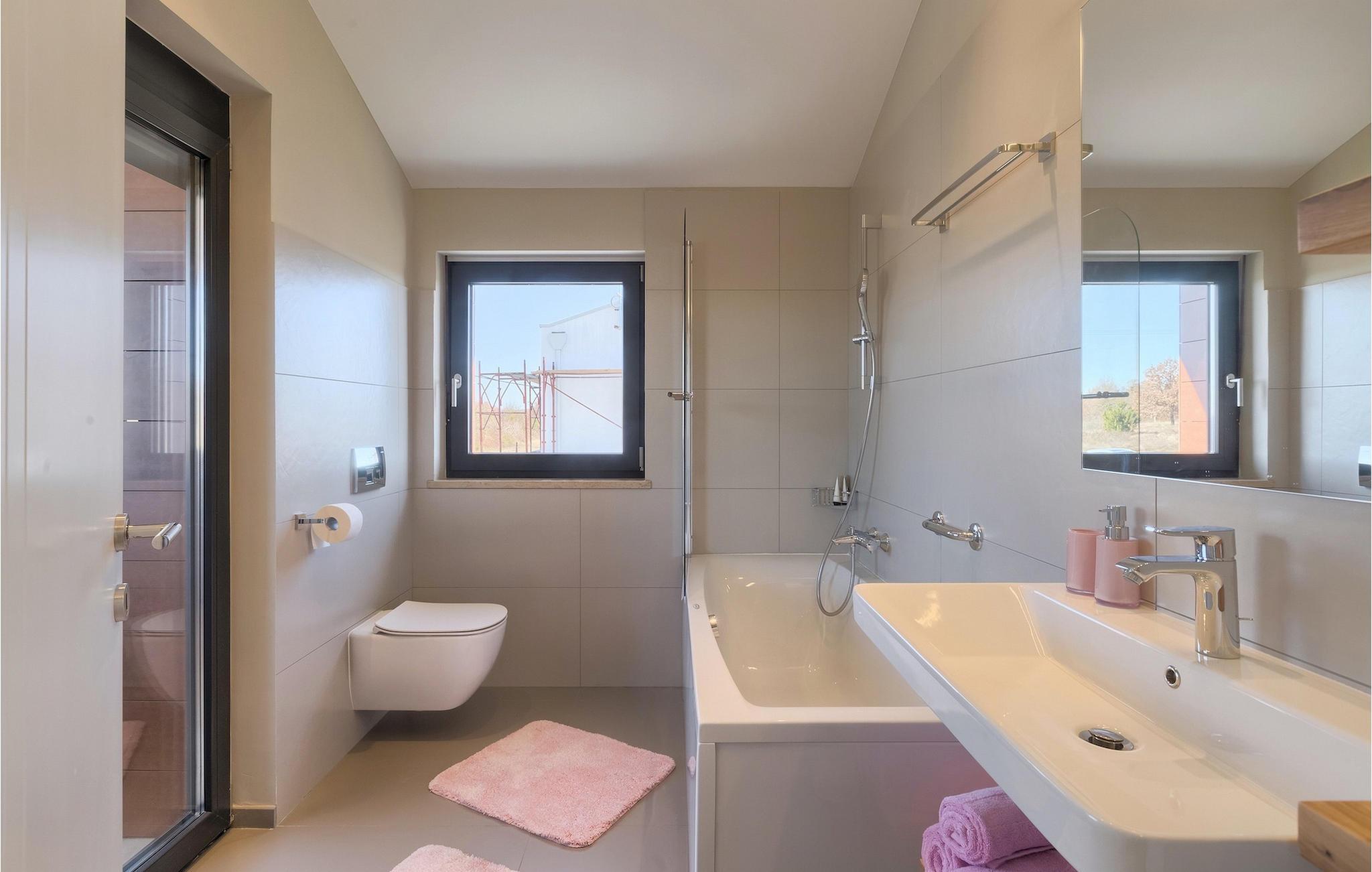 Treten Sie ein in ein Stück Ruhe in einem kleinen, ruhigen Dorf im Zentrum von Istrien. Villa Eleonora bietet eine ruhige, entspannte Umgebung mit einem Hauch von modern und vielen Möglichkeiten um zu genießen - vom großem, privatem Pool (50 m2) im schönem, grünem Garten und eine Sauna. Wenn Sie in die Villa kommen, fühlen Sie die Farbharmonie eingetragen in das moderne und minimalistisches Interieur. Im Erdgeschoss befindet sich auch ein Schlafzimmer mit Doppelbett, Sauna und einem En suite Badezimmer. Verbringen Sie Ihre Zeit zusammen mit Freunden und Familie im Wohnzimmer verbunden mit dem Speisezimmer und der zeitgenössischen Küche, alles im offenen Konzept verbunden. Von hier haben Sie einen schönen Blick auf Garten und Pool. Viele auffallende, moderne Gemälde hängen auf den Wänden und bringen das Leben in die Villa. Im ersten Stock befinden sich 3 schöne Schlafzimmer mit En suite Badezimmern und Balkons, um den Blick zu genießen. Falls Sie mit Kindern unterwegs sind, gibt es einen kleinen Spielplatz für die Jüngsten, damit Sie sich neben den Pool entspannen können während die Kinder spielen. Zwei Fahrräder stehen Ihnen auch zur Verfügung. Der Garten bietet Platz zum Speisen Ihrer köstlichen Gerichten im Offenem neben dem Grill. Alle Annehmlichkeiten wie Geschäfte und Restaurants befinden sich nur einen Spaziergang entfernt. Falls Sie zum Strand möchten, brauchen Sie nur 20 Minuten mit dem Auto fahren, um so Ihren Urlaub in Istrien zu genießen!Villa Eleonora befindet sich in einen kleinem, ruhigen Ort im zentralen Gebiet Istriens, in der Nähe von der charmanten Stadt Visnjan. Falls Sie Istrien erkunden möchten, sollten Sie unbedingt Motovun besuchen. Dies ist ein wundervolles mittelalterliches Stadtdenkmal mit einem Golfplatz, natürlichen Quellbrunnen und Spa, Reiten und einem internationalen Filmfestival. Die ersten Geschäfte, Restaurants und Bars befinden sich in der kleinen aber schönen Stadt Visnjan, die Ihnen auch einen Besuch zum Observatorium und Astronomie-Zentrum anbieten. Diese Gegend ist für Weinkeller bekannt. Der nächste Strand befindet sich nur 15 km von der Villa entfernt und Sie können den Blick auf das Meer vom Balkon aus genießen. Falls Sie andere schöne Städte in der Nähe erkunden möchten, empfehlen wir Ihnen Porec (20 km) oder Rovinj (30-40 km).