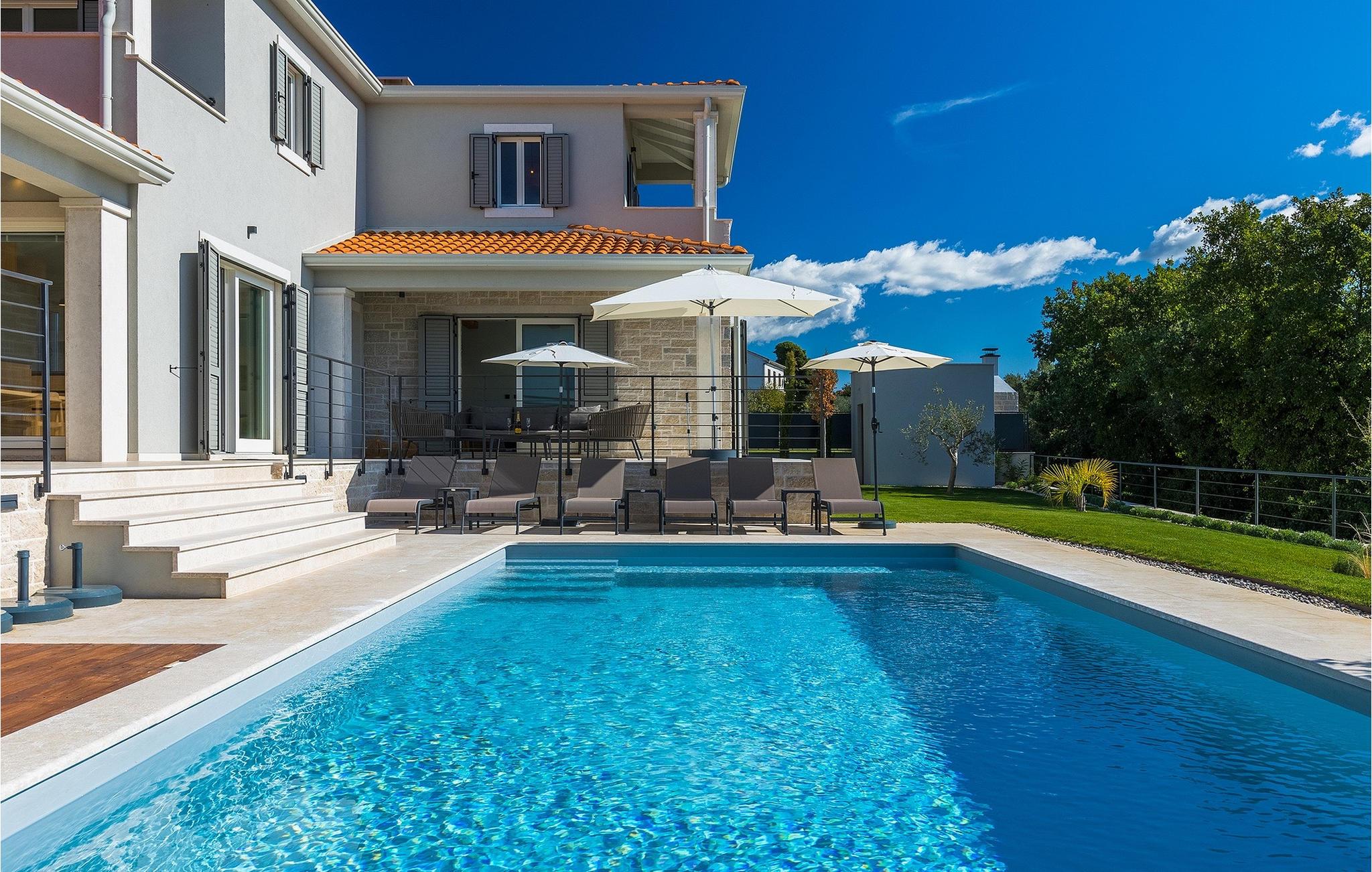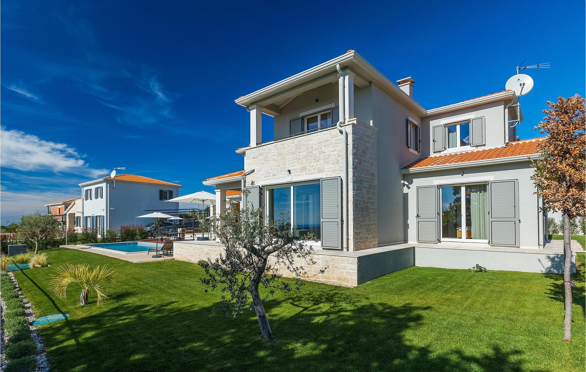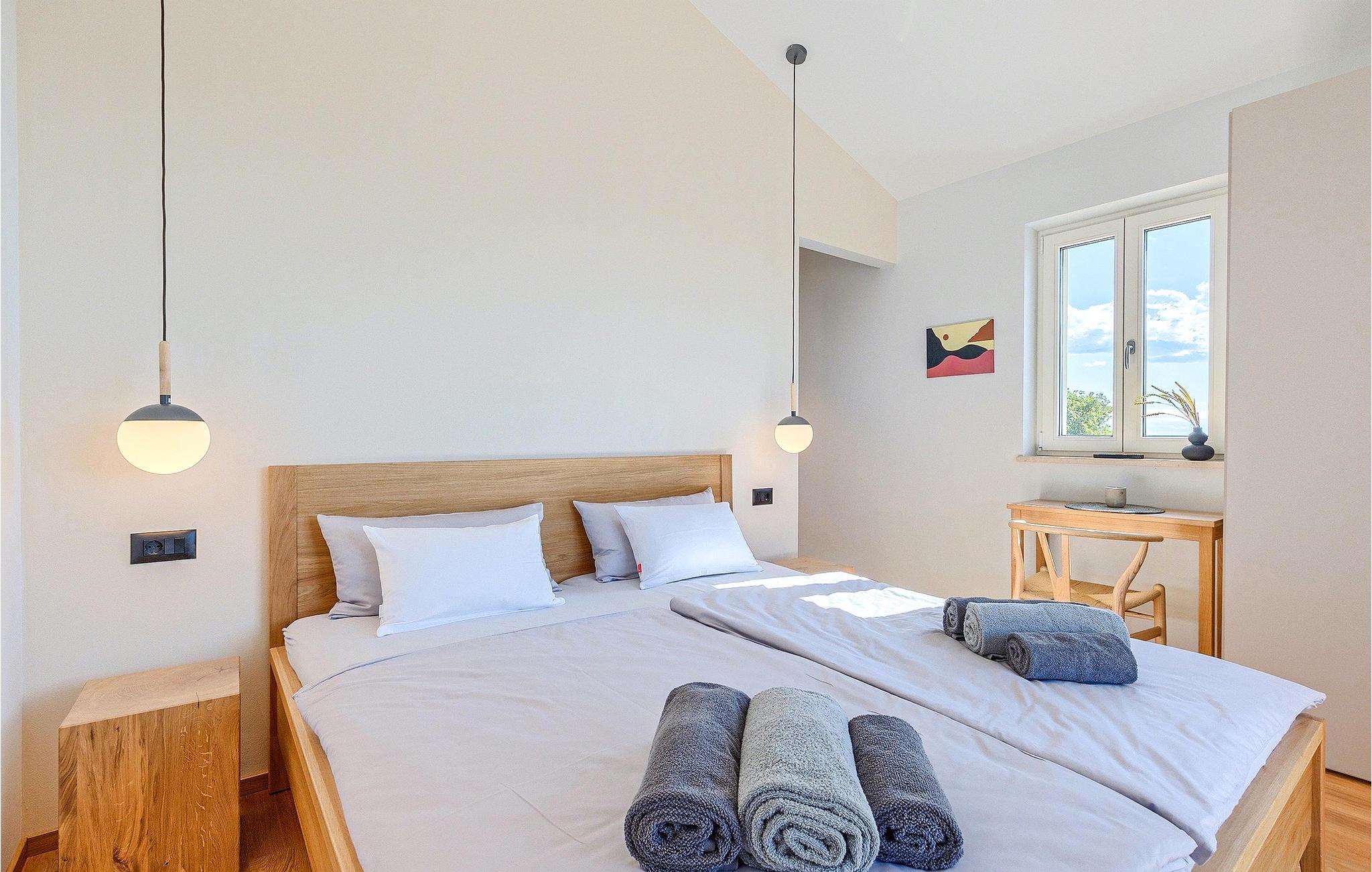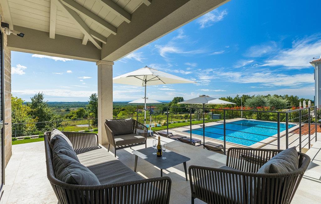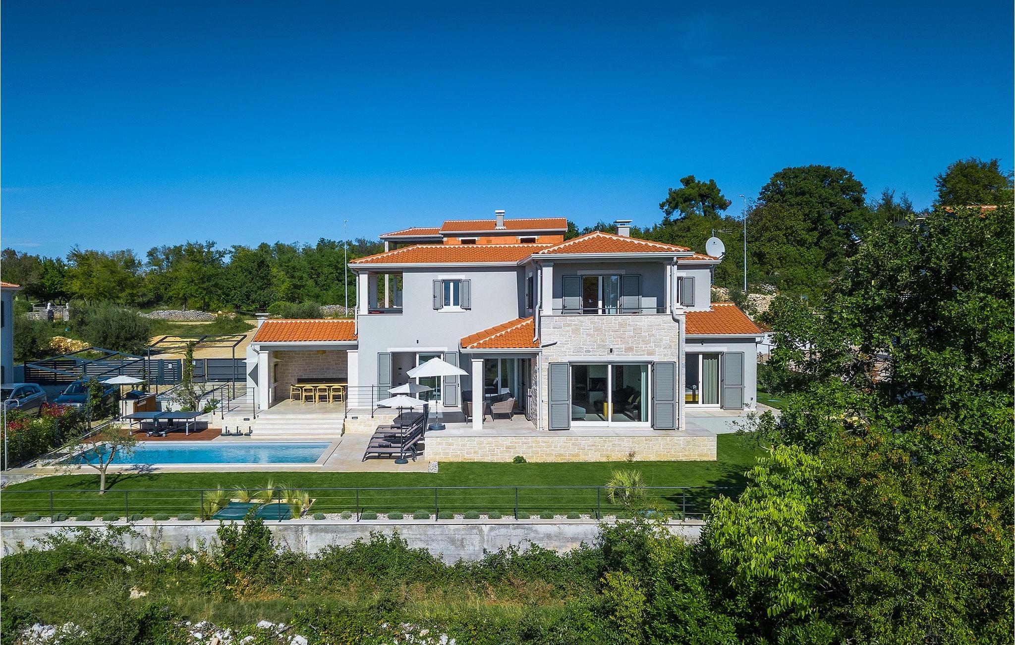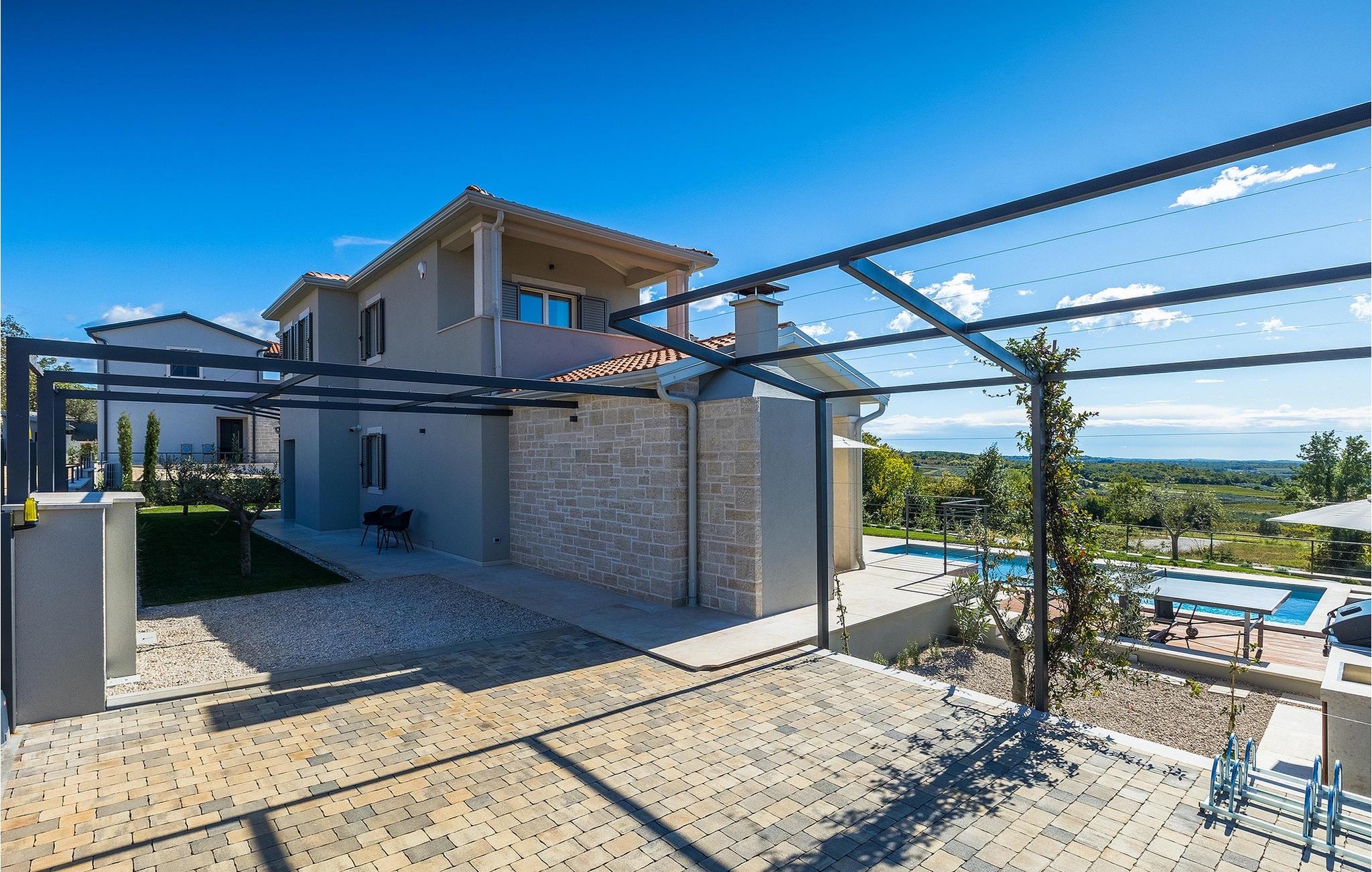 Das Erdgeschoss öffnet sich zur großen Terrasse mit überdachtem Freisitz mit großem Esstisch und offenem Kamin für kühlere Abende. Hier können Sie sich im Pool abkühlen, sich in der überdachten Lounge entspannen oder eine Runde Tischtennis spielen. Zeigen Sie Ihre Grillkenntnisse am Gasgrill der Outdoorküche, die sich direkt neben dem überdachten Freisitz befindet, und genießen Sie die zubereiteten Gerichte im Freien. Im ersten Stock befinden sich die restlichen Schlafzimmer, zwei mit Doppelbett und jeweils einem überdachten Balkon und eins mit zwei Einzelbetten. Eines der Doppelbettzimmer verfügt über ensuite Bad, und die anderen zwei Zimmer teilen sich das Badezimmer. Auch von den Schlafzimmern aus können Sie den schönen Meerblick genießen. Im gesamten Erdgeschoss und in den Badezimmern gibt es Fußbodenheizung für die kühlere Jahreszeit. Villa Regina ist die beste Wahl für einen unvergesslichen Urlaub mit Familie und Freunden. Buchen Sie Villa Regina und genießen Sie das Umland von PorecVilla Regina liegt im ruhigen Dorf Markovac, welches zum charmanten Ort Visnjan gehört. Auf einem Hügel gelegen, bietet Ihnen Visnjan spektakuläre Meerblicke. Wenn Sie einen ungestörten Blick in die Sterne werfen wollen, müssen Sie unbedingt das Observatorium in Visnjan besuchen. Bummeln Sie durch die verwinkelten Gassen aus Kopfsteinpflaster und genießen Sie das reiche Kulturerbe dieser Stadt. Obendrein lassen sich in den Restaurants der Altstadt herrliche Speisen nach traditioneller Rezeptur schmecken. Sehr empfehlenswert ist ein Ausflug zu der historischen mittelalterlichen Stadt Porec, die nur eine kurze Fahrt von der Villa entfernt ist. Die UNESCO-gelistete Euphrasius-Basilika, der historische Stadtkern von Porec, zahlreiche attraktive Strände sowie ausgezeichnete Restaurants sind nur einige der Gründe dafür, dass Porec eines der touristischen Hauptziele Istriens ist. Wenn Sie eher ruhigere Orte bevorzugen, ist die Stadt Novigrad ein Muss für Sie. Das Fischerstädtchen verzaubert alle Besucher mit seinen Stadtmauern und Türmen. Novigrad ist auch für sein reiches gastronomisches Angebot bekannt. Alle Fahrradliebhaber kommen in dieser Villa auf jeden Fall auf ihre Kosten, da die Villa nur 30m von dem berühmten Radweg Parenzana entfernt ist.