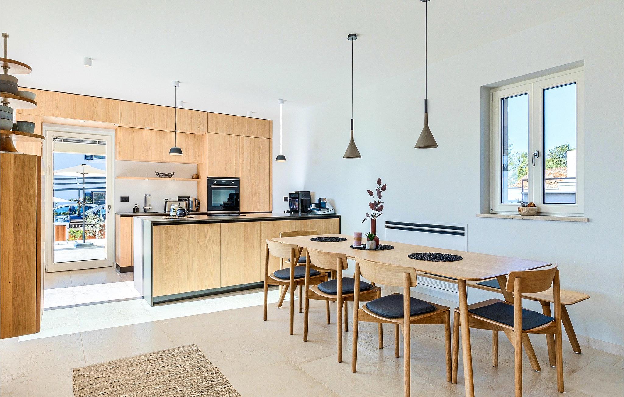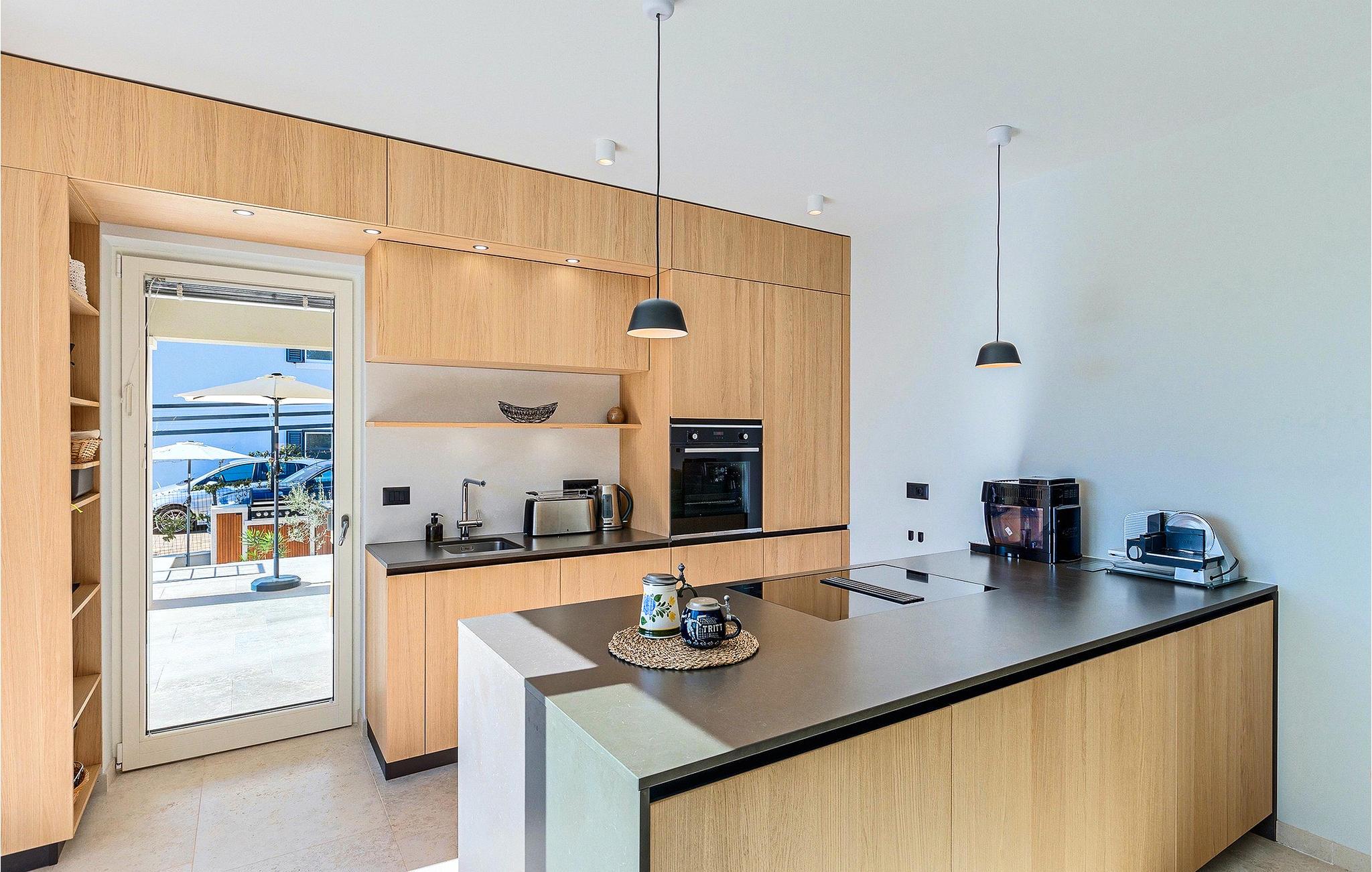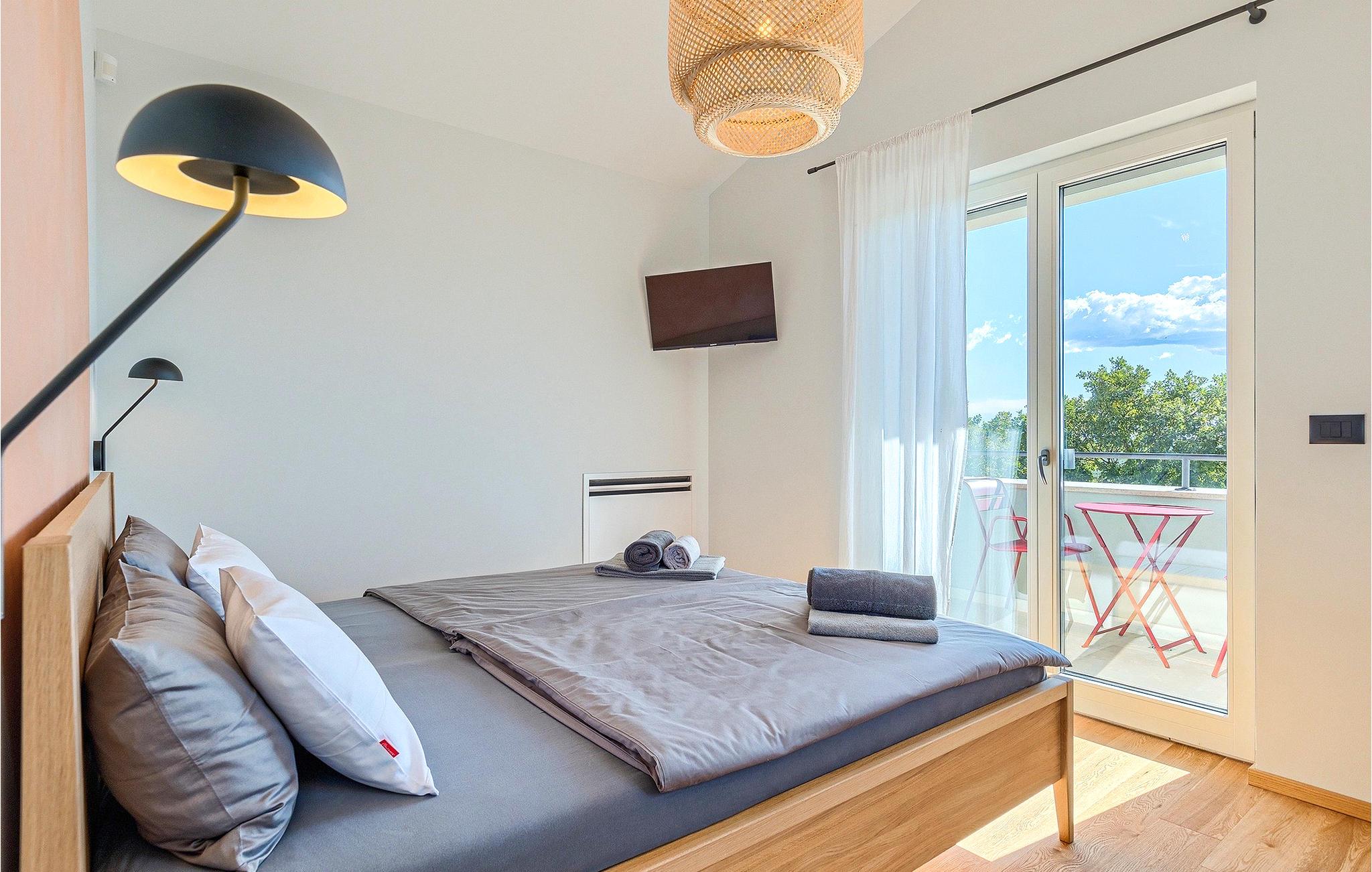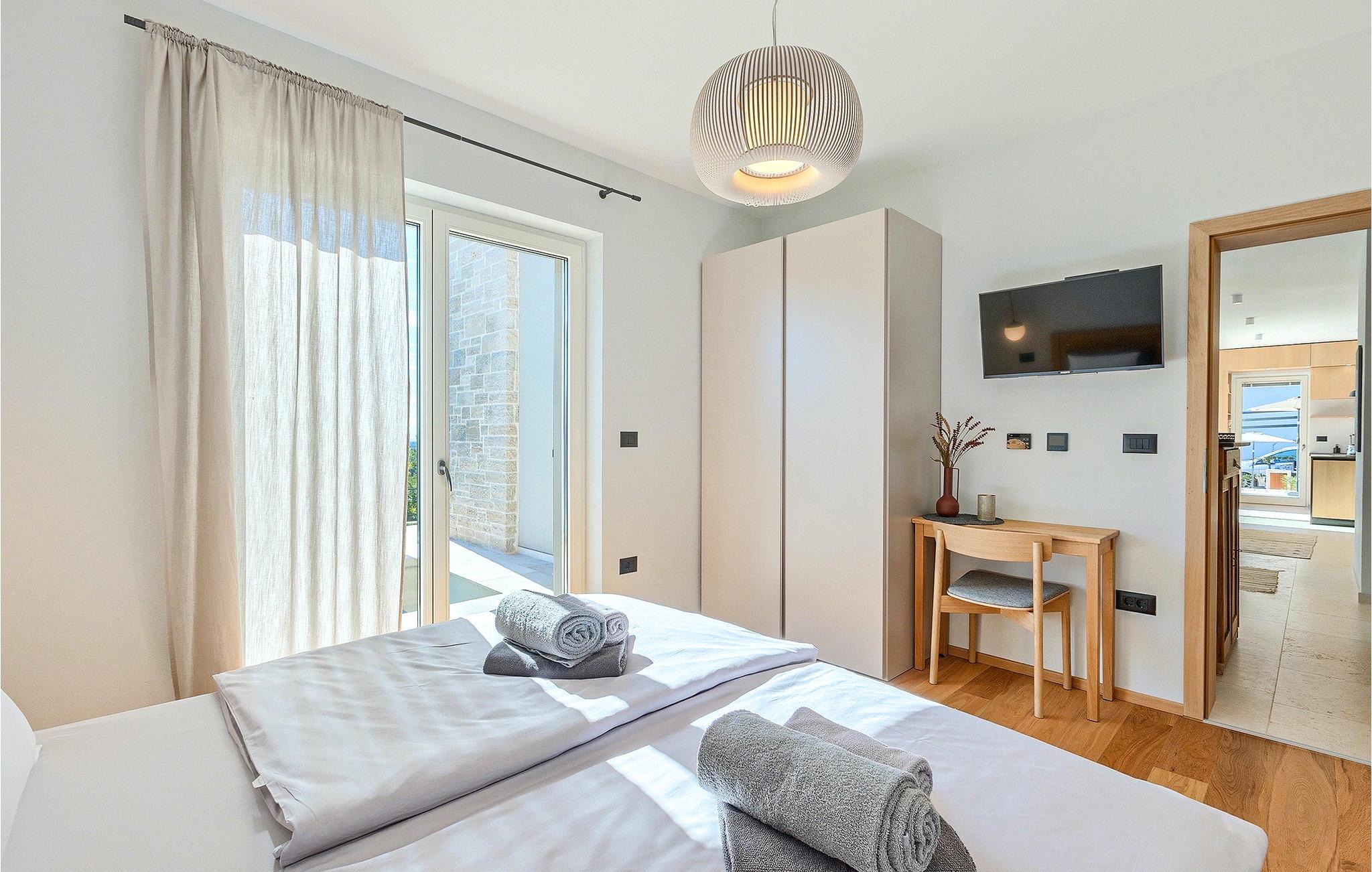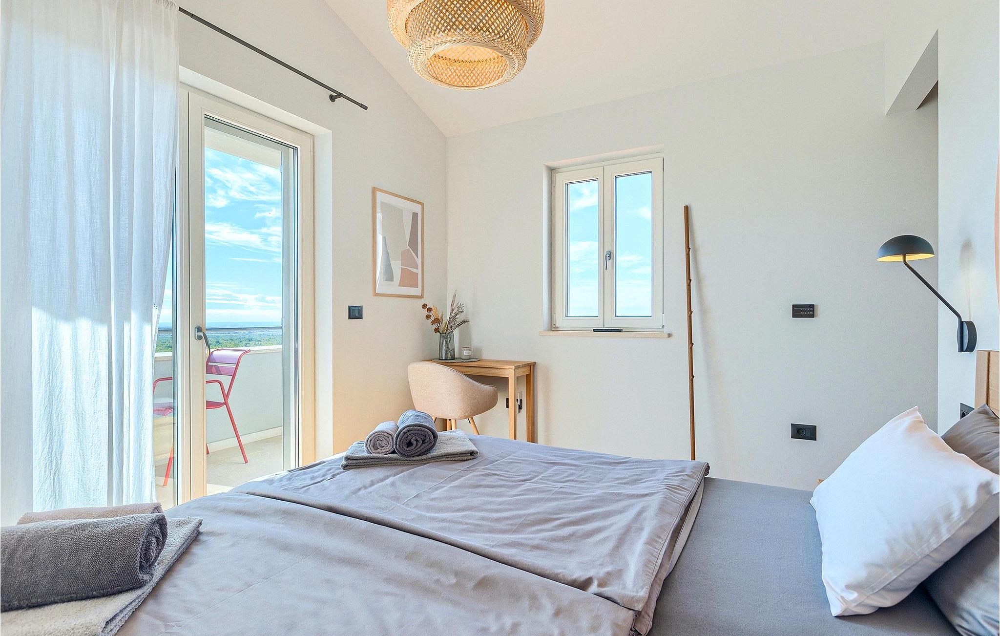 Das Erdgeschoss öffnet sich zur großen Terrasse mit überdachtem Freisitz mit großem Esstisch und offenem Kamin für kühlere Abende. Hier können Sie sich im Pool abkühlen, sich in der überdachten Lounge entspannen oder eine Runde Tischtennis spielen. Zeigen Sie Ihre Grillkenntnisse am Gasgrill der Outdoorküche, die sich direkt neben dem überdachten Freisitz befindet, und genießen Sie die zubereiteten Gerichte im Freien. Im ersten Stock befinden sich die restlichen Schlafzimmer, zwei mit Doppelbett und jeweils einem überdachten Balkon und eins mit zwei Einzelbetten. Eines der Doppelbettzimmer verfügt über ensuite Bad, und die anderen zwei Zimmer teilen sich das Badezimmer. Auch von den Schlafzimmern aus können Sie den schönen Meerblick genießen. Im gesamten Erdgeschoss und in den Badezimmern gibt es Fußbodenheizung für die kühlere Jahreszeit. Villa Regina ist die beste Wahl für einen unvergesslichen Urlaub mit Familie und Freunden. Buchen Sie Villa Regina und genießen Sie das Umland von PorecVilla Regina liegt im ruhigen Dorf Markovac, welches zum charmanten Ort Visnjan gehört. Auf einem Hügel gelegen, bietet Ihnen Visnjan spektakuläre Meerblicke. Wenn Sie einen ungestörten Blick in die Sterne werfen wollen, müssen Sie unbedingt das Observatorium in Visnjan besuchen. Bummeln Sie durch die verwinkelten Gassen aus Kopfsteinpflaster und genießen Sie das reiche Kulturerbe dieser Stadt. Obendrein lassen sich in den Restaurants der Altstadt herrliche Speisen nach traditioneller Rezeptur schmecken. Sehr empfehlenswert ist ein Ausflug zu der historischen mittelalterlichen Stadt Porec, die nur eine kurze Fahrt von der Villa entfernt ist. Die UNESCO-gelistete Euphrasius-Basilika, der historische Stadtkern von Porec, zahlreiche attraktive Strände sowie ausgezeichnete Restaurants sind nur einige der Gründe dafür, dass Porec eines der touristischen Hauptziele Istriens ist. Wenn Sie eher ruhigere Orte bevorzugen, ist die Stadt Novigrad ein Muss für Sie. Das Fischerstädtchen verzaubert alle Besucher mit seinen Stadtmauern und Türmen. Novigrad ist auch für sein reiches gastronomisches Angebot bekannt. Alle Fahrradliebhaber kommen in dieser Villa auf jeden Fall auf ihre Kosten, da die Villa nur 30m von dem berühmten Radweg Parenzana entfernt ist.