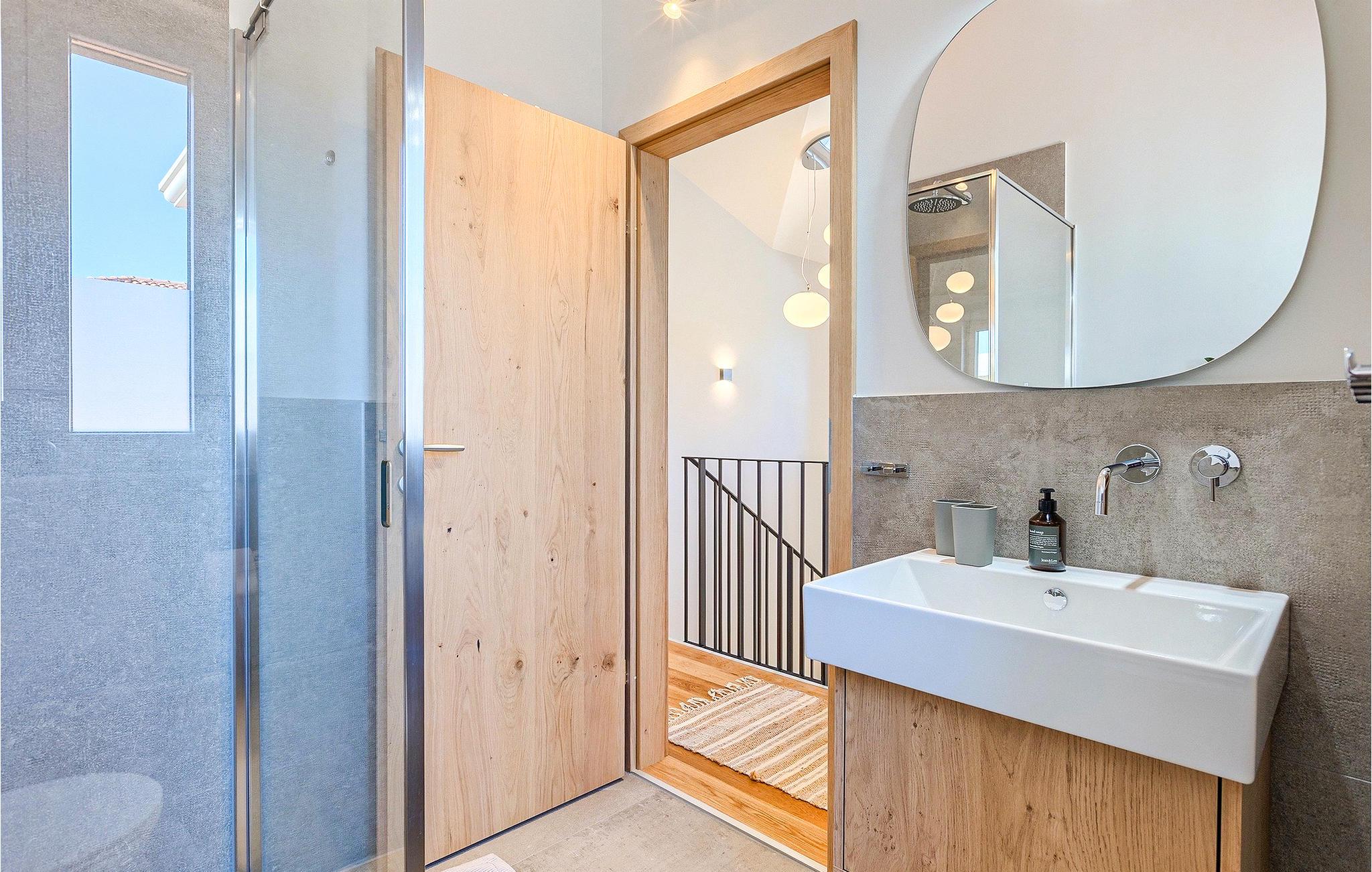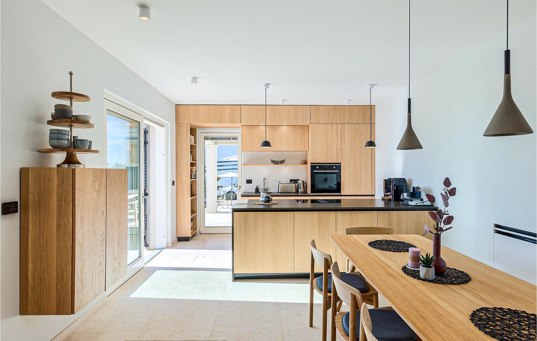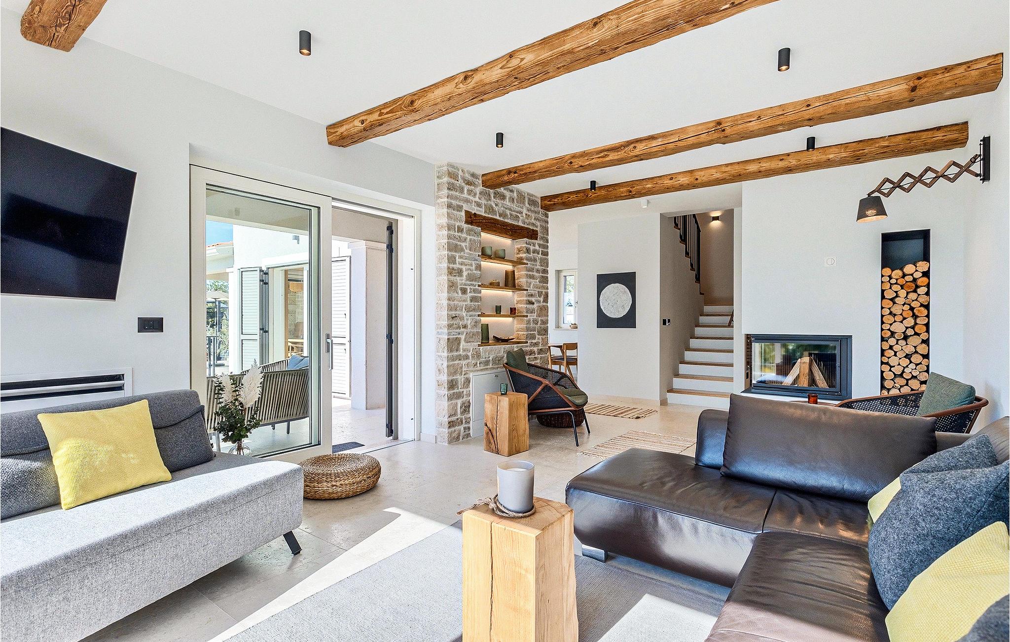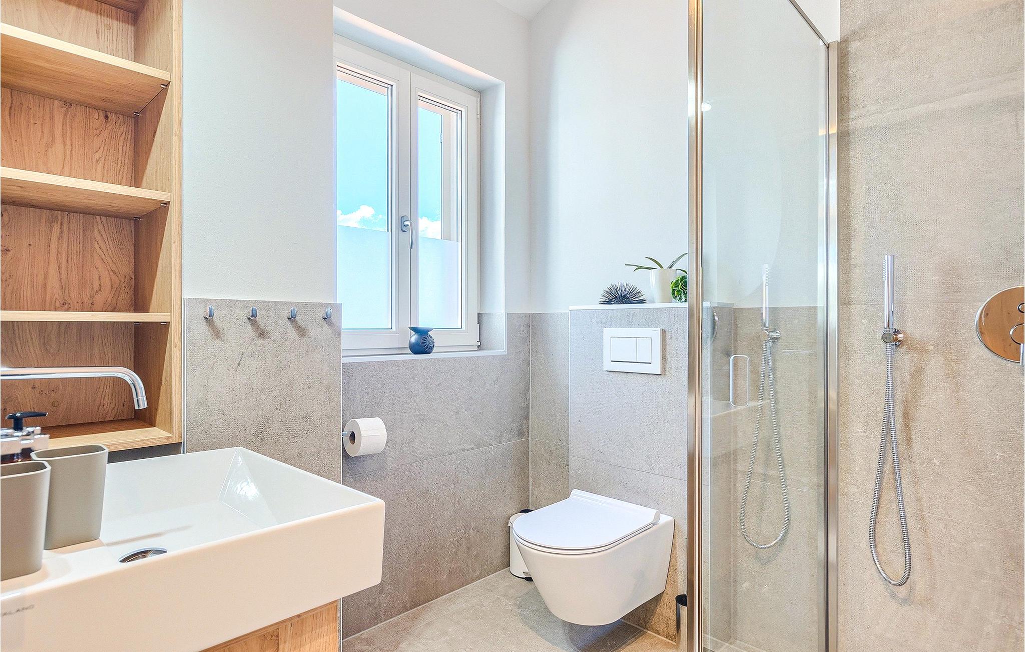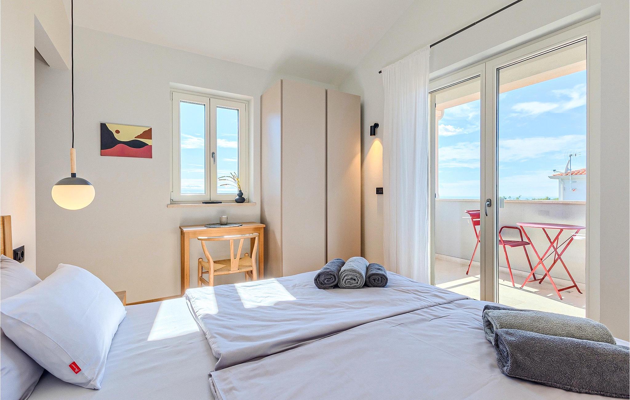 Das Erdgeschoss öffnet sich zur großen Terrasse mit überdachtem Freisitz mit großem Esstisch und offenem Kamin für kühlere Abende. Hier können Sie sich im Pool abkühlen, sich in der überdachten Lounge entspannen oder eine Runde Tischtennis spielen. Zeigen Sie Ihre Grillkenntnisse am Gasgrill der Outdoorküche, die sich direkt neben dem überdachten Freisitz befindet, und genießen Sie die zubereiteten Gerichte im Freien. Im ersten Stock befinden sich die restlichen Schlafzimmer, zwei mit Doppelbett und jeweils einem überdachten Balkon und eins mit zwei Einzelbetten. Eines der Doppelbettzimmer verfügt über ensuite Bad, und die anderen zwei Zimmer teilen sich das Badezimmer. Auch von den Schlafzimmern aus können Sie den schönen Meerblick genießen. Im gesamten Erdgeschoss und in den Badezimmern gibt es Fußbodenheizung für die kühlere Jahreszeit. Villa Regina ist die beste Wahl für einen unvergesslichen Urlaub mit Familie und Freunden. Buchen Sie Villa Regina und genießen Sie das Umland von PorecVilla Regina liegt im ruhigen Dorf Markovac, welches zum charmanten Ort Visnjan gehört. Auf einem Hügel gelegen, bietet Ihnen Visnjan spektakuläre Meerblicke. Wenn Sie einen ungestörten Blick in die Sterne werfen wollen, müssen Sie unbedingt das Observatorium in Visnjan besuchen. Bummeln Sie durch die verwinkelten Gassen aus Kopfsteinpflaster und genießen Sie das reiche Kulturerbe dieser Stadt. Obendrein lassen sich in den Restaurants der Altstadt herrliche Speisen nach traditioneller Rezeptur schmecken. Sehr empfehlenswert ist ein Ausflug zu der historischen mittelalterlichen Stadt Porec, die nur eine kurze Fahrt von der Villa entfernt ist. Die UNESCO-gelistete Euphrasius-Basilika, der historische Stadtkern von Porec, zahlreiche attraktive Strände sowie ausgezeichnete Restaurants sind nur einige der Gründe dafür, dass Porec eines der touristischen Hauptziele Istriens ist. Wenn Sie eher ruhigere Orte bevorzugen, ist die Stadt Novigrad ein Muss für Sie. Das Fischerstädtchen verzaubert alle Besucher mit seinen Stadtmauern und Türmen. Novigrad ist auch für sein reiches gastronomisches Angebot bekannt. Alle Fahrradliebhaber kommen in dieser Villa auf jeden Fall auf ihre Kosten, da die Villa nur 30m von dem berühmten Radweg Parenzana entfernt ist.
