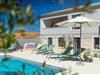 Schon der Pool allein mit seiner außergewöhnlichen Form ist ein Blickfang. Hier finden Sie die nötige Erfrischung an heißen Sommertagen. Die überdachte Sommerküche mit Grill und Esstisch ist der ideale Ort, um Familie und Freunde zu versammeln und Ausflüge zu planen oder gemütliche Abende zu verbringen. Genießen Sie die istrische Sonne auf einer der Sonnenliegen am Pool oder spielen Sie eine Runde Basketball. Hier wird jeder seinen Lieblingsplatz finden.